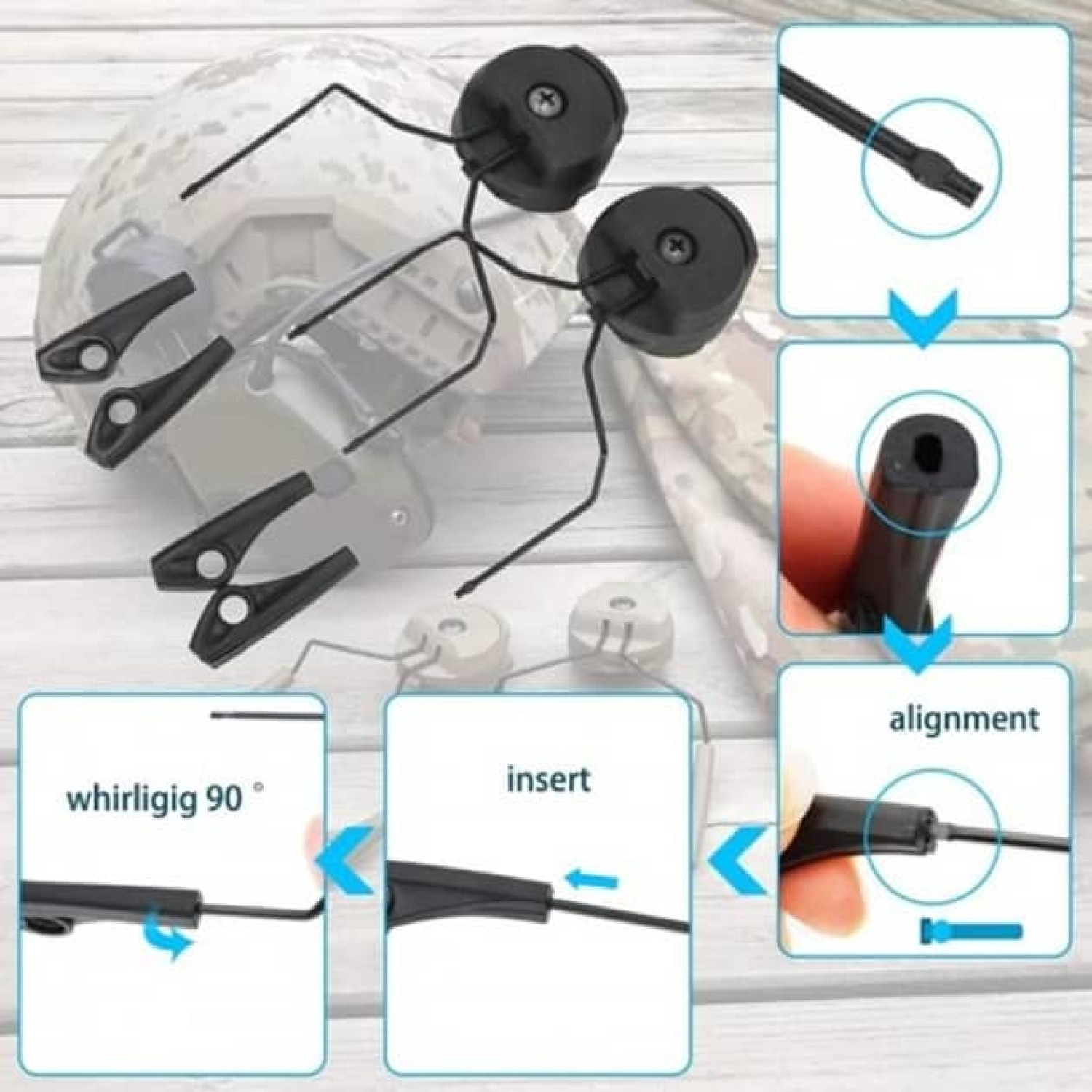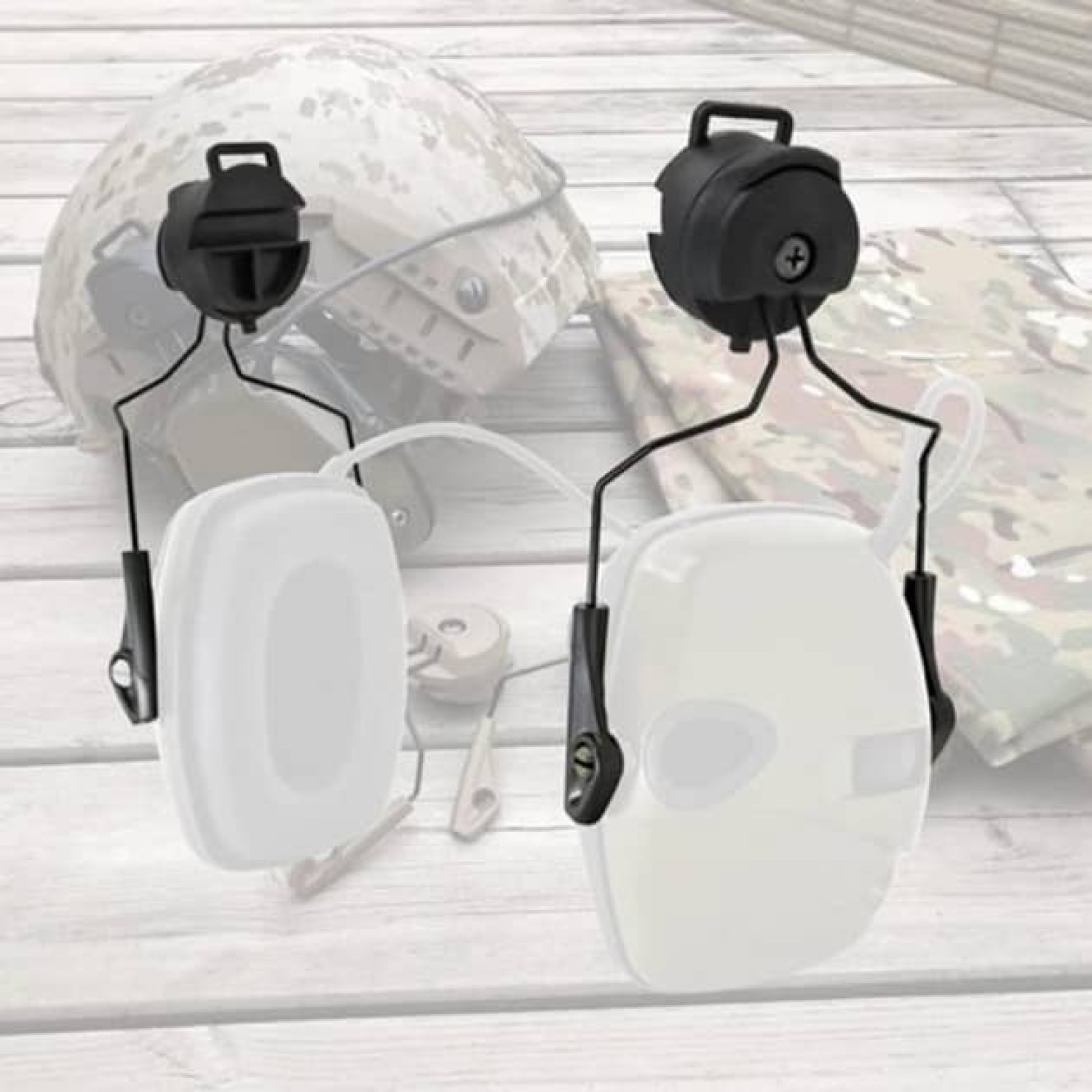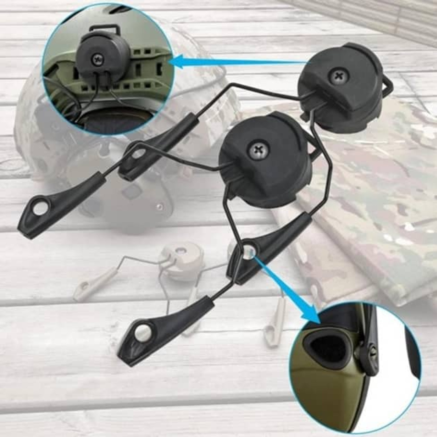 Адаптер ACM Headset Helmet Rail для навушників Howard Leight Impact Sport Чорний. Встановлюється на шолом FAST, ACH з бічними рейками. Після фіксації адаптера на шолом гарнітуру можна вільно обертати.