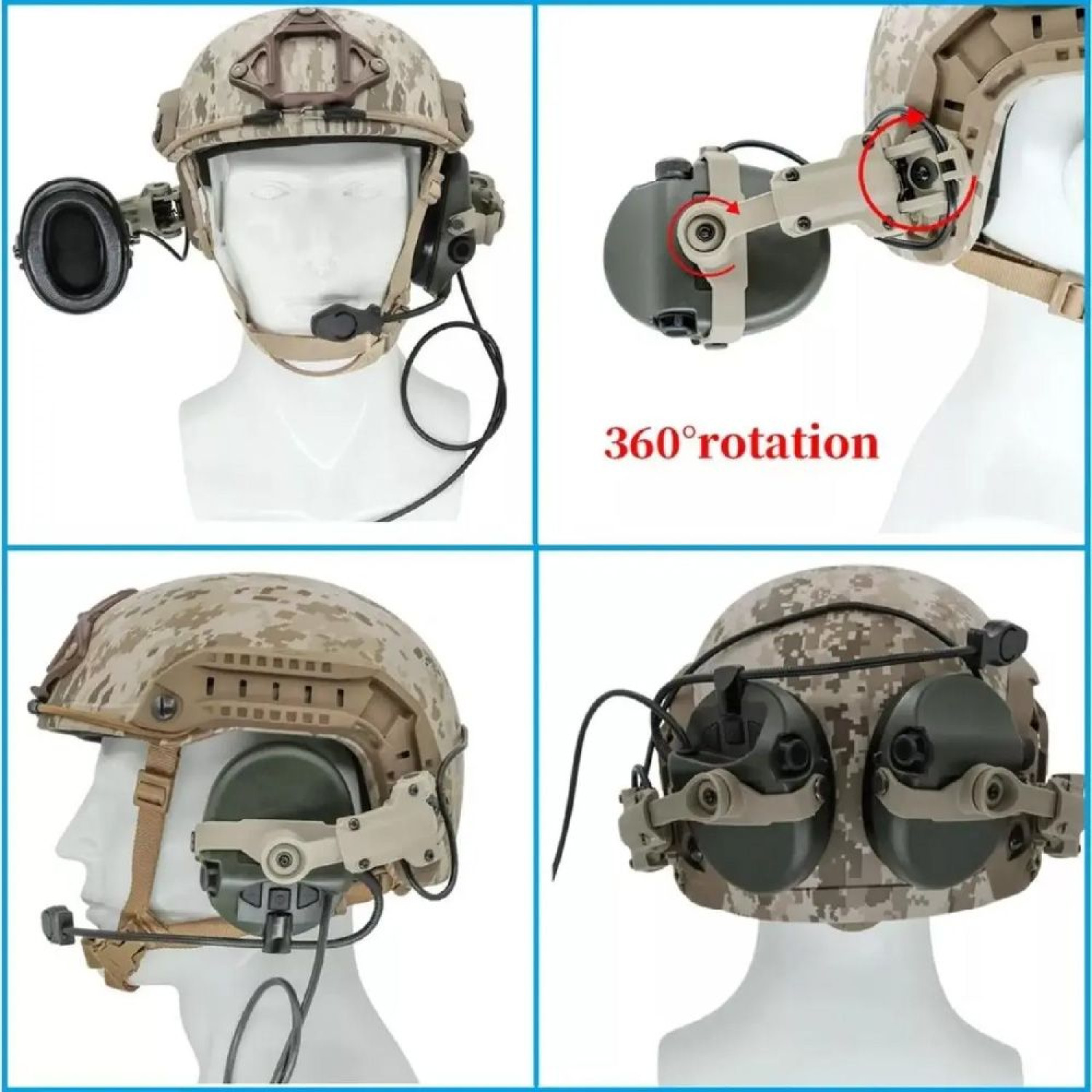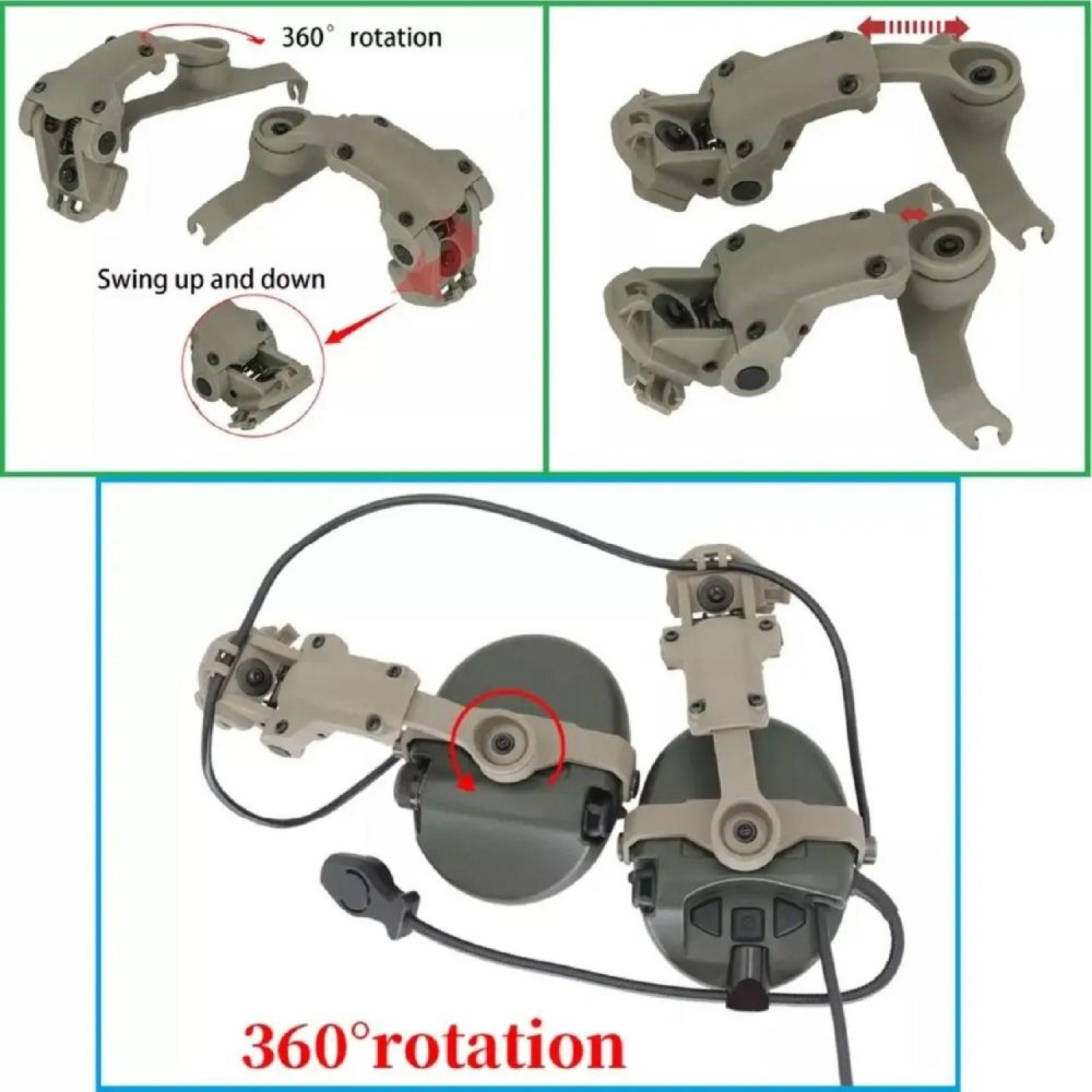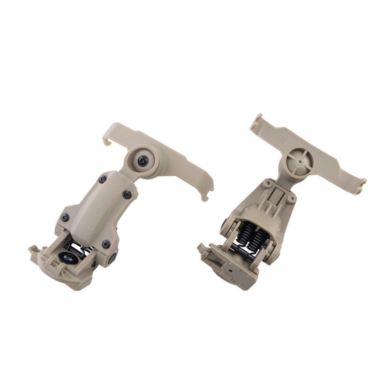 Для закріплення платформи на рейці шолома потрібно вставити її в нижню частину рейки і закріпити за допомогою гвинтів. Шарнірна конструкція забезпечує комфорт і стійкість, даючи можливість змінювати кут нахилу навушників щодо голови. У комплекті також передбачено додаткові кріплення для заміни.