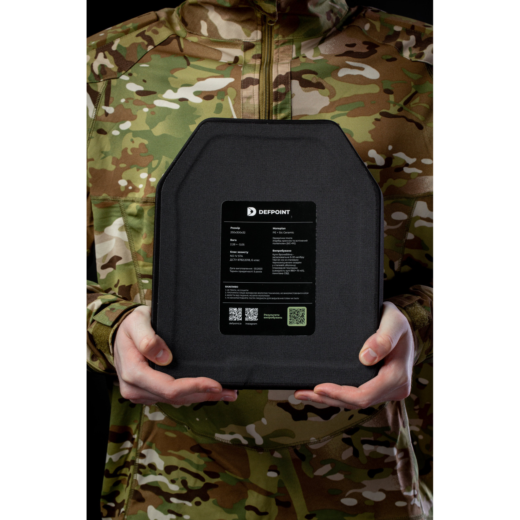 Бронеплити 6 клас мають оптимізовані розміри 25х30 см зі скошеними кутами для максимальної ергономічності. При товщині всього 23 мм, вони забезпечують захист 6-го класу, витримуючи постріли як з 5.45 ПП, так і з 7.62 ЛПС. Анатомічно вигнута форма гарантує комфортне використання на грудях та спині. Бронеплити керамічні 6 клас важать лише 2,3 кг, що мінімізує навантаження на користувача при тривалому носінні. Для підтвердження якості та надійності, разом із бронеплитами ми надаємо копію протоколу випробувань з сертифікованої лабораторії.