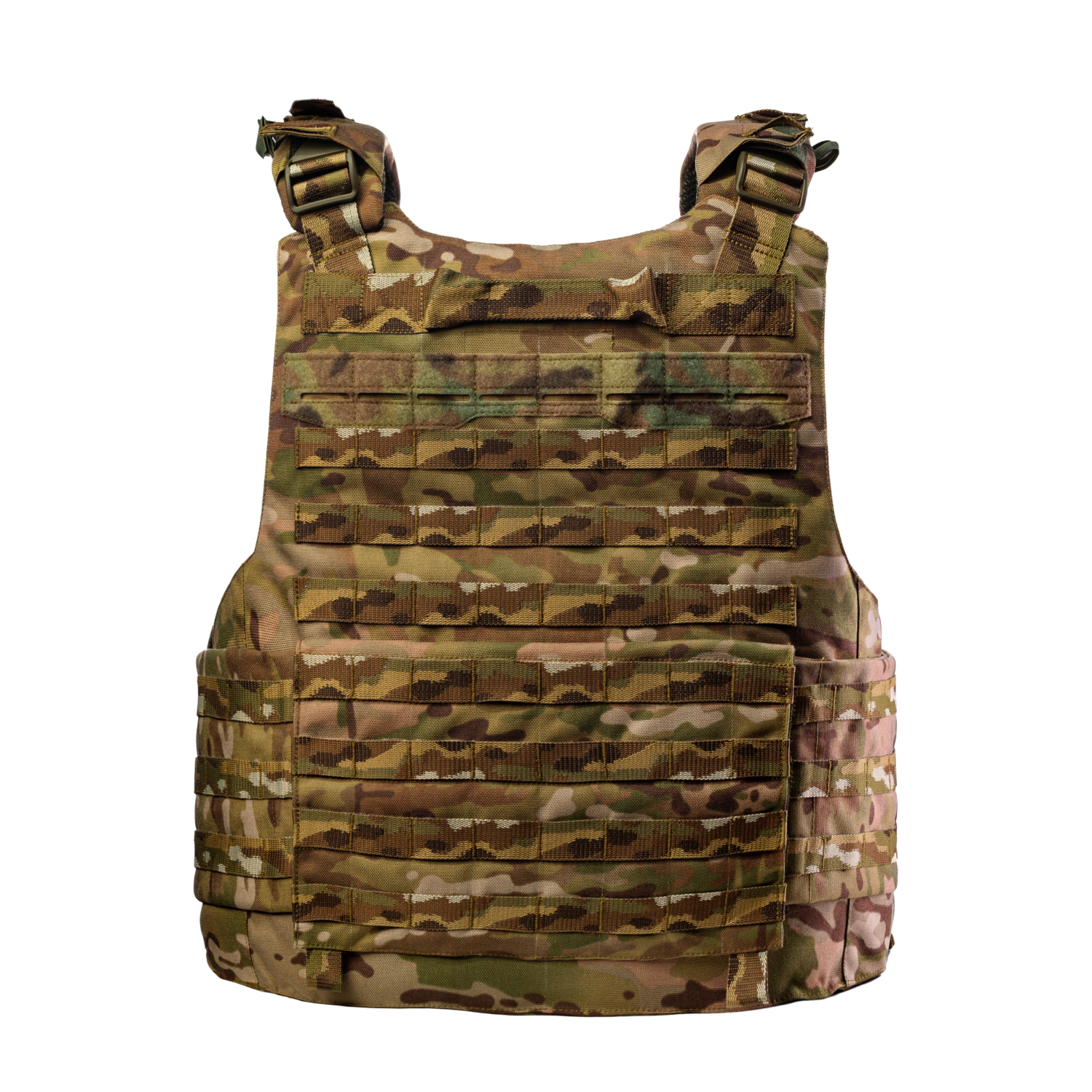 Бронежилет DFP MAX 2-го класу захисту Мультикам - плитоноска може надійно утримувати балістичні пластини стандартних розмірів, включаючи 250x300 або 270x340, 270x350, 300x350 мм, які кріпляться подвійним фіксуванням.