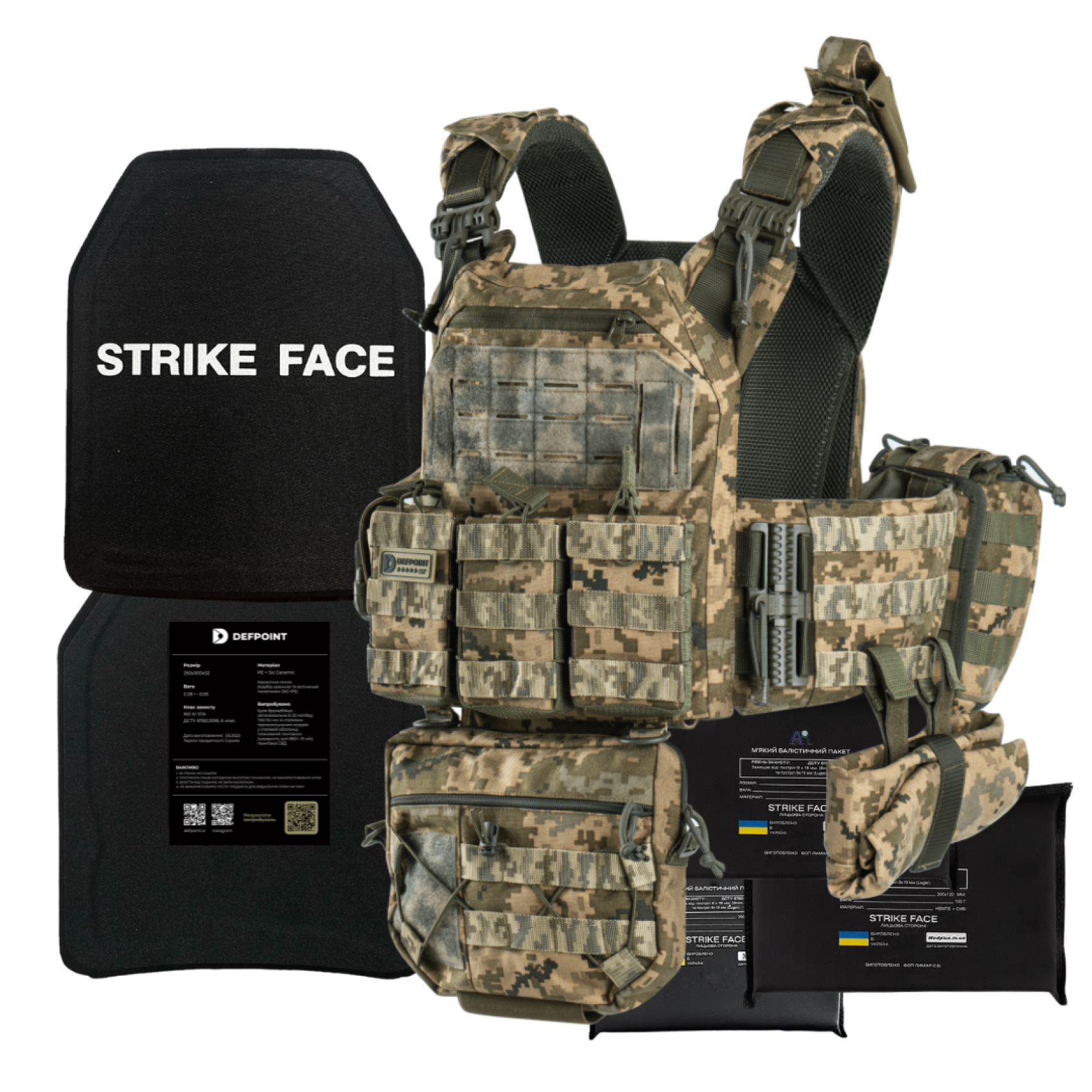Strike Face (6 клас ДСТУ) - захисна керамічна бронеплита, яка представляє альтернативну заміну сталевій бронеплиті. Ця плита здатна згинатися, при цьому поглинаючи кінетичну енергію і зменшуючи можливі пошкодження внутрішніх органів носія, а також деформується, витримуючи всю силу удару. Завдяки високій твердості матеріалу, така бронеплита чинить значний опір снаряда, уповільнюючи його рух.