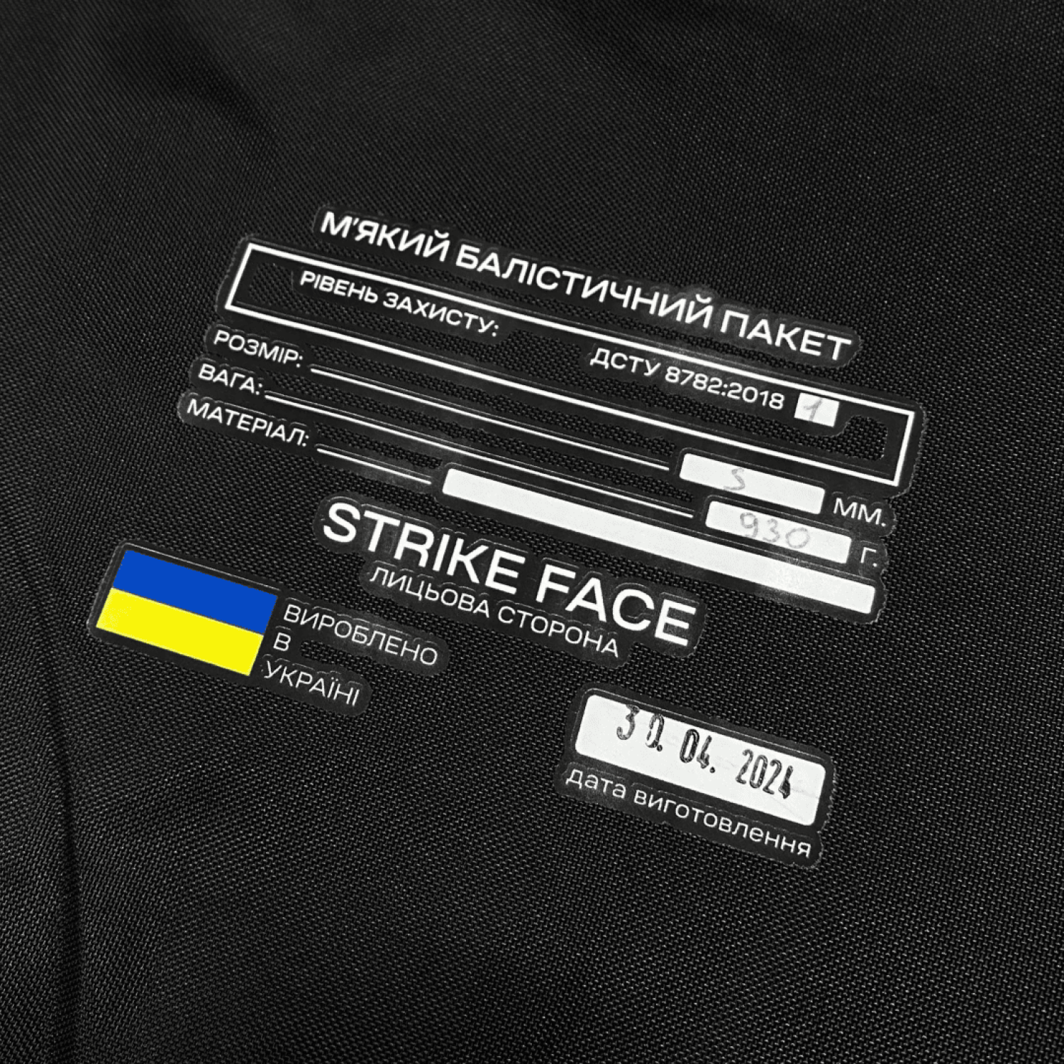 - Балістичний пакет виготовлений з дотриманням усіх технологічних норм, і відповідає 1 класу захисту згідно з ДСТУ 8782:2018 / IIIA NIJ 0101.06.