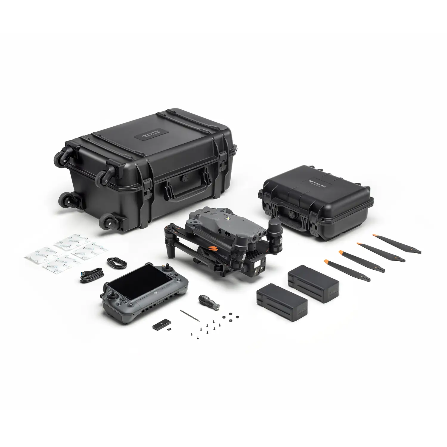 - Пульт дистанційного керування DJI RC Plus: оснащений 7-дюймовим сенсорним екраном з роздільною здатністю 1920×1200 пікселів та яскравістю до 1200 ніт.