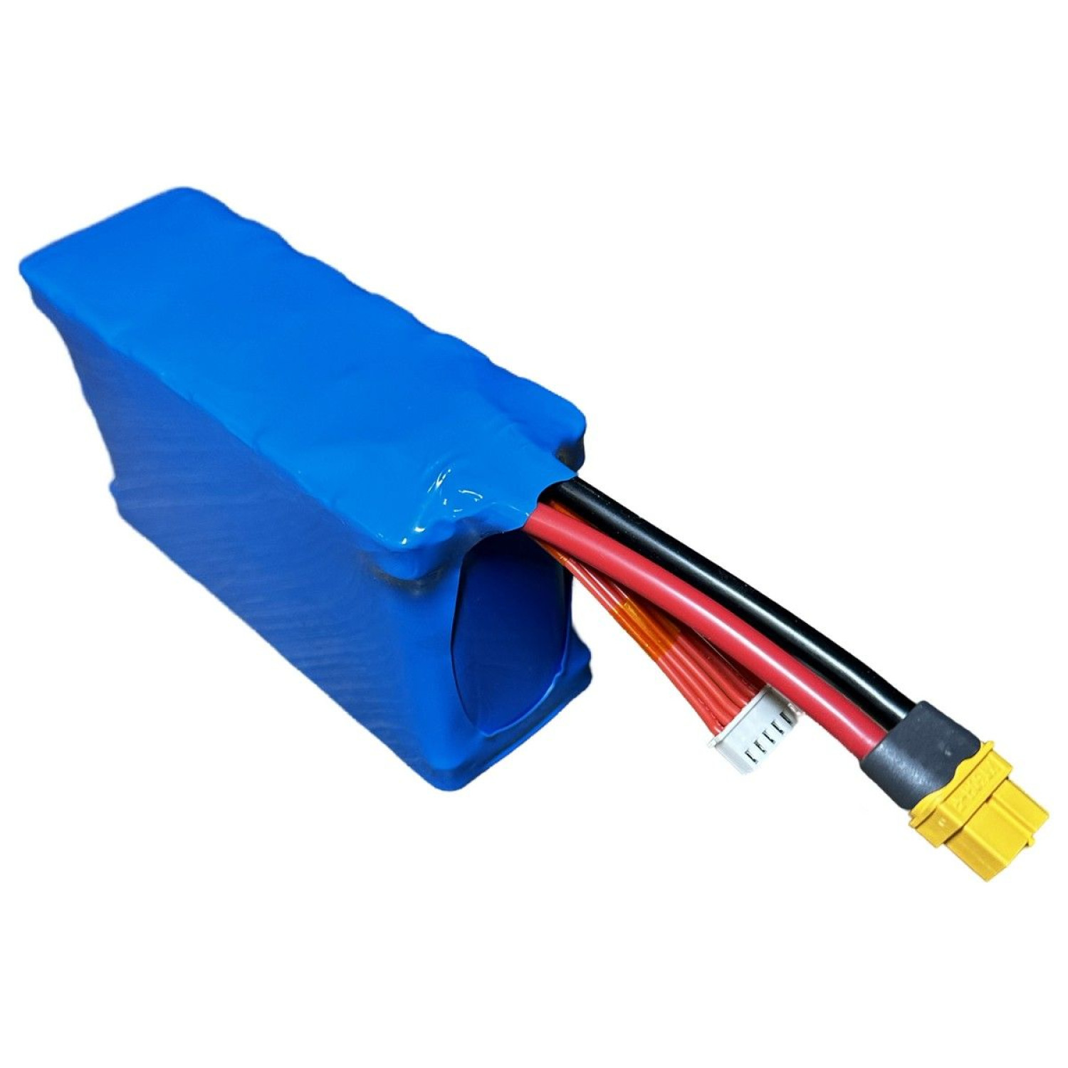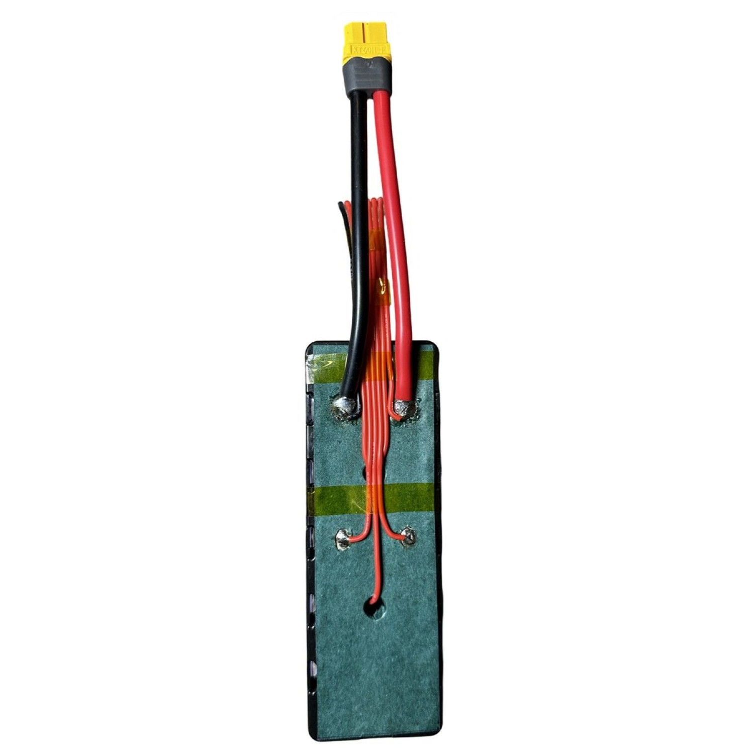 - Наступним кроком припаюємо силові кабелі (10AWG або 12AWG в залежності від сили струму збірки) з роз'ємом XT60H-F та балансувальні кабелі з роз'ємом XH2.54 7-pin. Після припаювання, всі кабелі рівно вкладаються вздовж збірки, щоб в процесі використання акумулятора вони між собою не перетерлись і не спричинили коротке замикання.