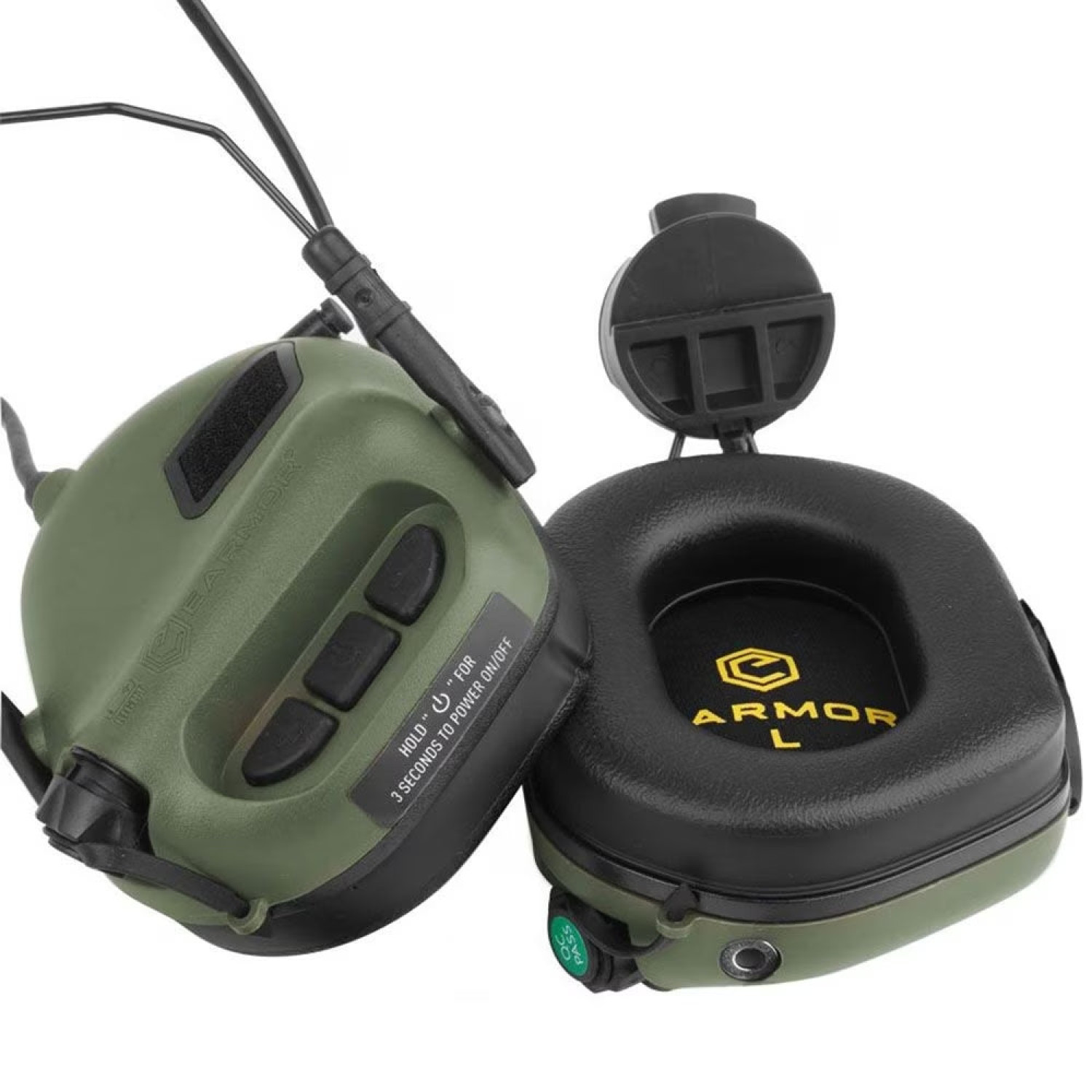 Active headphones Earmor M31H Olive are state-of-the-art noise protection with impressive performance. With a noise reduction rating of +NRR22, they effectively suppress noise above 82 dB, ensuring safety and comfort. Buy Active headphones Earmor M31H Olive with different melodies to remind you to turn on/off and set up, and they are powered by 2 AAA batteries and provide approximately 350 hours of use with new alkaline batteries. The ergonomic cups ensure a very comfortable wearing experience and a tight seal. They also feature a 3.5mm AUX jack for easy connection of media players. With NANO anti-sweat technology, they are resistant to moisture, and their foldable design makes them easy to carry anywhere. These headphones meet IPX-5 water resistance requirements and have been tested and approved in accordance with standards such as CE/RoSH/ANSI S3.19-1974/EN352-1:2002/EN352-4:2001/A1:2005/EN352-5:2002/A1:2005/EN352-6:2002/FCI.