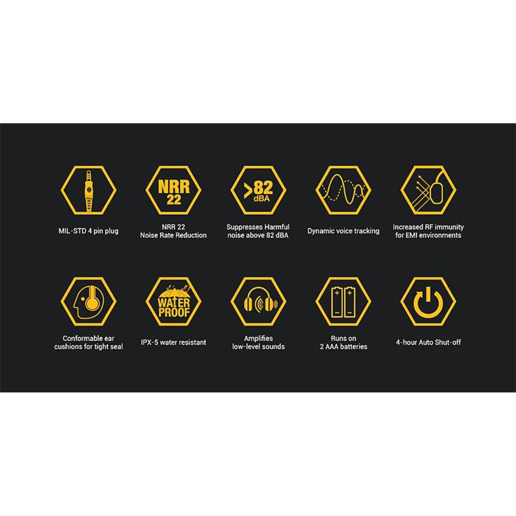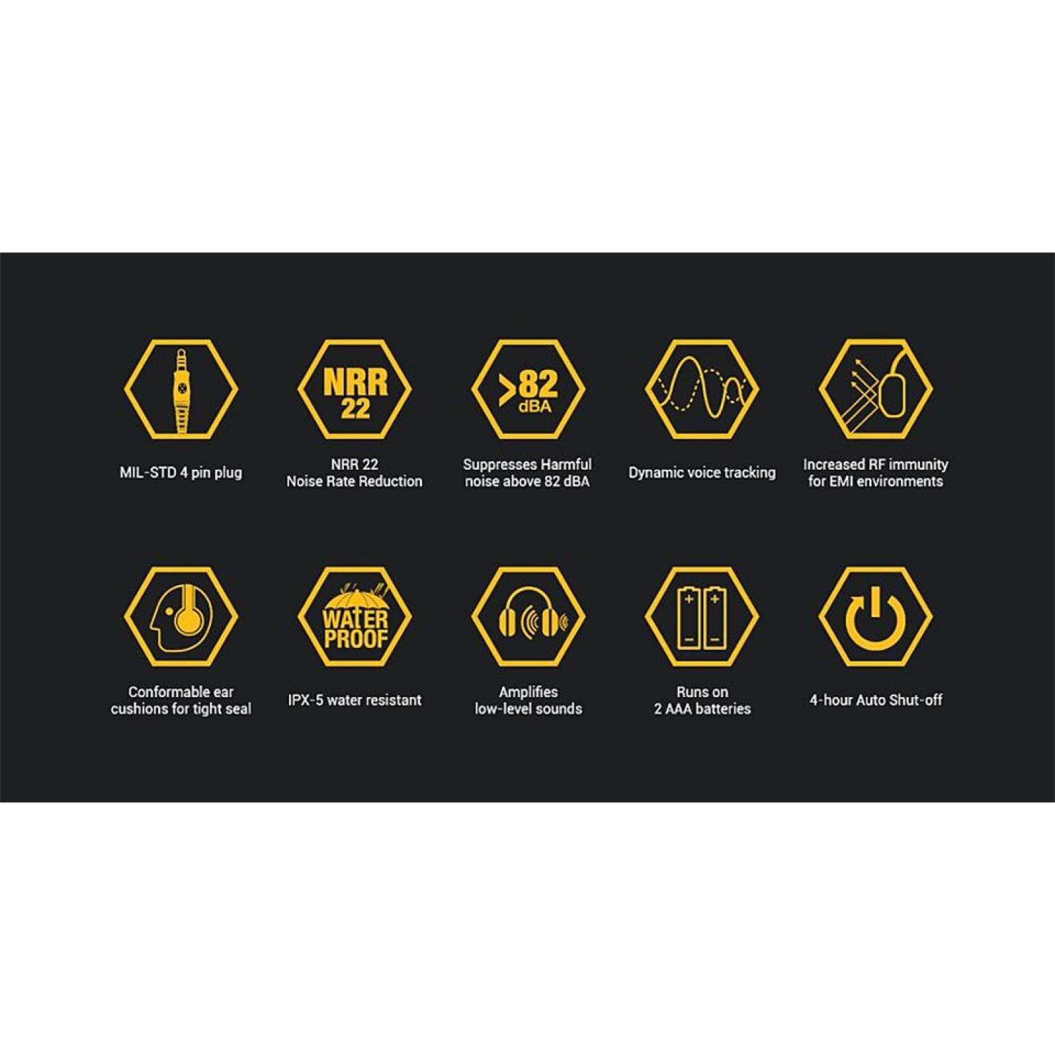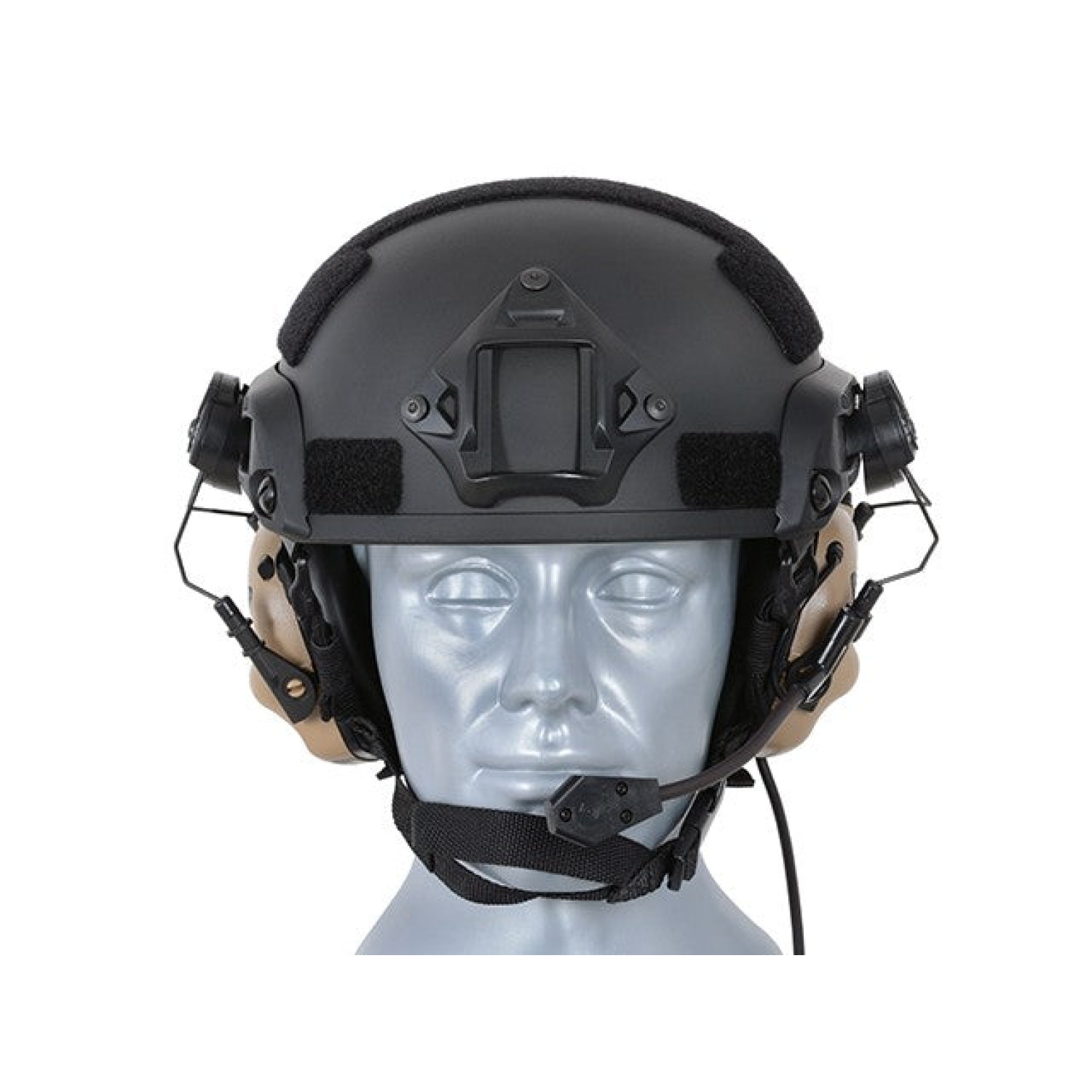 The Earmor M32H Mod 3 Coyote active headphones come with a side mount on the helmet and have a built-in 4-pin MIL-STD PTT connector (not compatible with Nexus TP-120 or Z-tac PTT), as well as a detachable microphone.