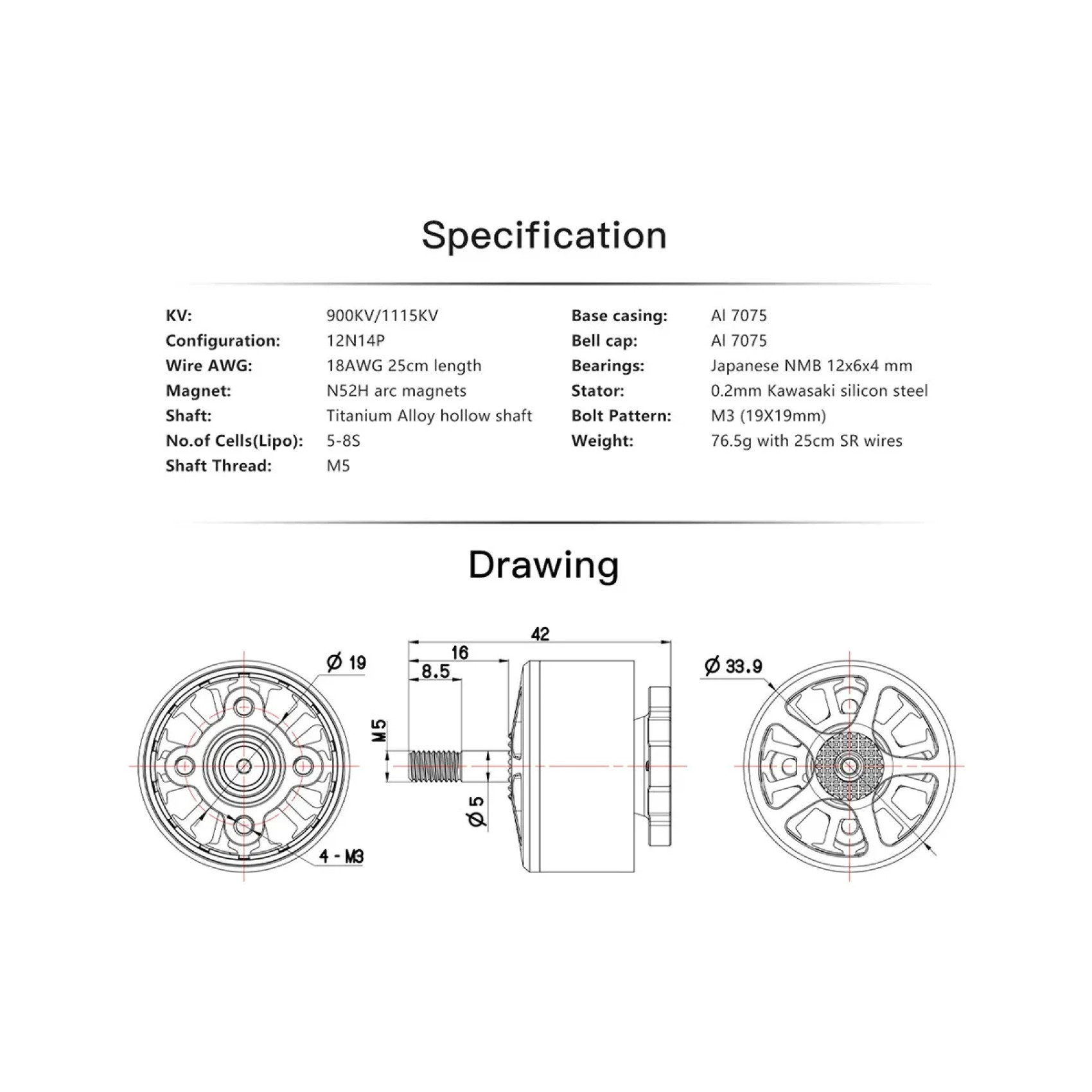 Collectorless motor for FPV BrotherHobby Avenger 2812 V3 900KV