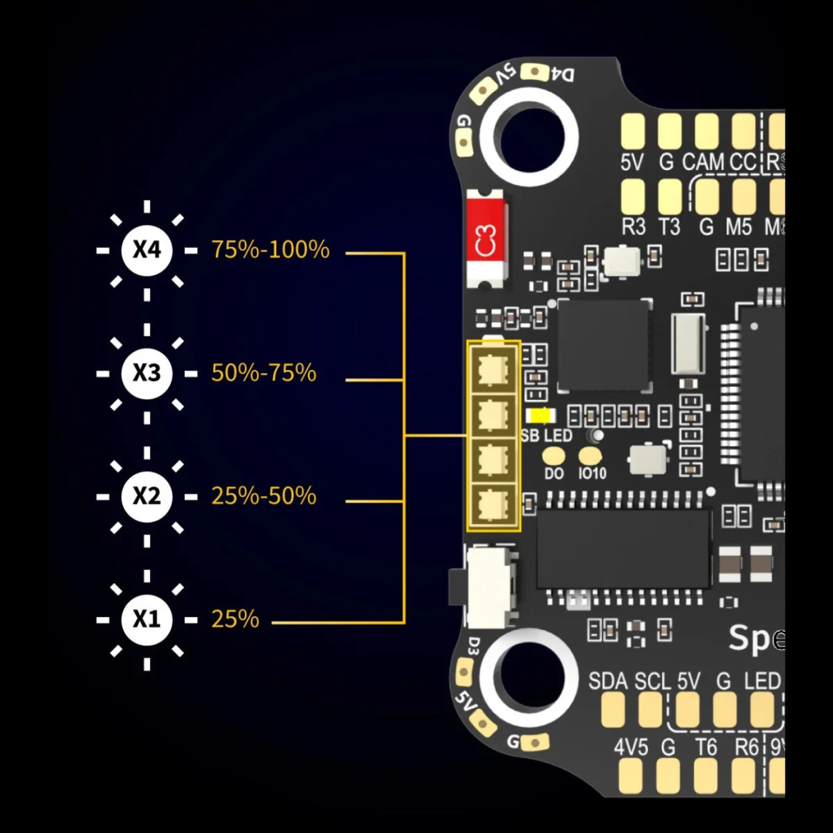 [Б]. When the PC is powered on and in standby mode, the BOOT button can be used to control the LED strips connected to the LED1-LED4 connectors on the bottom side. By default, press the BOOT button briefly to switch to the LED display mode. Press and hold the BOOT button to toggle between SpeedyBee-LED mode and BF-LED mode. In the BF-LED mode, all LED1-LED4 bands will be controlled by the Betaflight firmware.