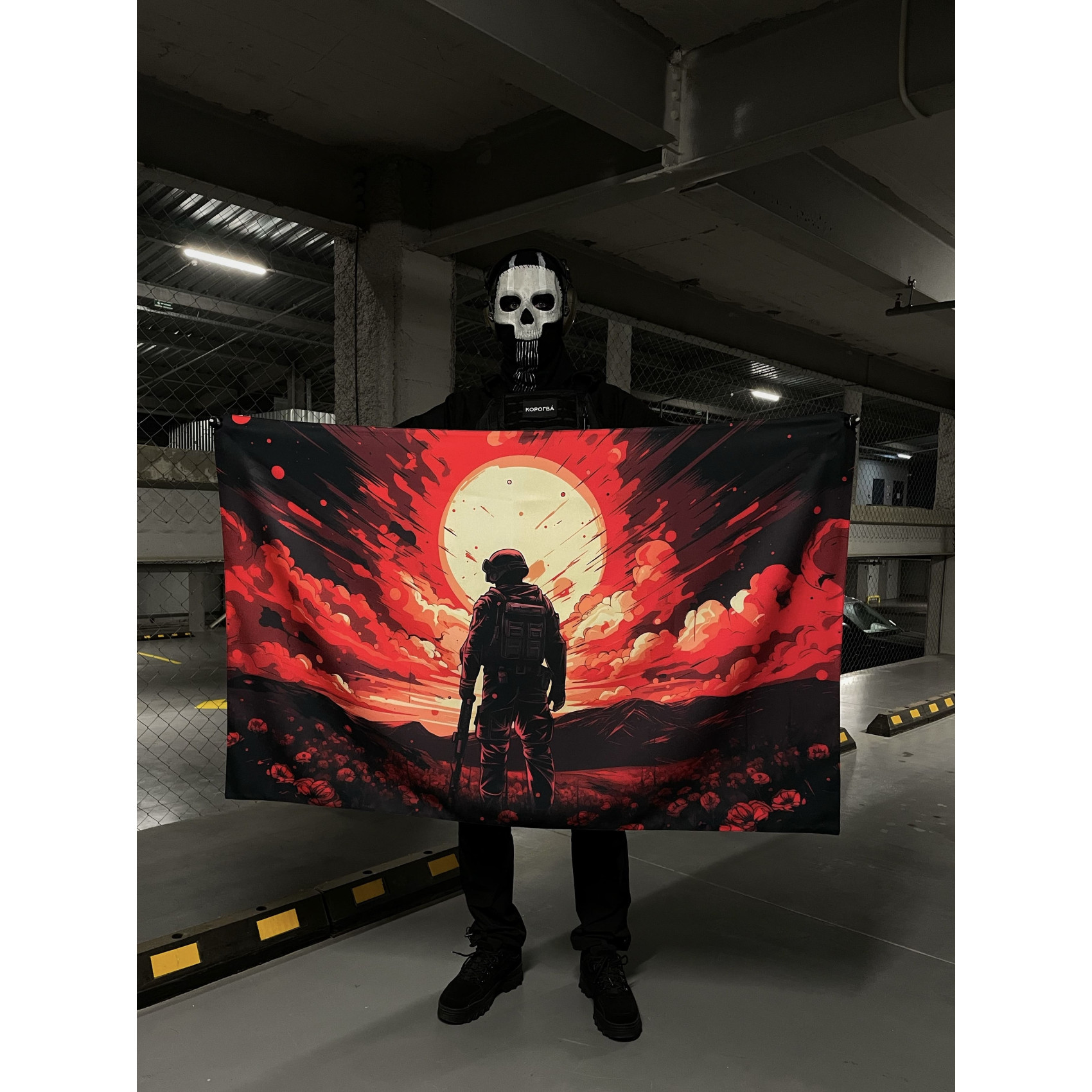 Corogva flag Warrior in the field has a size of 140:90 cm and a two-sided design
