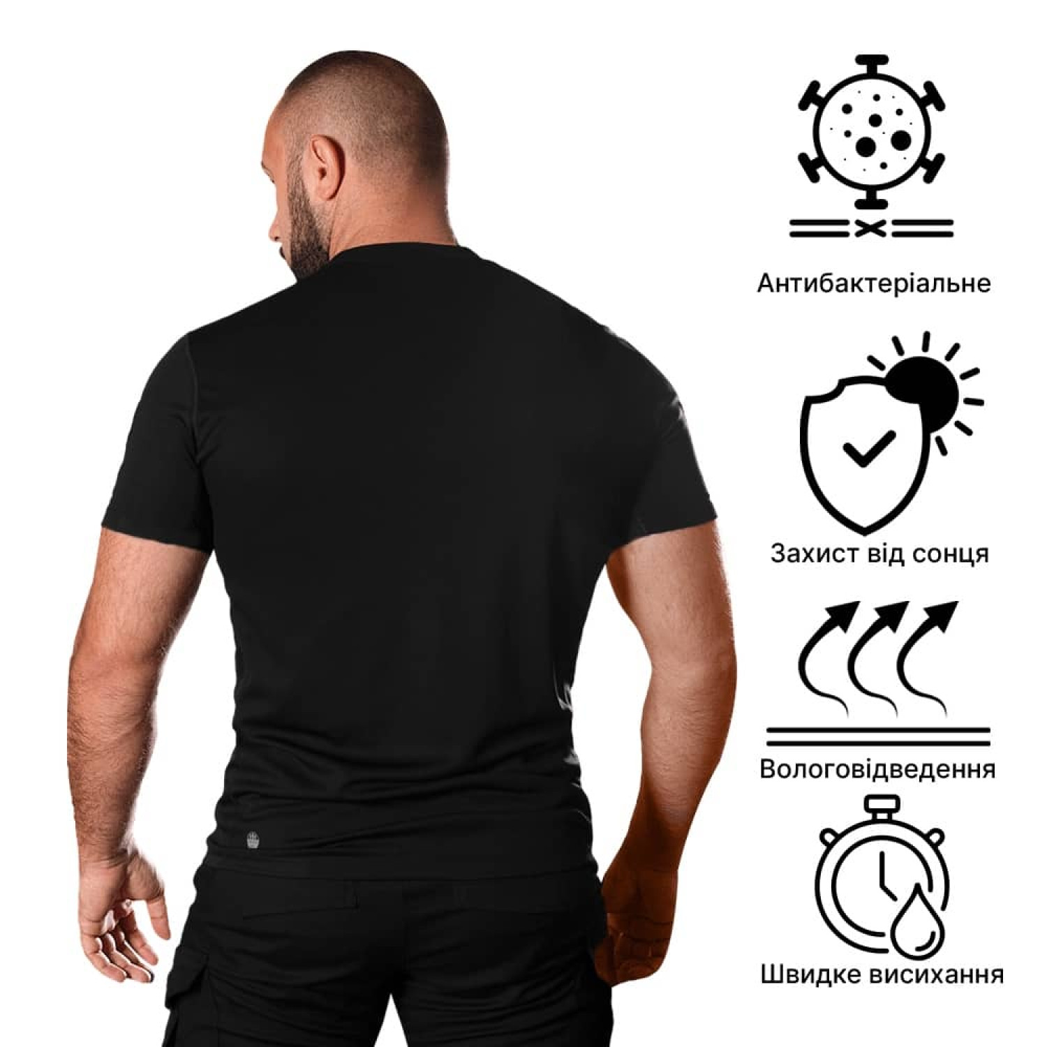 The T-shirt has an ergonomic cut and flat seams, as well as offset seams on the shoulders. Thanks to these design features, the T-shirt does not restrict movement and does not chafe during prolonged use.