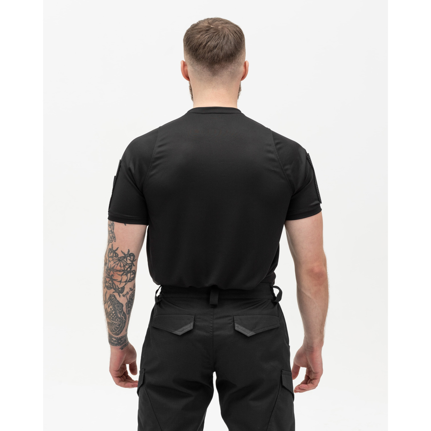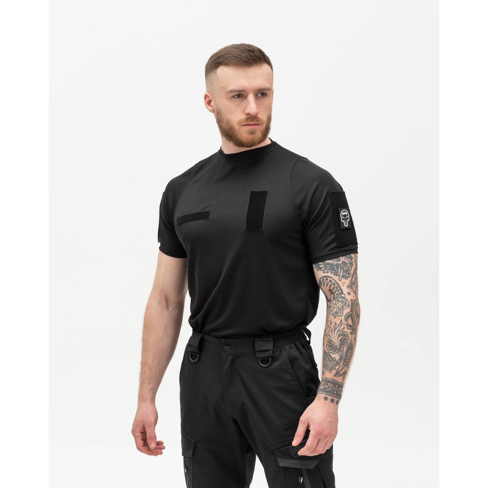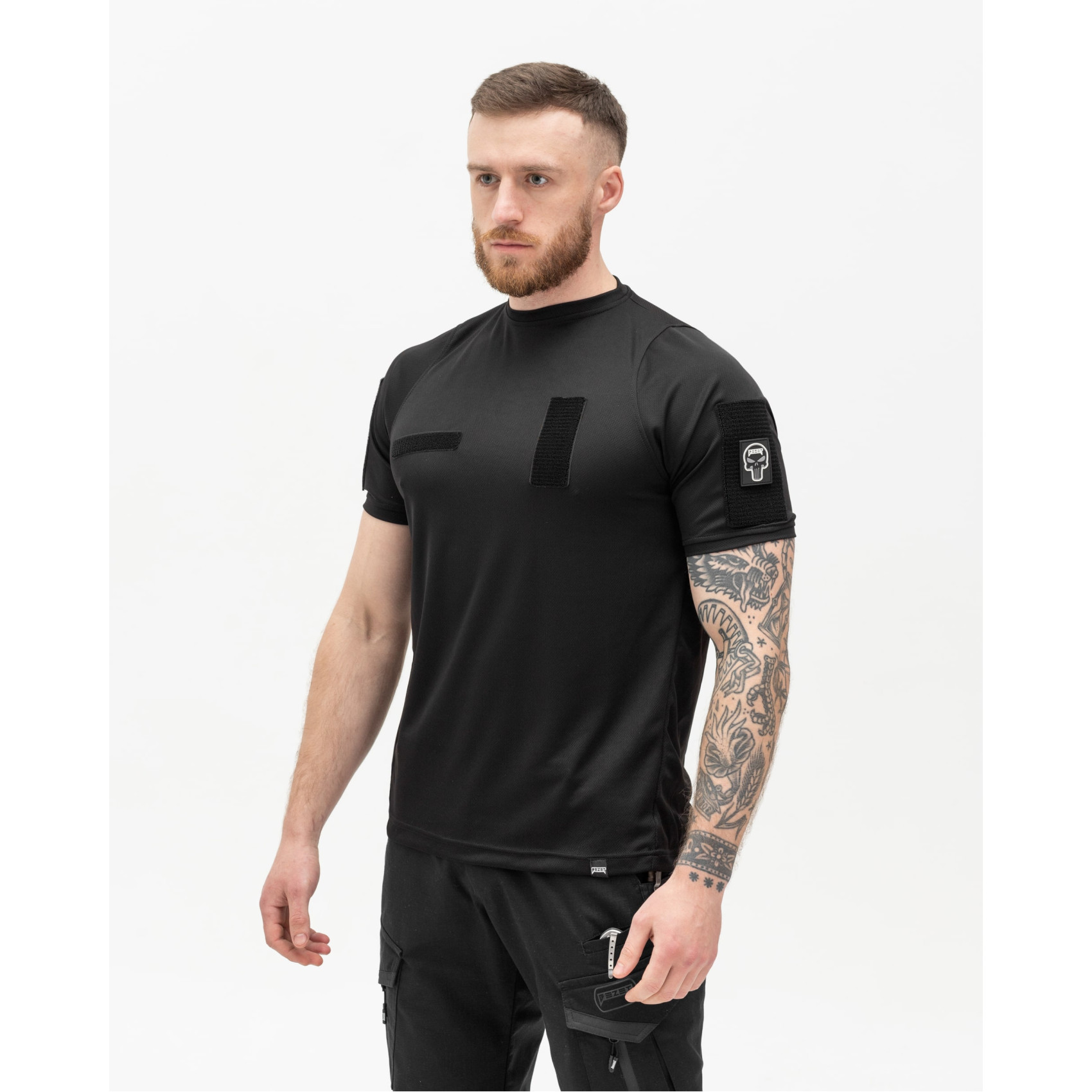 - In addition, the T-shirt is equipped with Velcro on the sleeves and chest for attaching chevrons, various identification elements, logos, ranks or other military insignia;