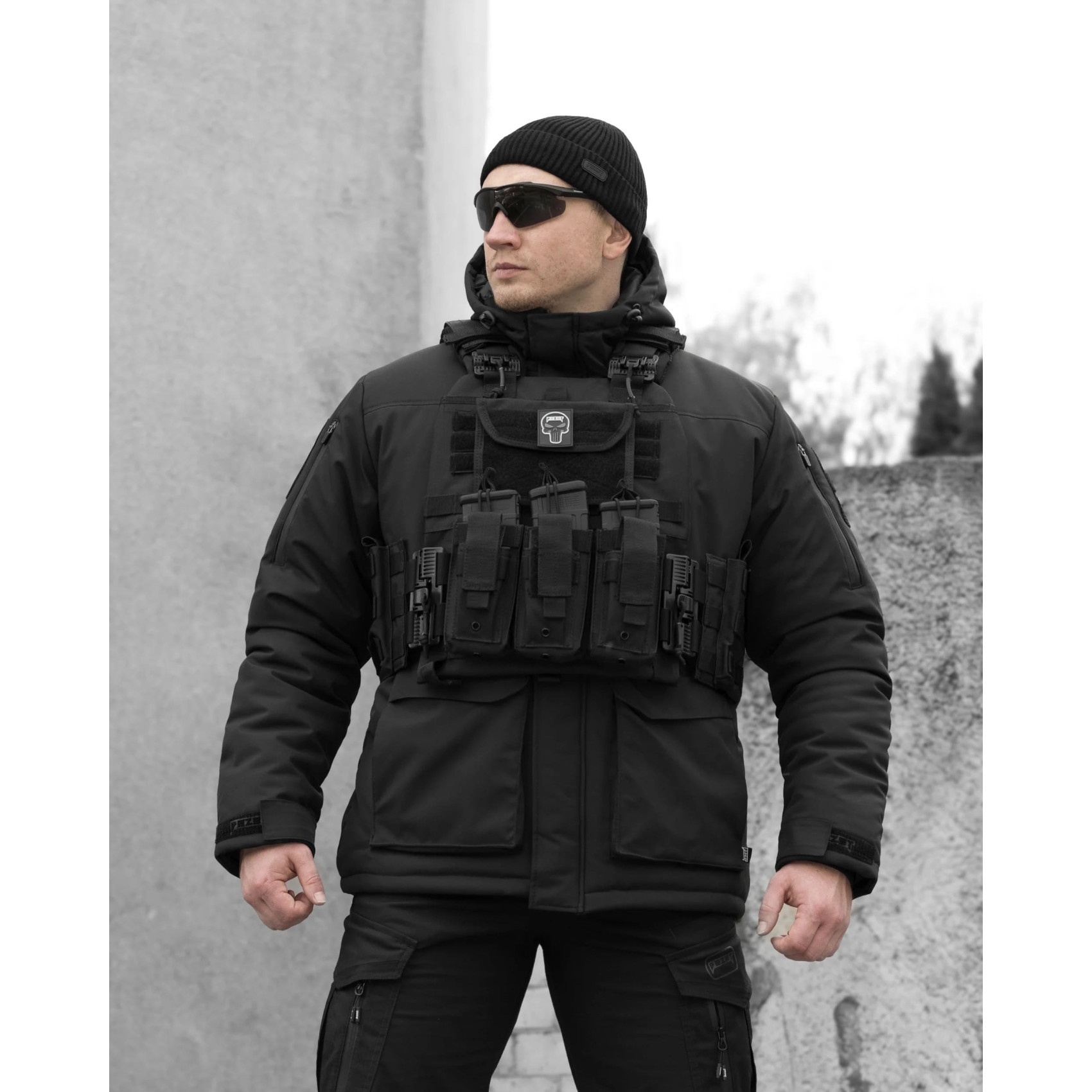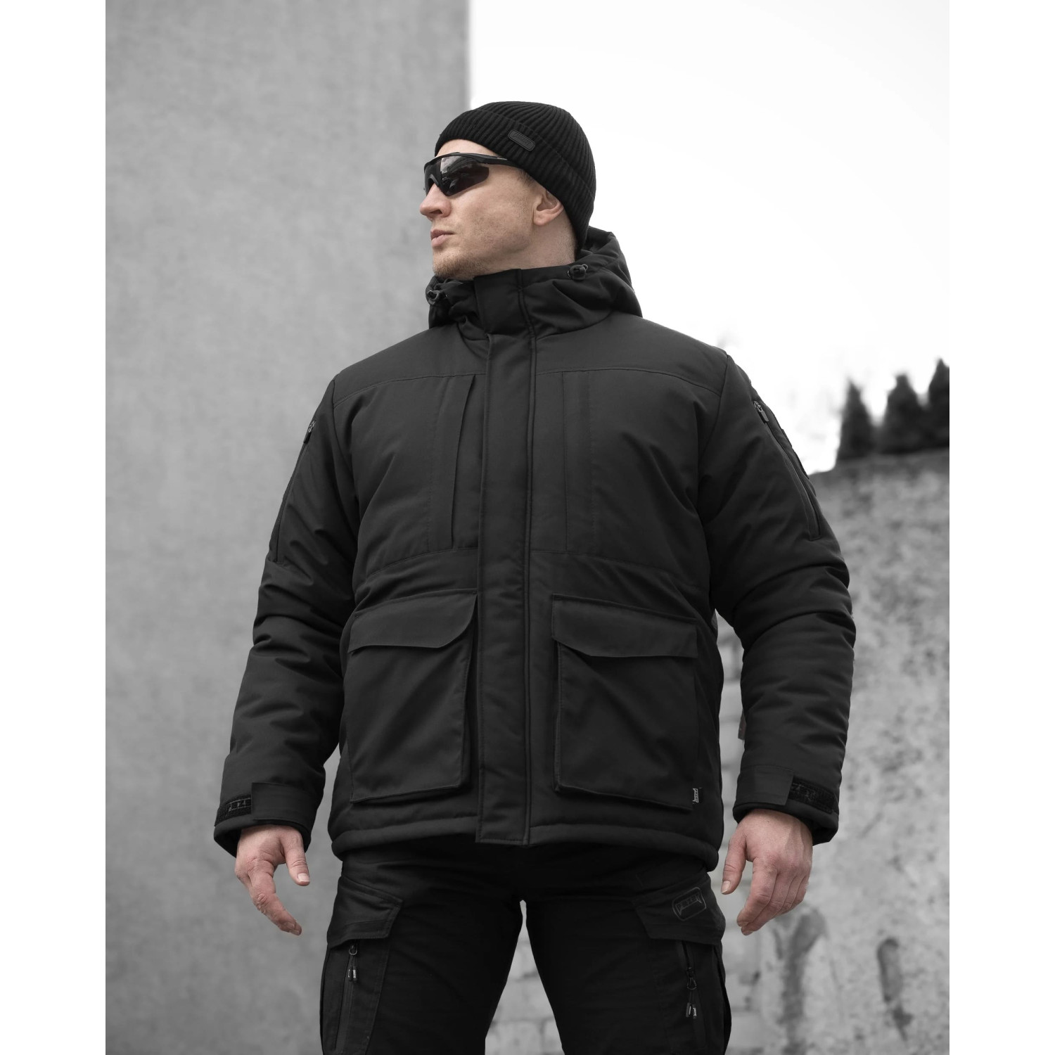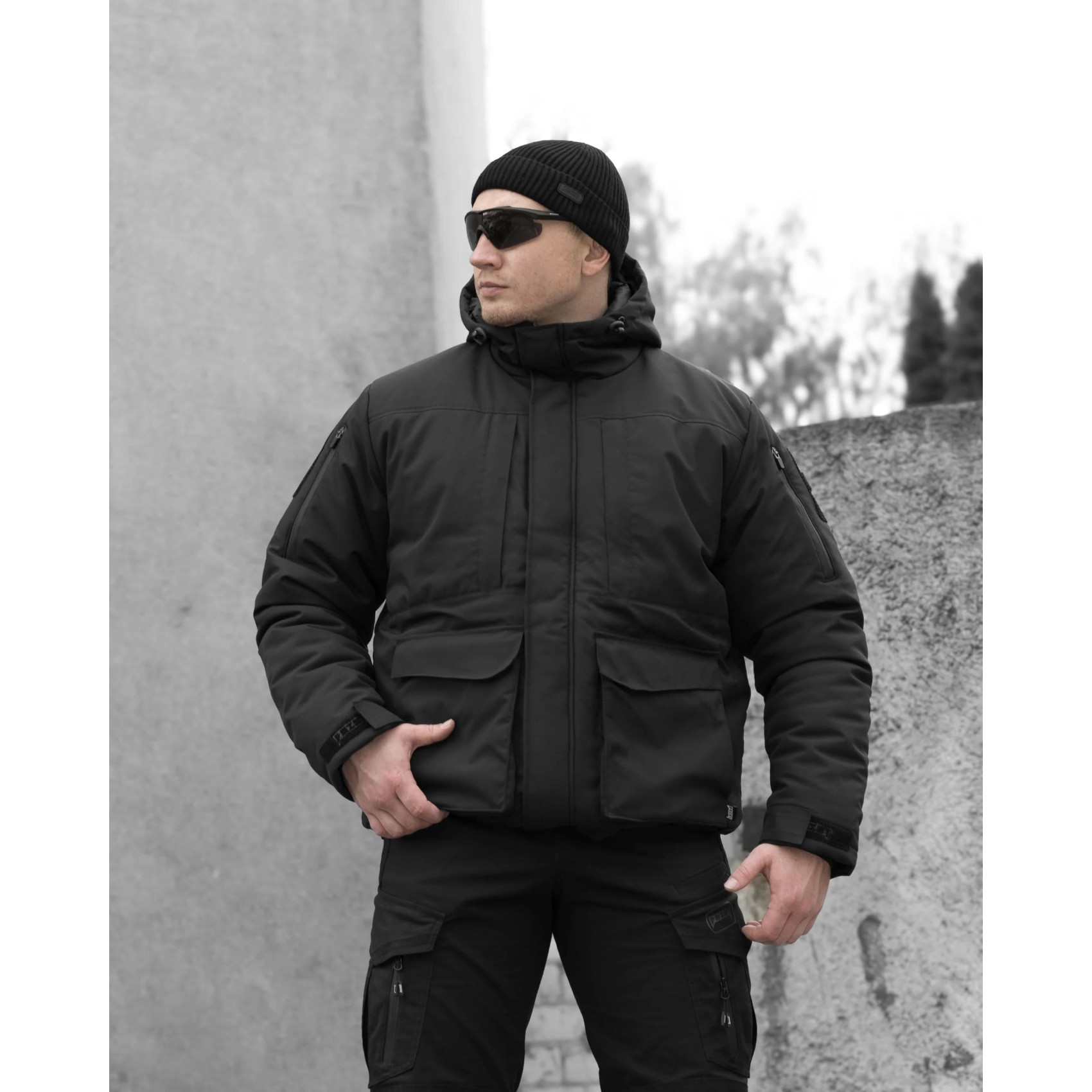 The BEZET SnowPatrol Black tactical winter jacket is made of high quality two-layer raincoat fabric.