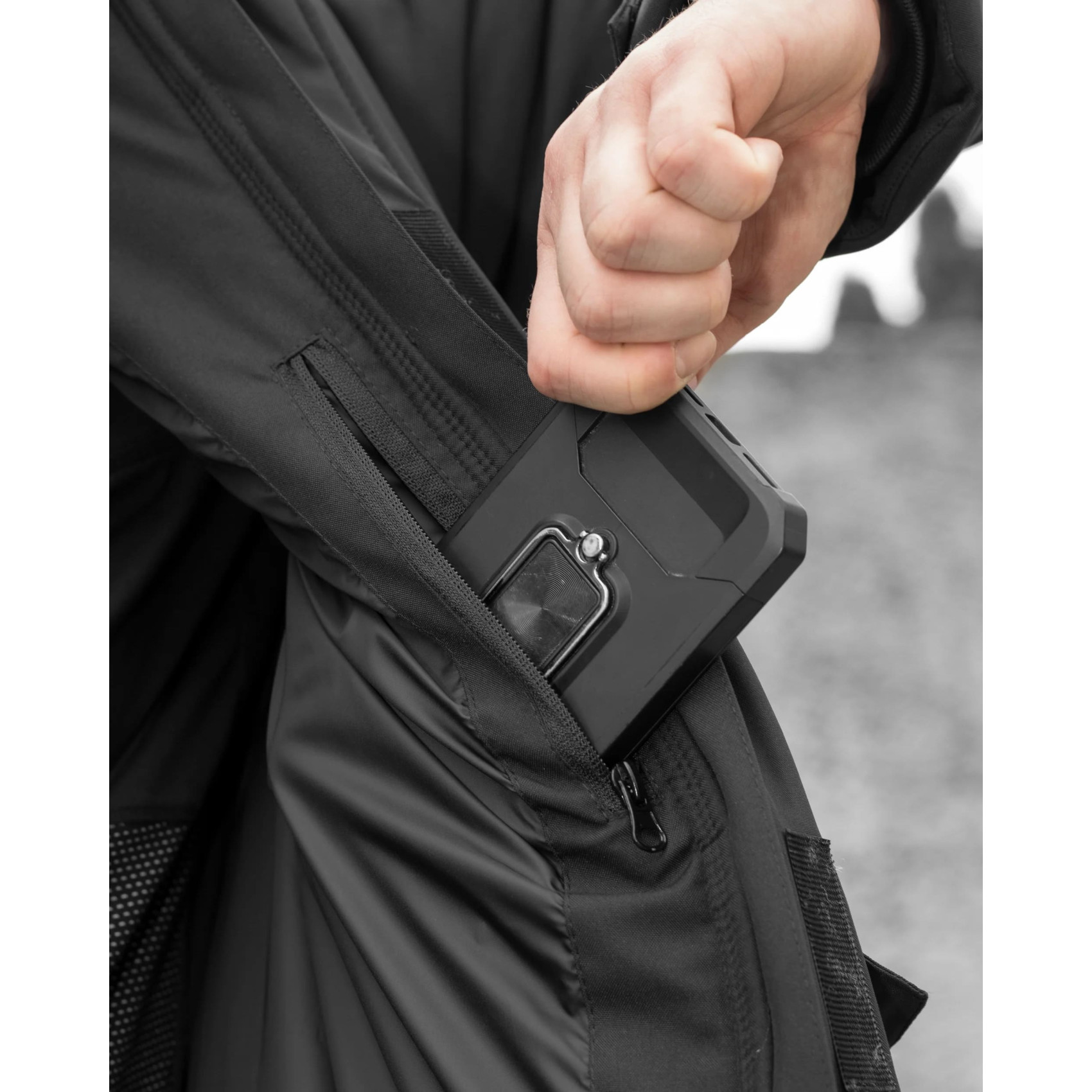 - An additional pocket on each sleeve with water-repellent zippers and Velcro for chevrons;