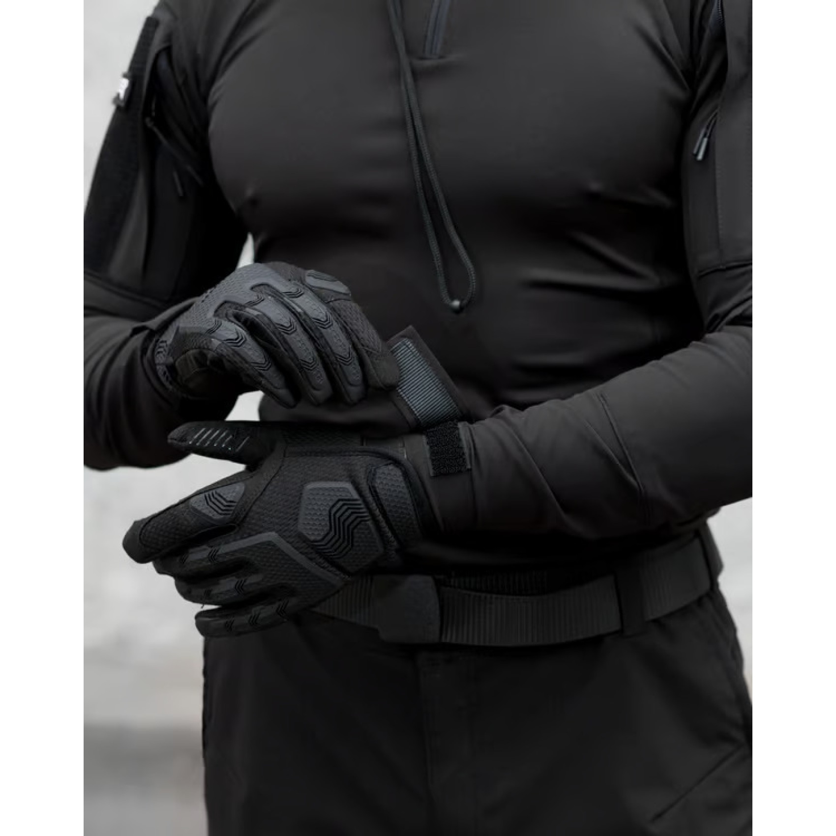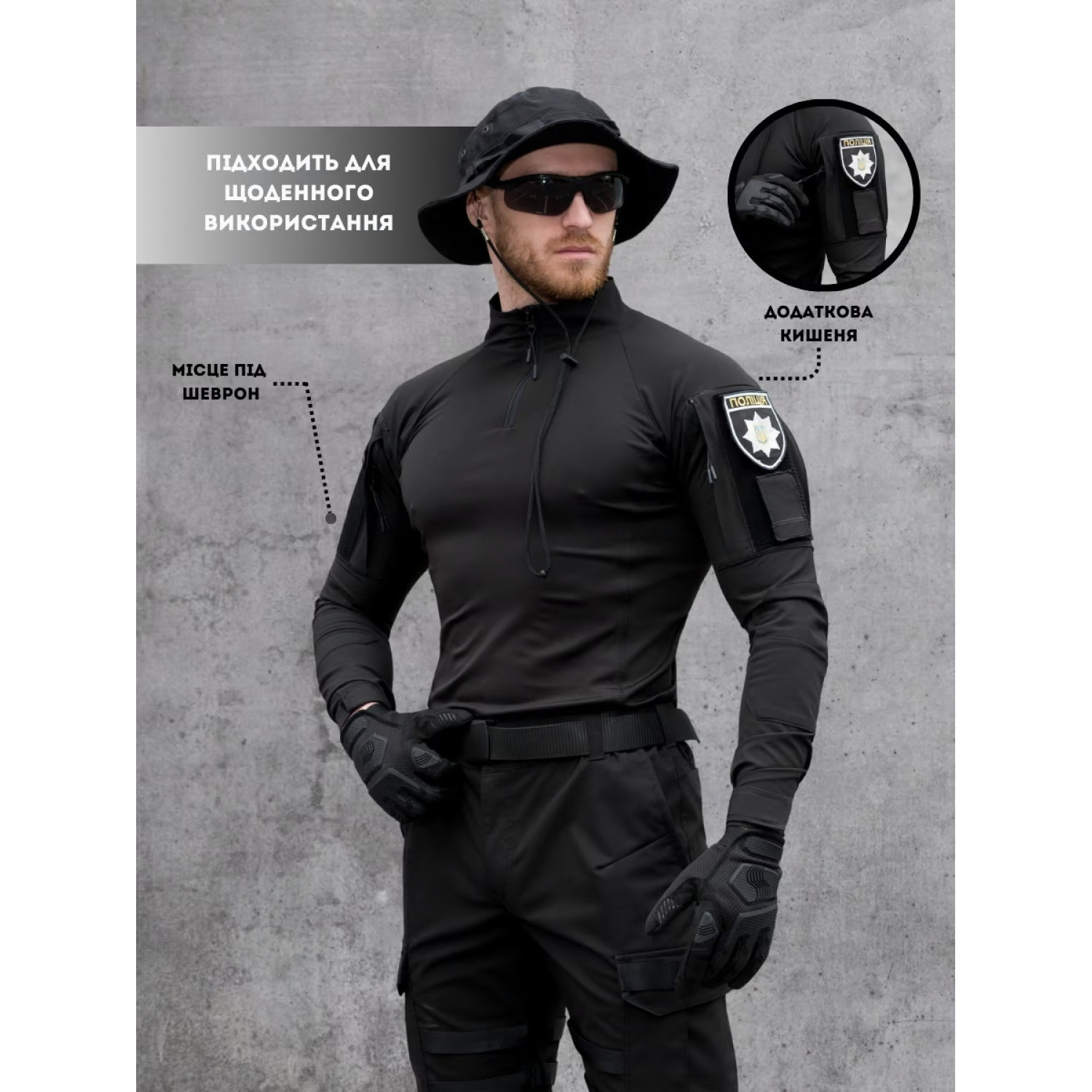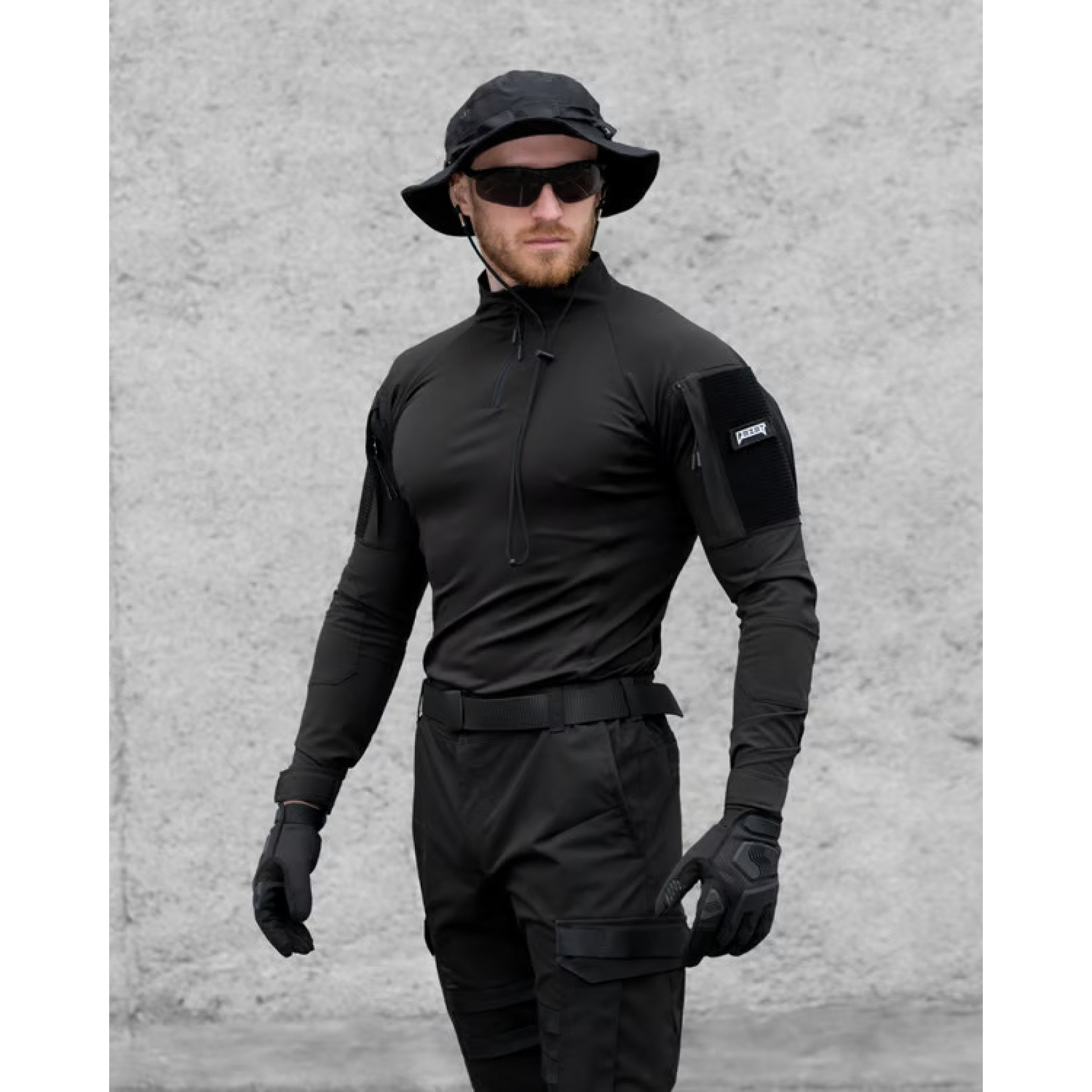 Tactical shirt Bezet Combat Black with long sleeves and a high stand-up collar. The main part of the shirt is made of lycra, the sleeves and neck are made of Komfort raincoat fabric. The peculiarity of lycra is that it dries quickly, is easy to wipe, has antibacterial properties, is light and pleasant to the body. In turn, Komfort has a special double weave "Double Weav" with a mechanical stretch effect in 4 directions, which provides freedom of movement. Also, this fabric is resistant to tearing and wear, there is a water-repellent impregnation that perfectly protects against wind, sand, water and dries quickly. Both fabrics are used in sewing clothes for people involved in sports, tourism, or military activities.