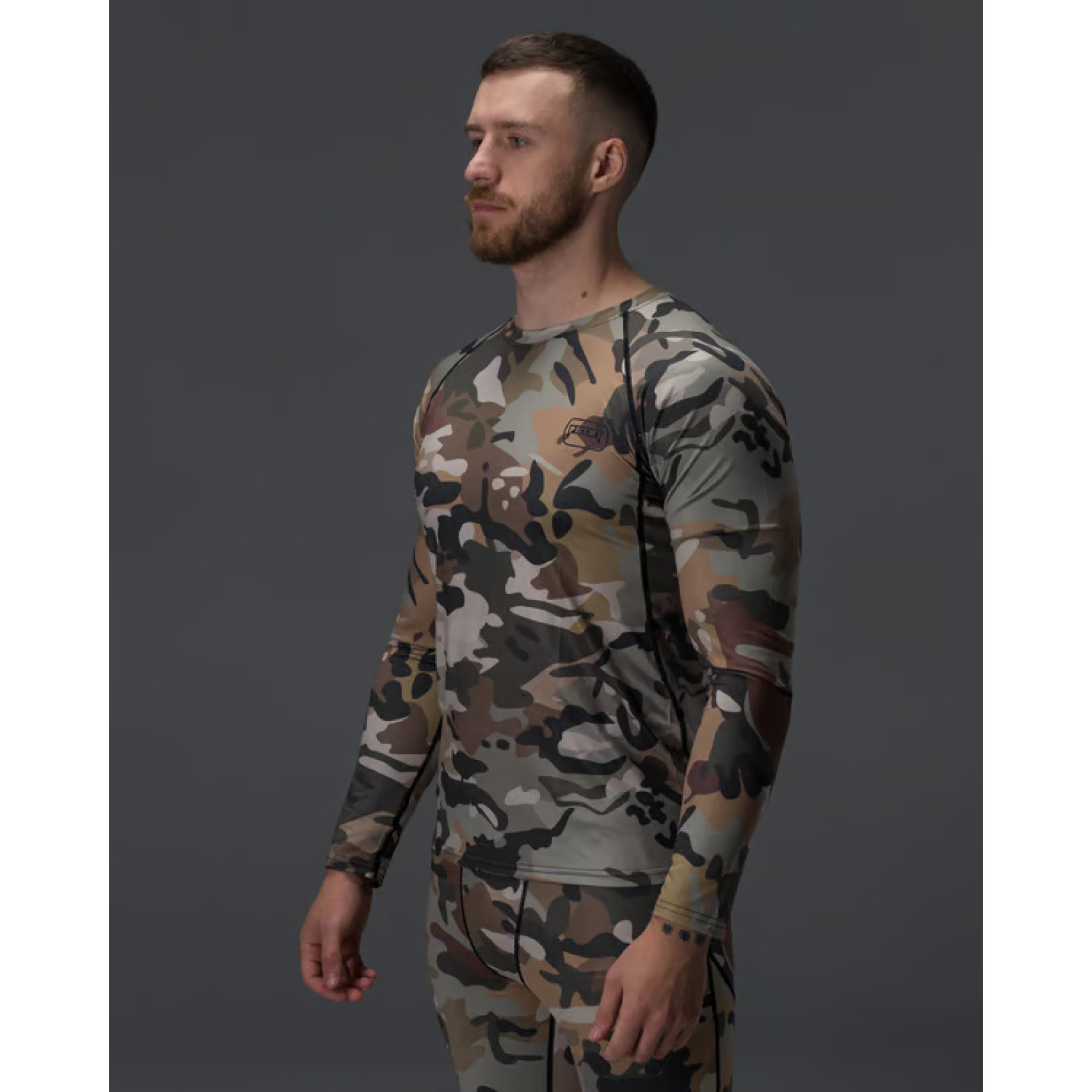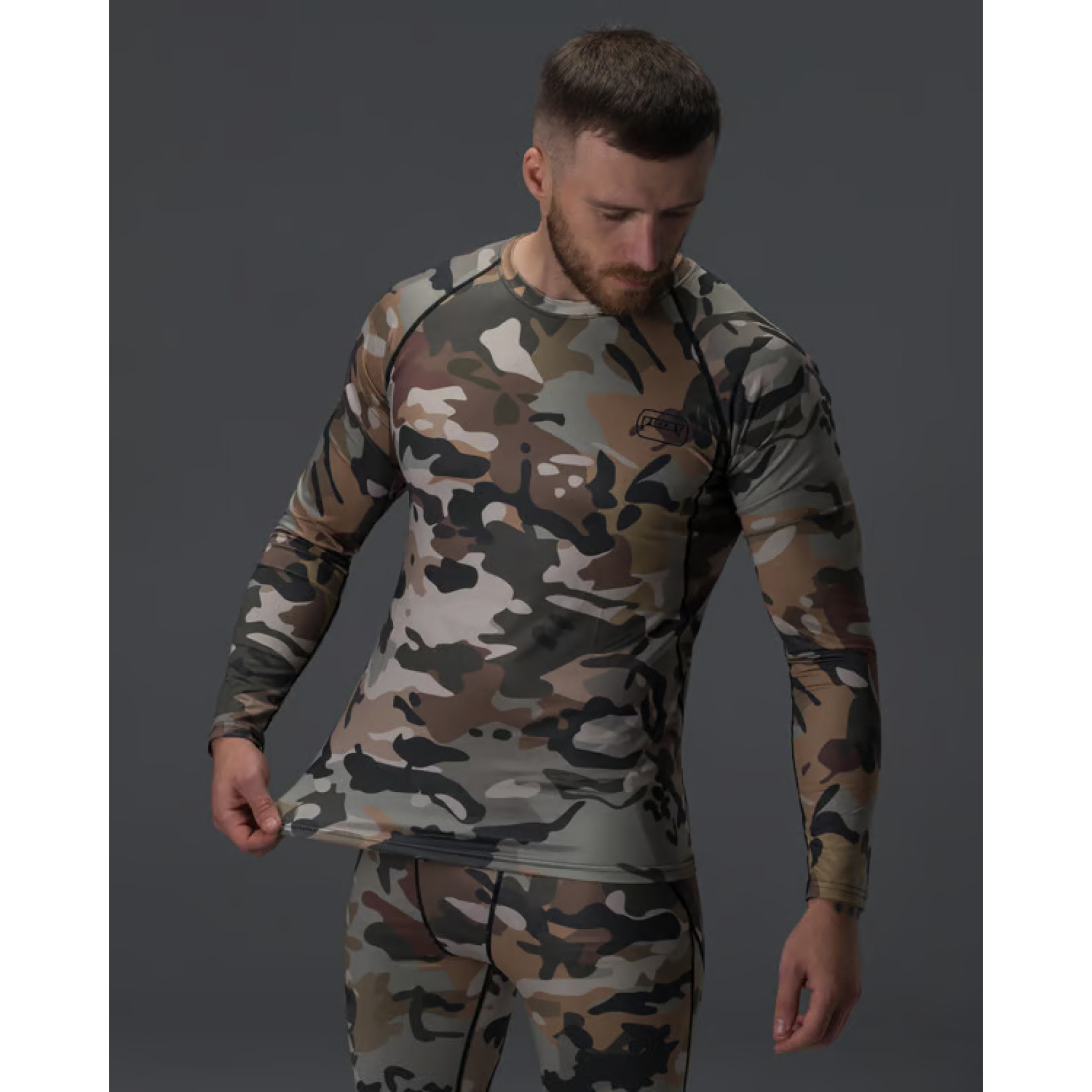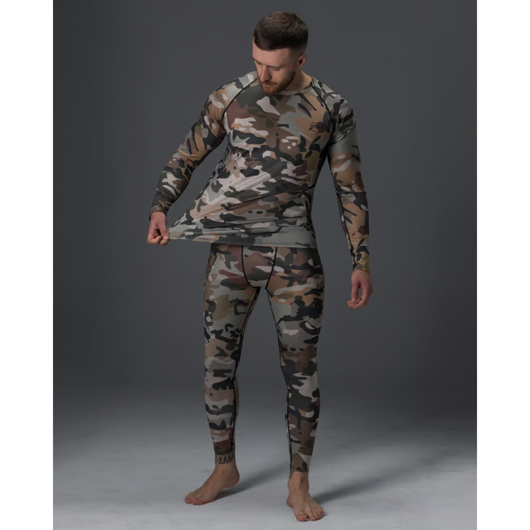 The BEZET Multicam thermal underwear set is made of a two-component material - viscose absorbs and evaporates moisture 1.5 times faster than cotton. Polyester transfers all moisture from the skin to the outside. Anatomical cut that covers all critical heat loss points: neck and throat area, lower back, hips, and wrists. Maximum precision of elements due to laser cutting. Flat seams contribute to wear resistance, increase the strength of the structure, and also eliminate chafing and skin injuries when worn. The underwear fits the figure, but does not restrict movement. The soft, body-friendly material of the thermal underwear wicks away excess moisture and retains heat, ensuring internal comfort even during high physical activity. The anatomical cut and flat, elastic seams increase the durability of the product and create additional comfort. Thermal underwear is versatile and the best choice for hunters and tourists in cold and very cold weather during any physical activity.