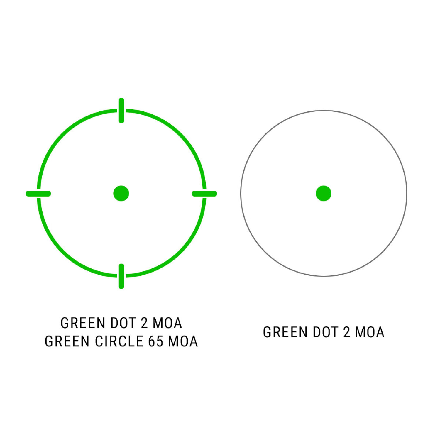 - Reticle: 2 MOA dot; 2 MOA dot in 65 MOA circle