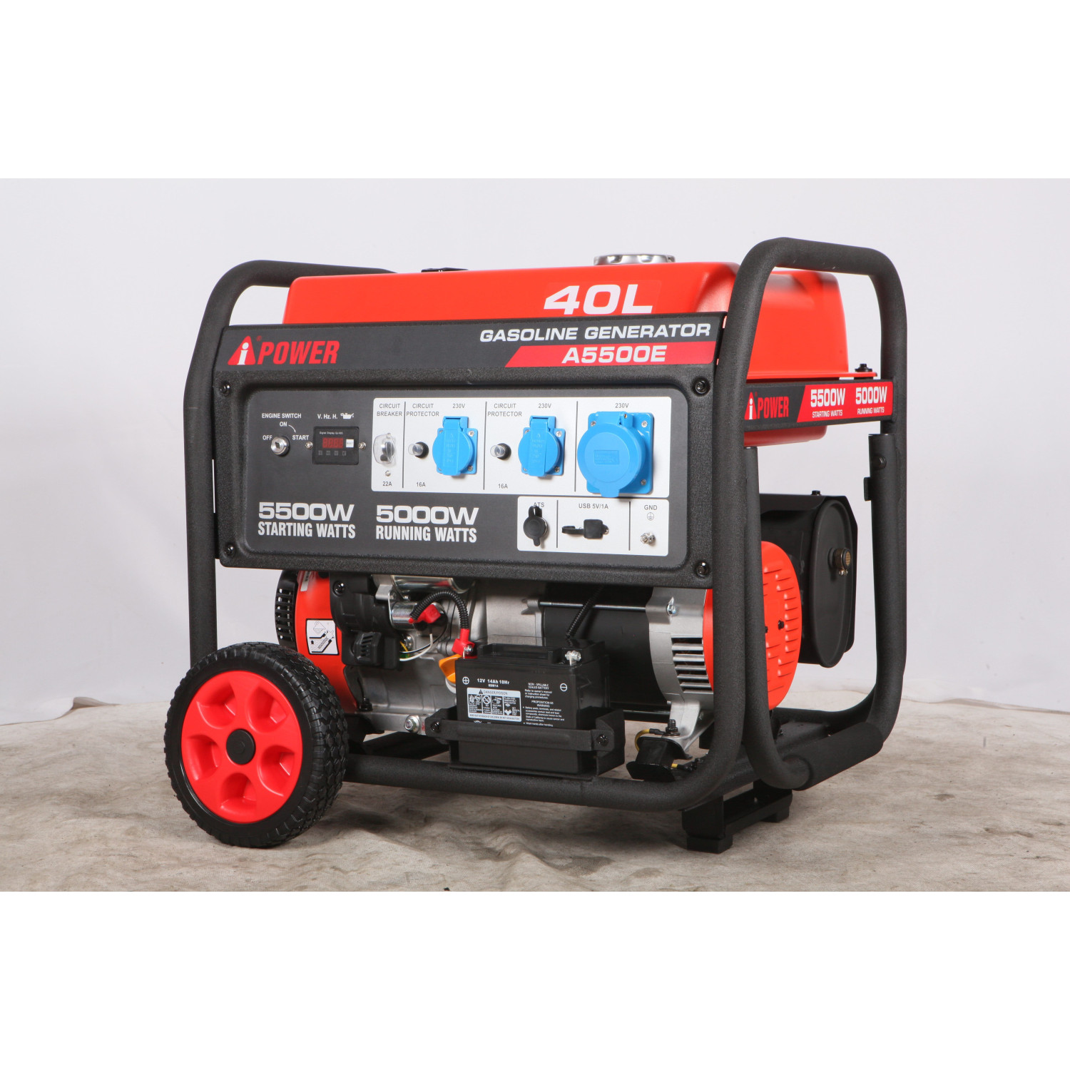 Генератор електроенергії A-iPower A5500E, на колесах, E-start, бензин, потужністю 5 кВт