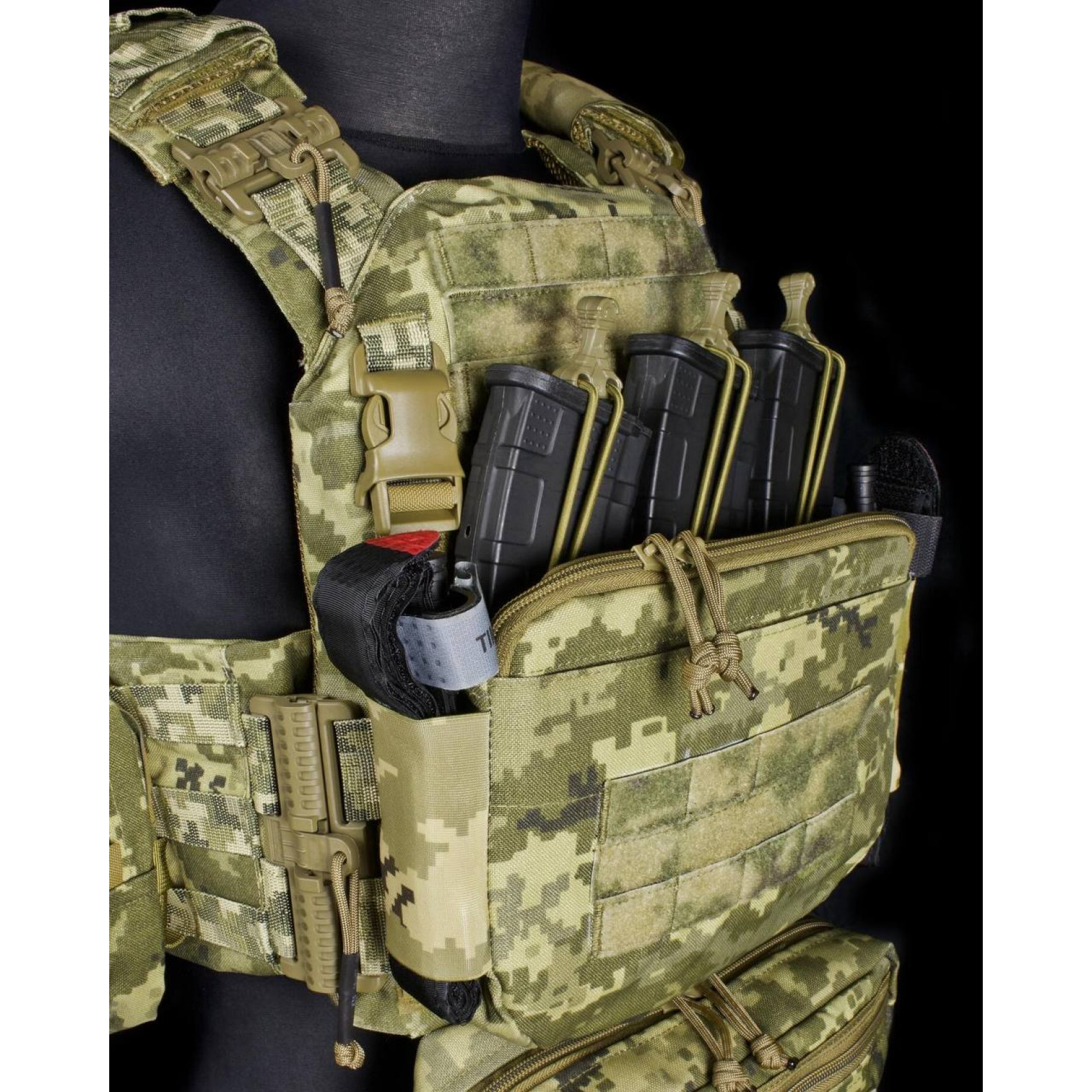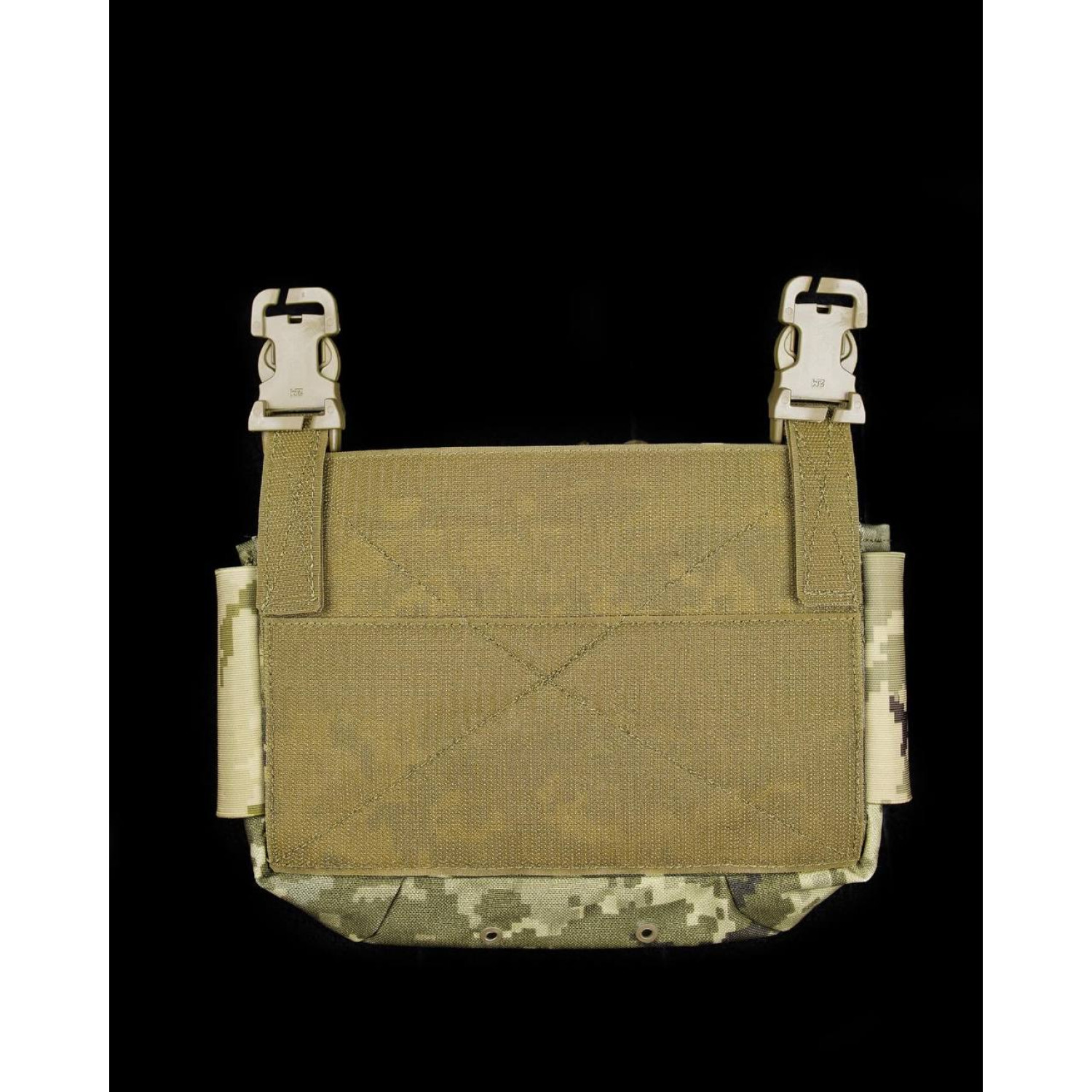 - Плакард кенгу зі вставкою з термопласту під 3 магазини та сумкою органайзером L (плакард Кенгу має вставку пружності з термопласту та гумові утримувачі турникетів по обидва боки (2 фастекси у комплекті) встановлюється за допомогою панелі з липучки та пари фастексів.