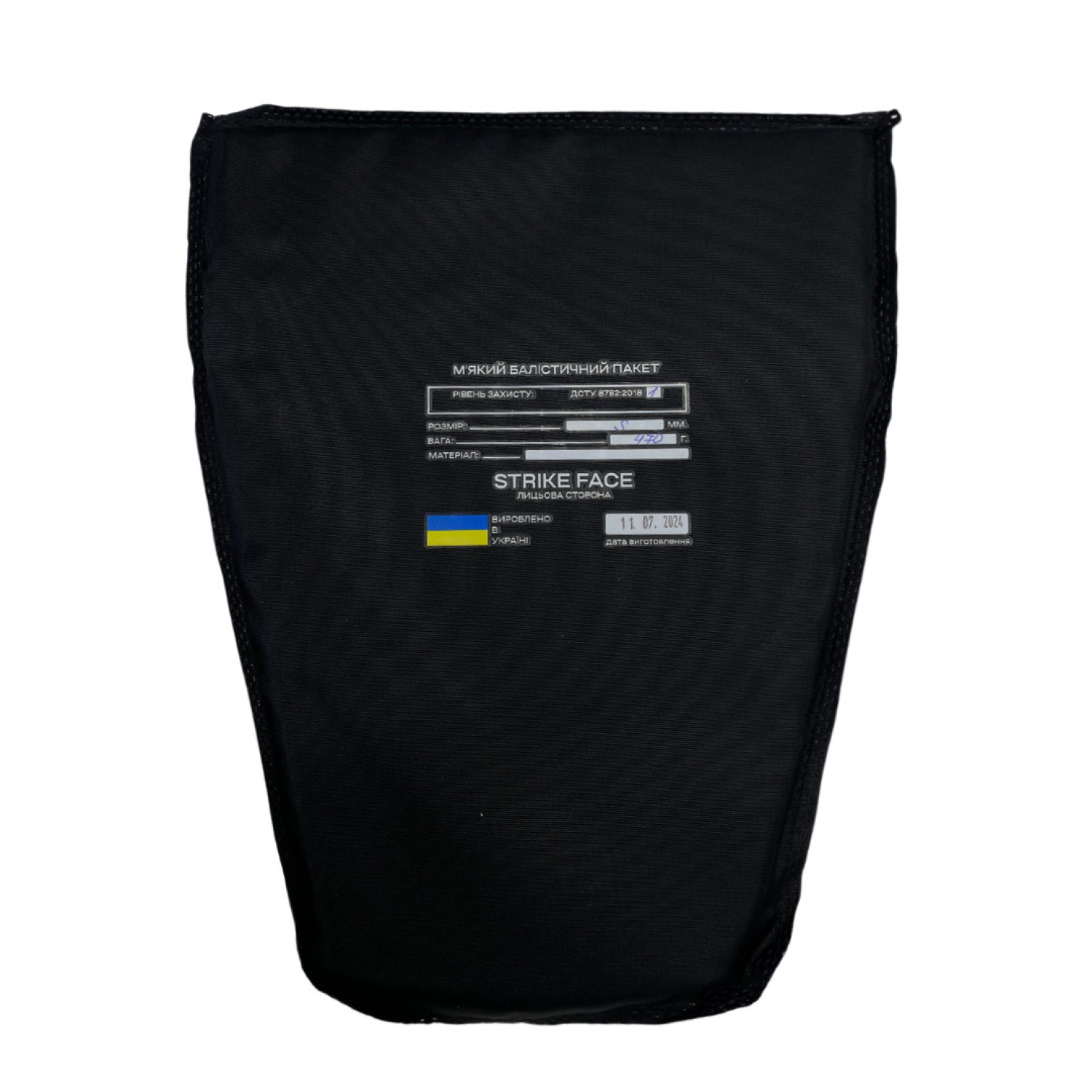 - Соответствует 1-му классу защиты ДСТУ 8782:2018. Выдерживает пули 9х18 мм Макарова и 9х19 мм Luger со скоростью до 335±10 м/с.