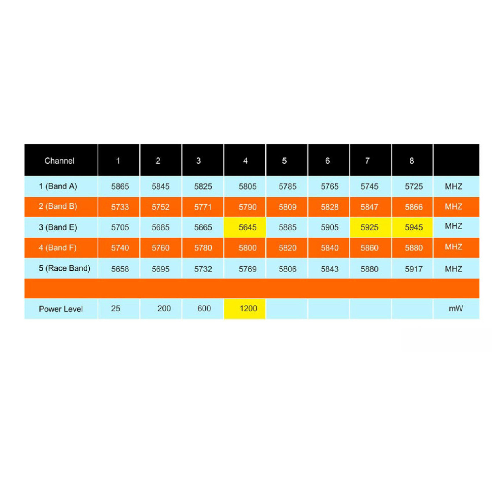 Примечание: Частоты в сетке E: 5645, 5925, 5945 были удалены производителем в связи с запретом их использования в США.