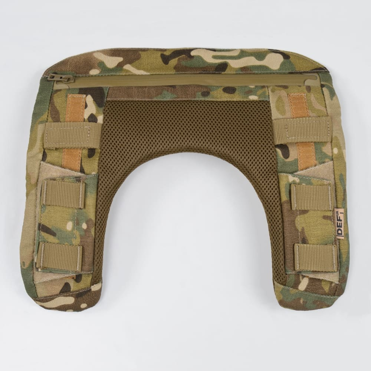 Демпфер для плитоноски плечевой DEFua Мультикам помогает смягчить плечевые лямки и перераспределить вес плит и снаряжения. Элементы выполнены из объемной 3D сетки улучшают вентиляцию и защищают от натирания.