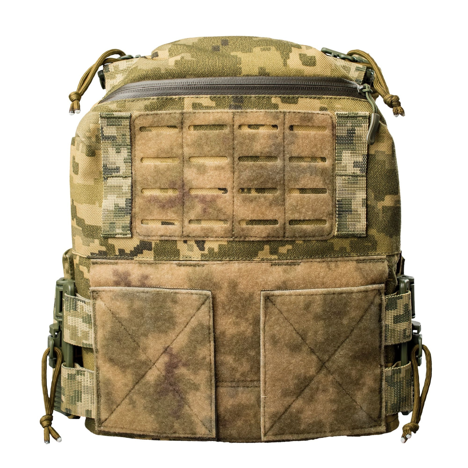 Дизайн позволяет буквально в полевых условиях менять конфигурацию плечевых лямок и камербандов, использовать различные фронтальные модульные панели и другое специализированное снаряжение. А встроенный карман для документов избавит вас от необходимости в больших и громоздких административных подсумках для телефонов или навигационных карт.