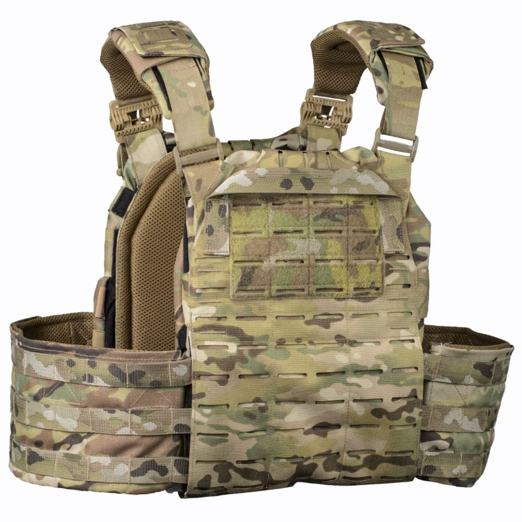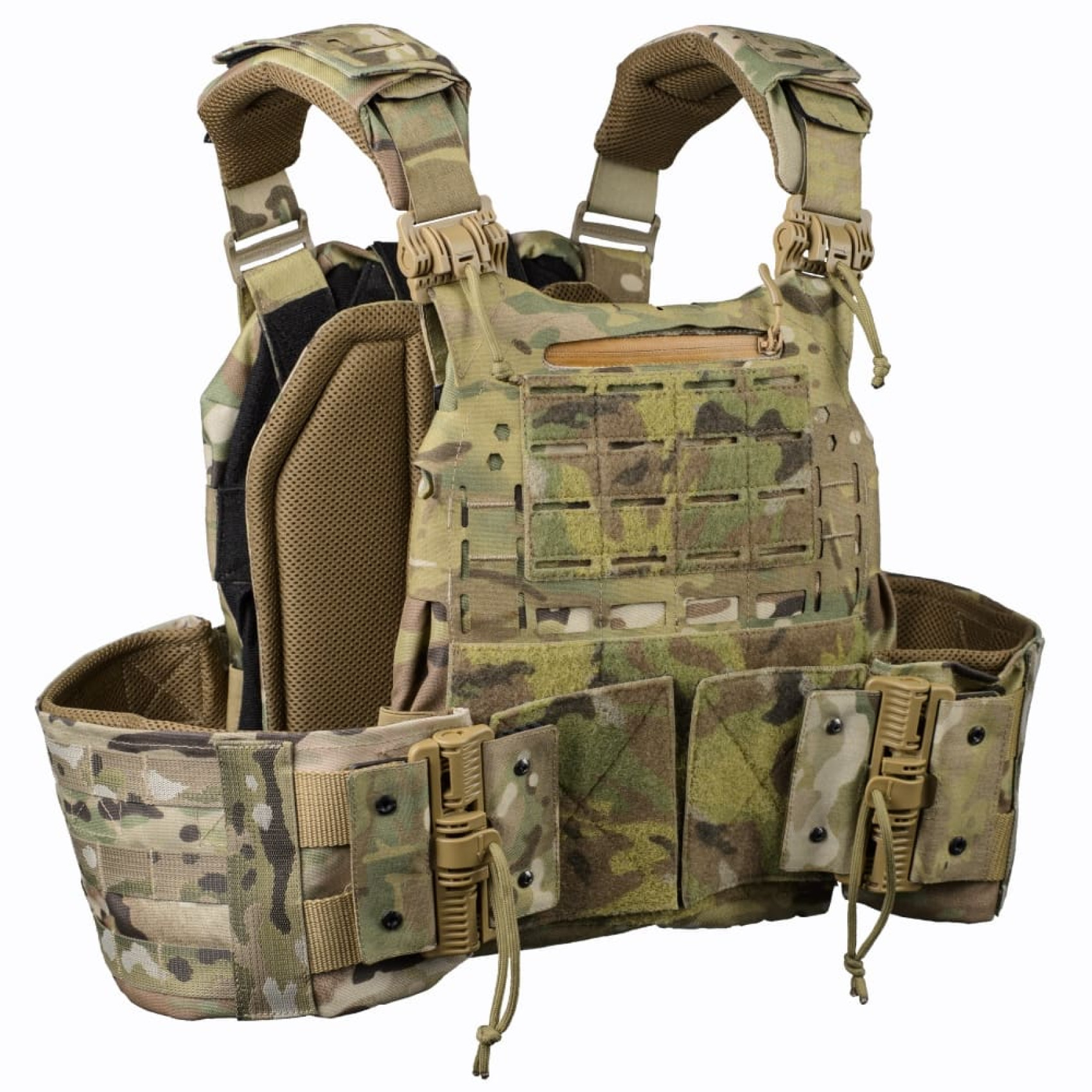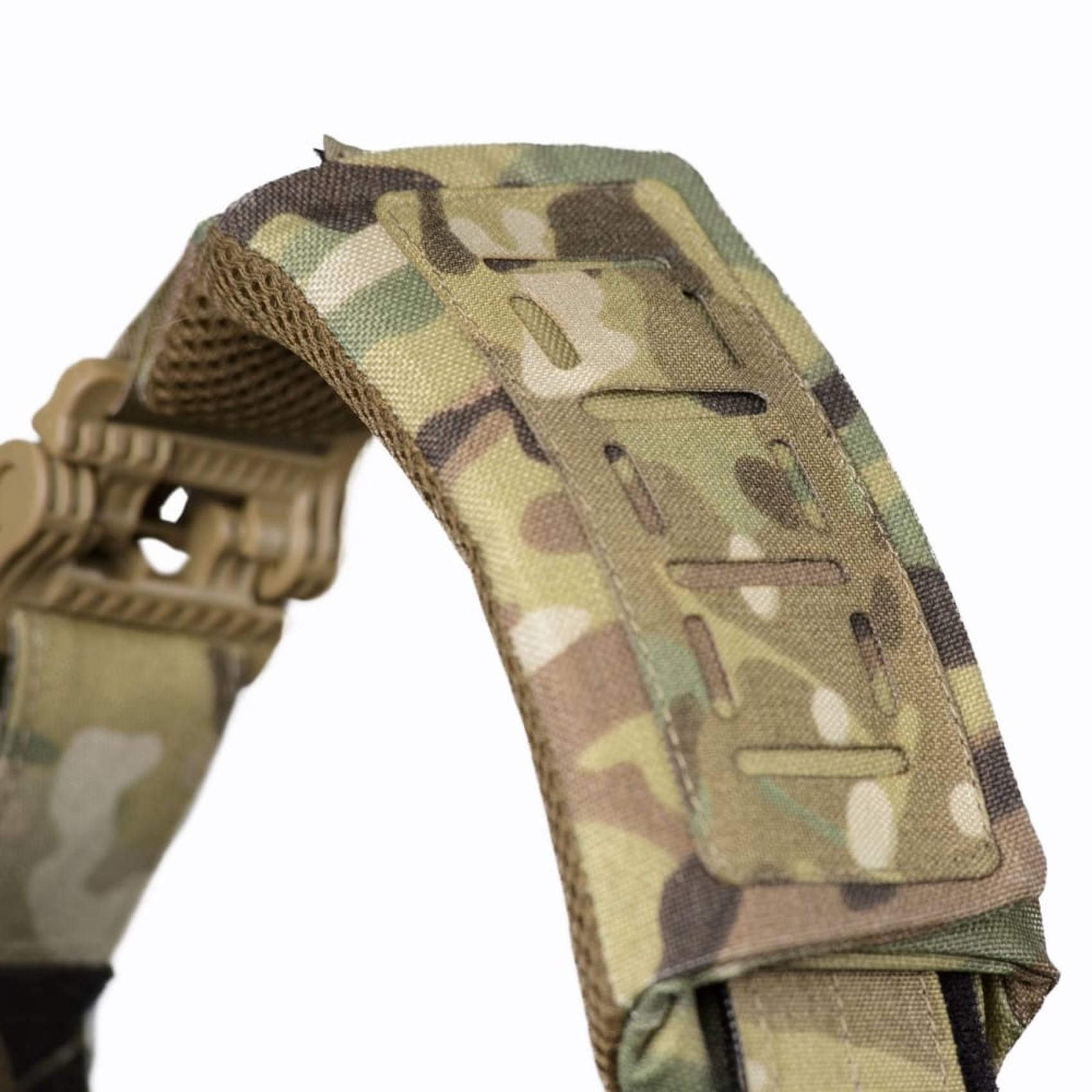 Задний чехол плитоноски также имеет сплошной Lasercut Molle интерфейс и полноразмерную ручку эвакуации из стропы Murdock Webbing.
