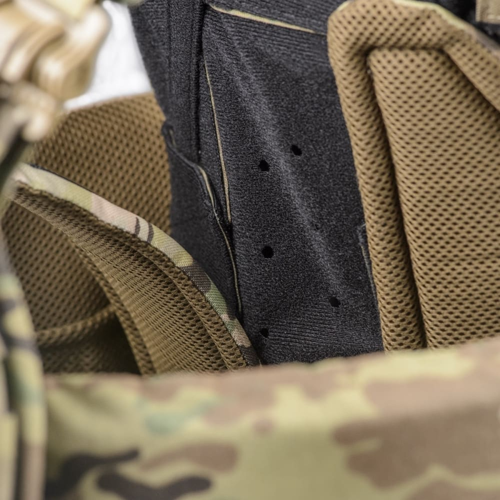 Внутренняя сторона чехла выполнена из Velcro ткани высокой плотности (более 370 г/м), с шестиугольными Lasercut отверстиями для лучшей вентиляции, и снижения инфракрасной сигнатуры корпуса. Благодаря такому решению, внутренние смягчители «подушки» являются съемными, что упрощает процедуру стирки и регулировки под соответствующий размер.