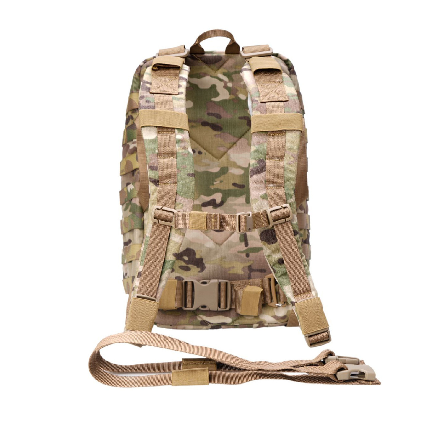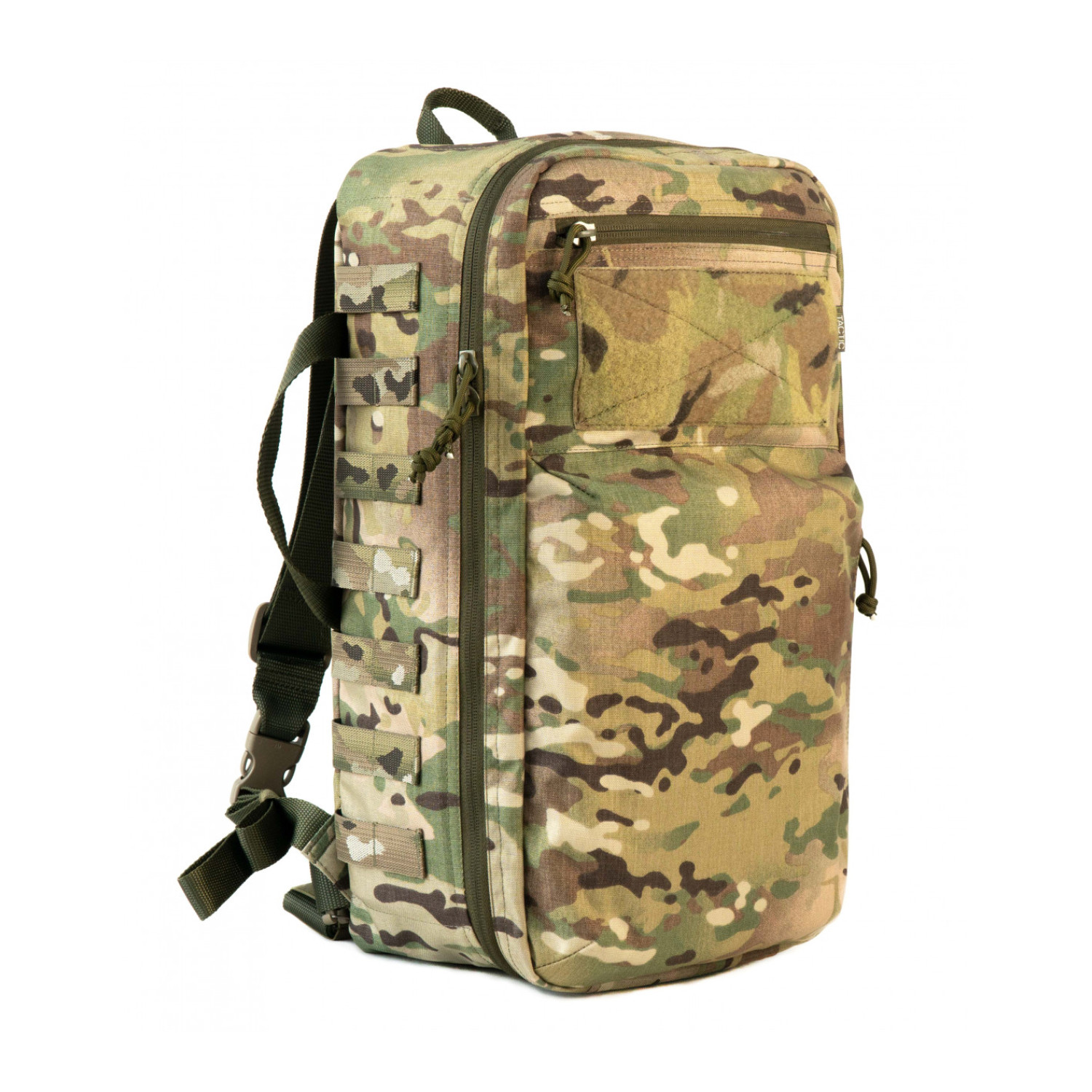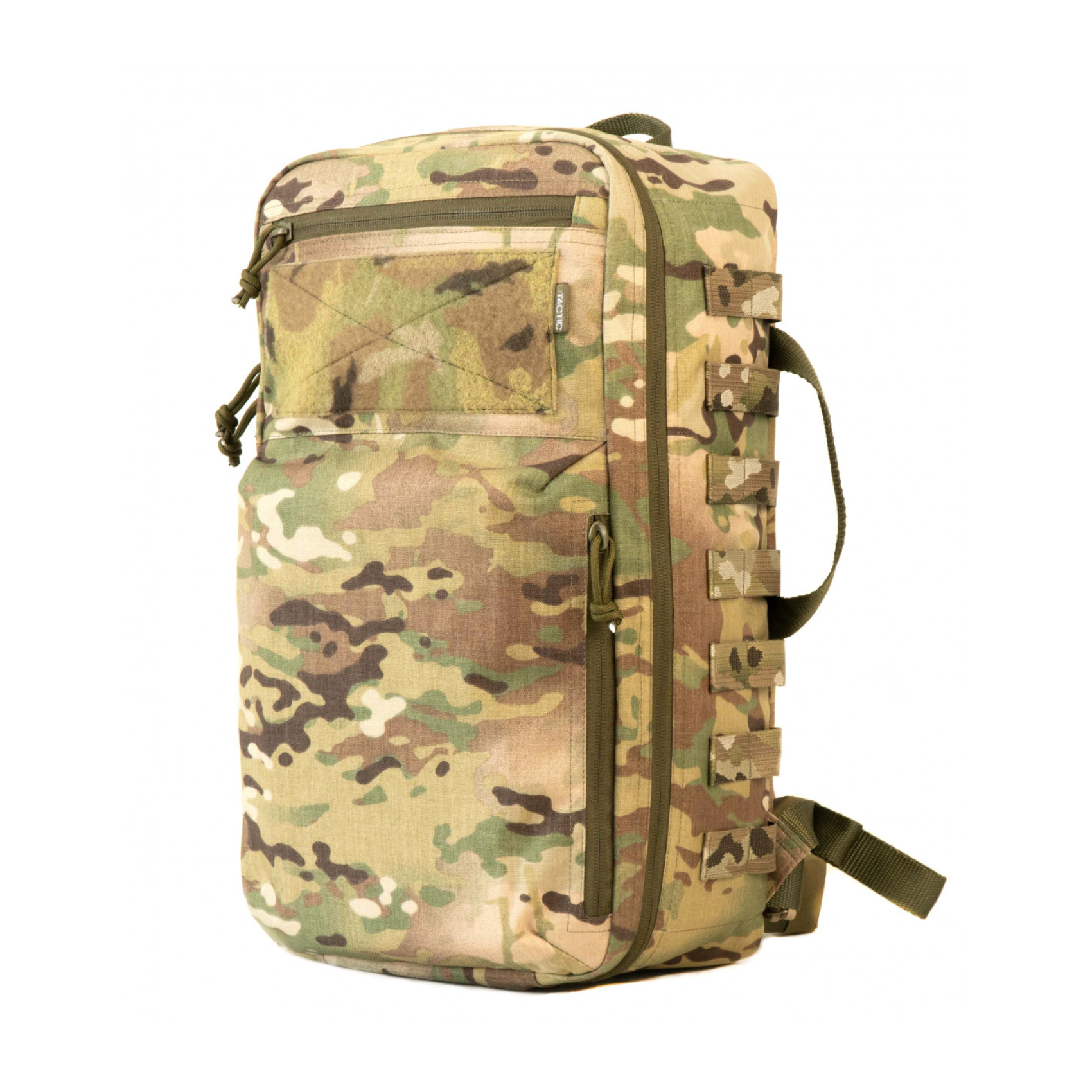 На внешних поверхностях боковых стенок и на нижней стенке выполнены MOLLE PALS панели для крепления дополнительного снаряжения.