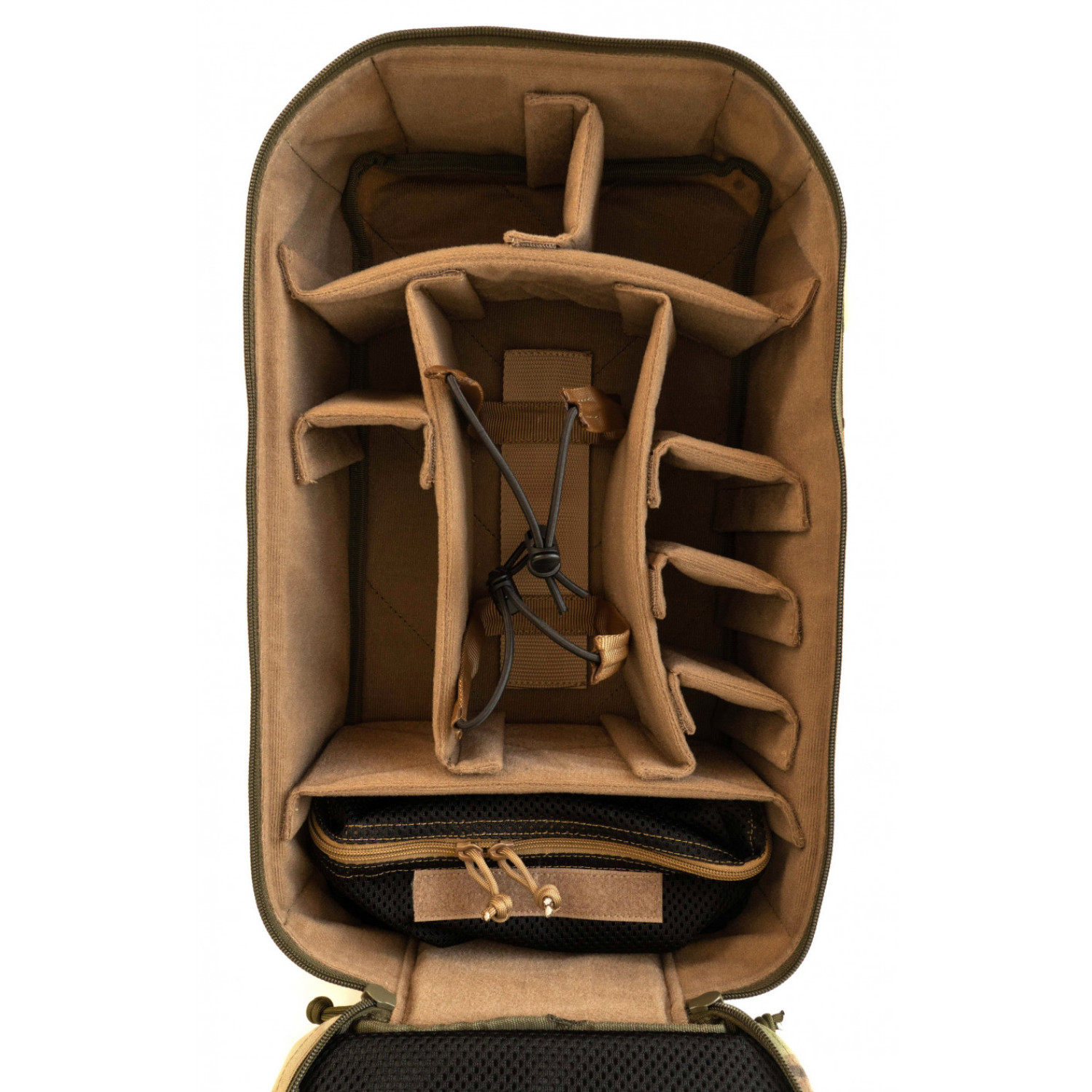 Рюкзак имеет основное отделение, которое можно разделить на нужные секции под размещение различных элементов оборудования.