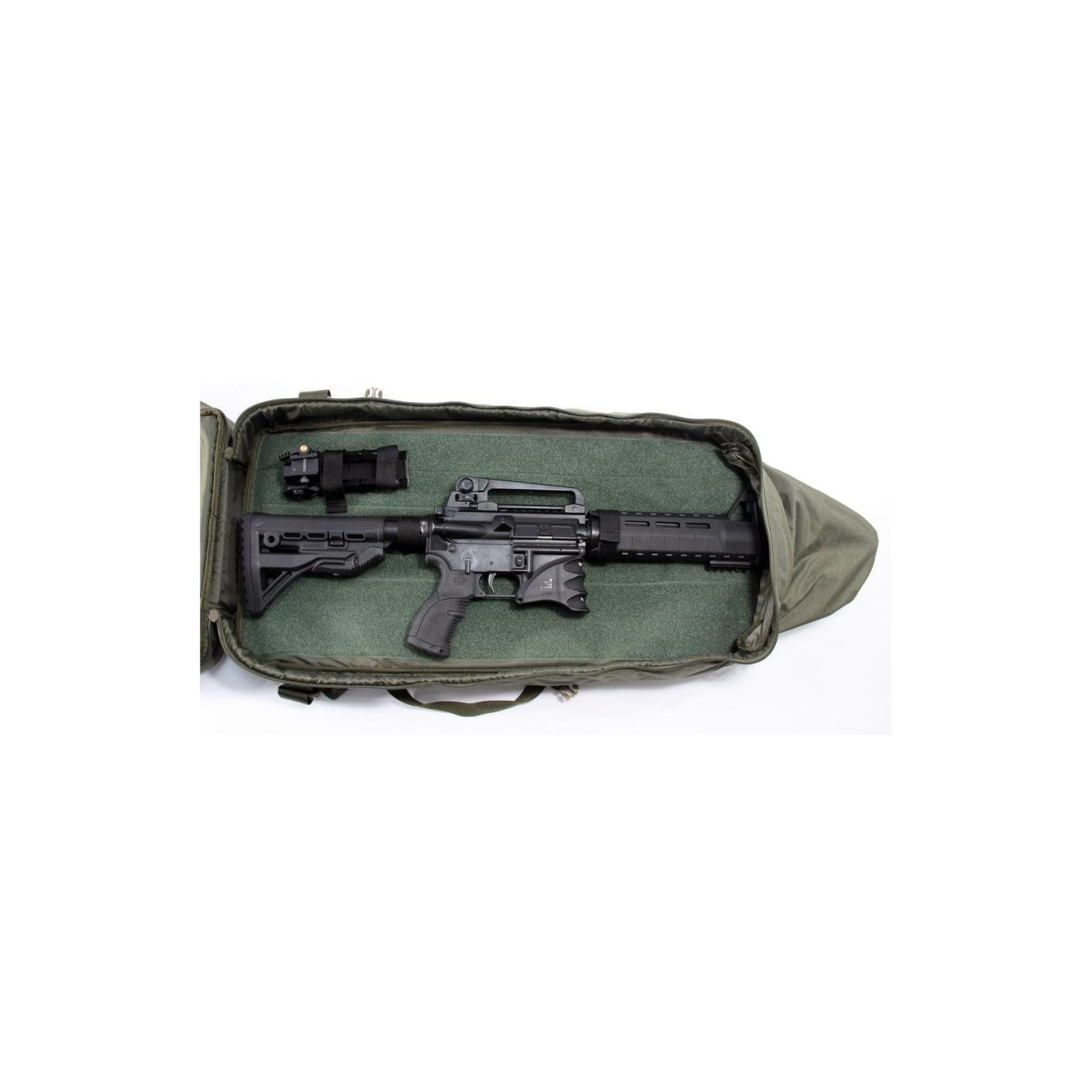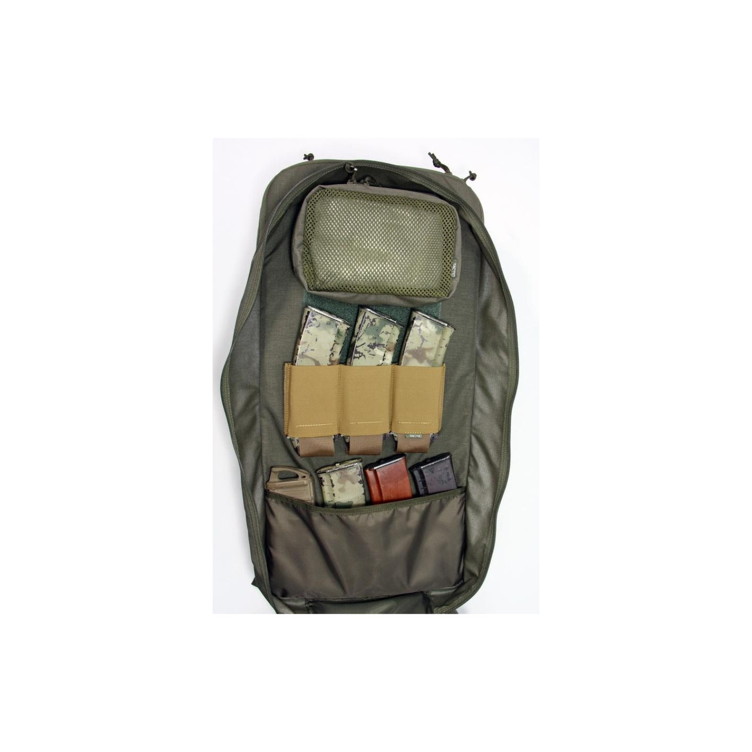 Carbine Bag имеет три отделения: основное отделение для оружия, среднее отделение для боекомплекта и личных вещей, внешний карман для инструмента и мелких вещей.