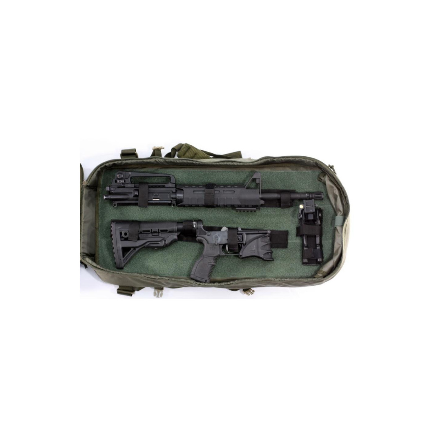 Основное отделение на молнии с двумя бегунками открывается на 180 градусов для удобного доступа. Велкро панель на задней внутренней стенке позволяет закрепить оружие в разобранном или собранном виде с помощью элементов крепления, которые идут в комплекте.