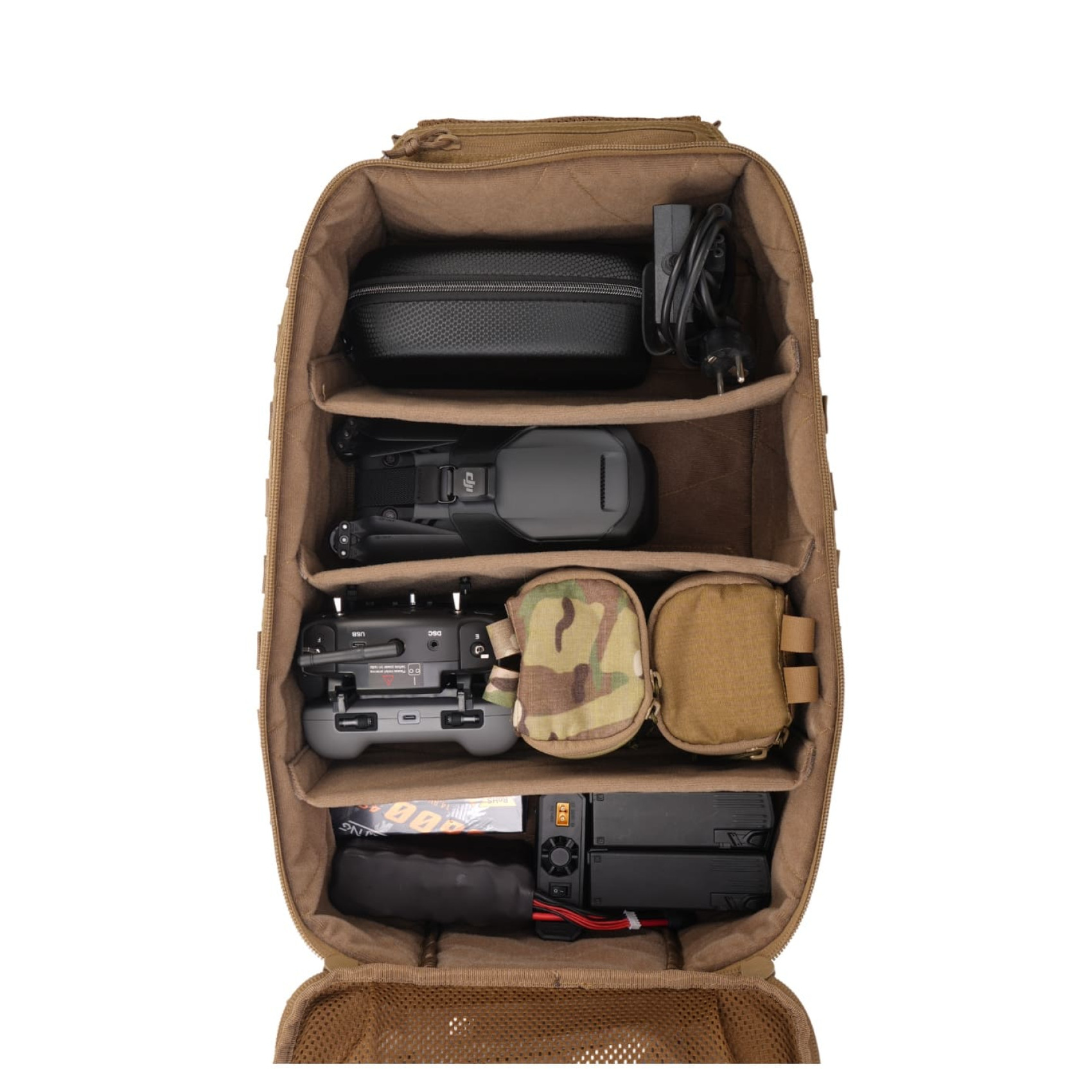 Рюкзак UTactic Maxi DronePack Койот - это расширенная версия UTactic DronePack. Он разработан для переноски одновременно нескольких дронов малого и среднего размеров типа DJI, Autel или дополнительного снаряжения для ваших птичек. Наш рюкзак представляет собой более удобную альтернативу стандартным сумкам, кейсам при выполнении боевых задач. Также может использоваться для переноски другого оборудования: видео камер, устройств для наблюдения и другого электронного оборудования. При необходимости рюкзак может служить кейсом для зарядных станций: его размеры позволяют вместить два EcoFlow.