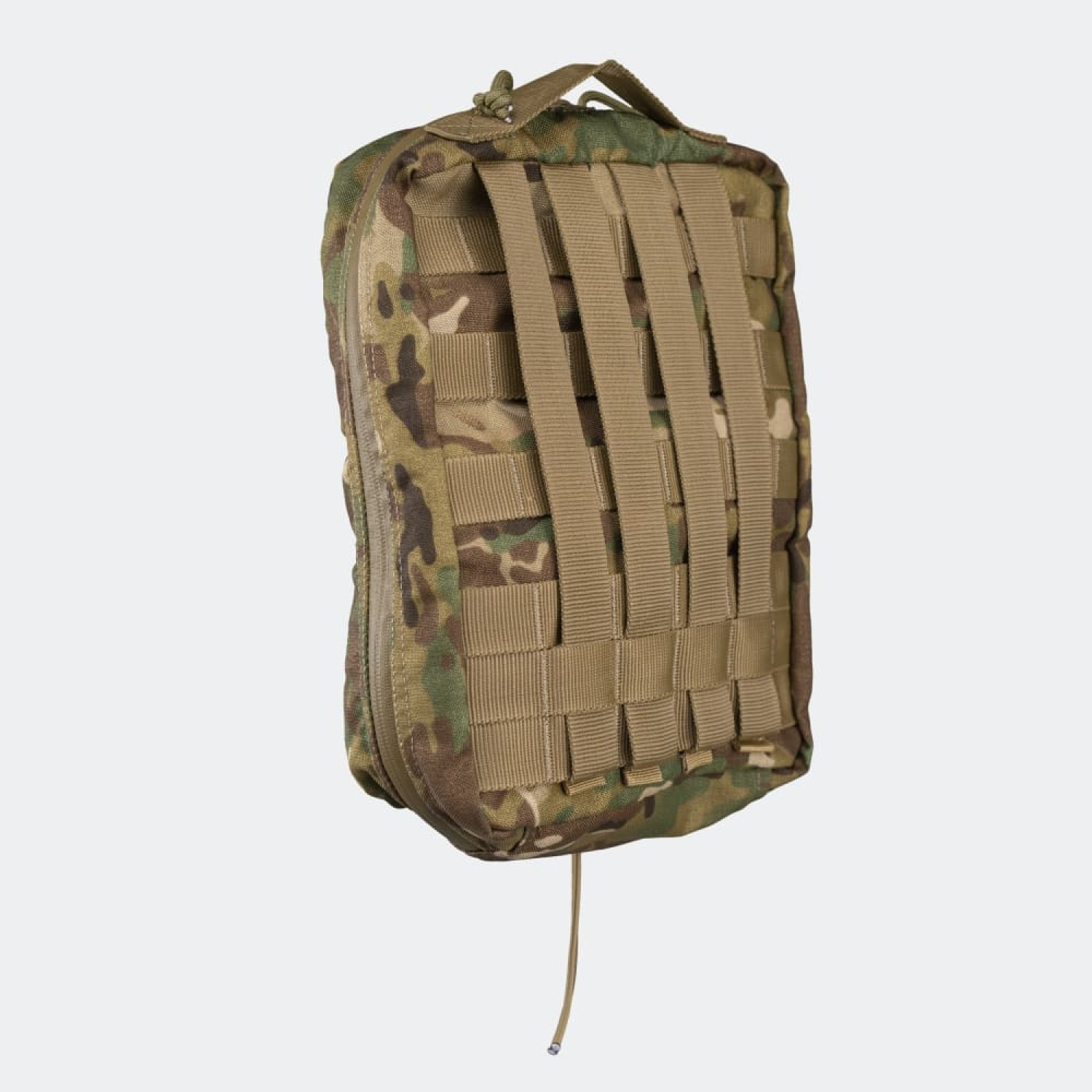 Штурмовой рюкзак можно крепить к любому MOLLE совместимому снаряжению, такому как плитоноски, рюкзаки и т.д. Для этого на задней панели сумки расположены четыре MOLLE-стропы. Данная конструкция обеспечивает максимальное прилегание подсумка к спине и не увеличивает силуэт.