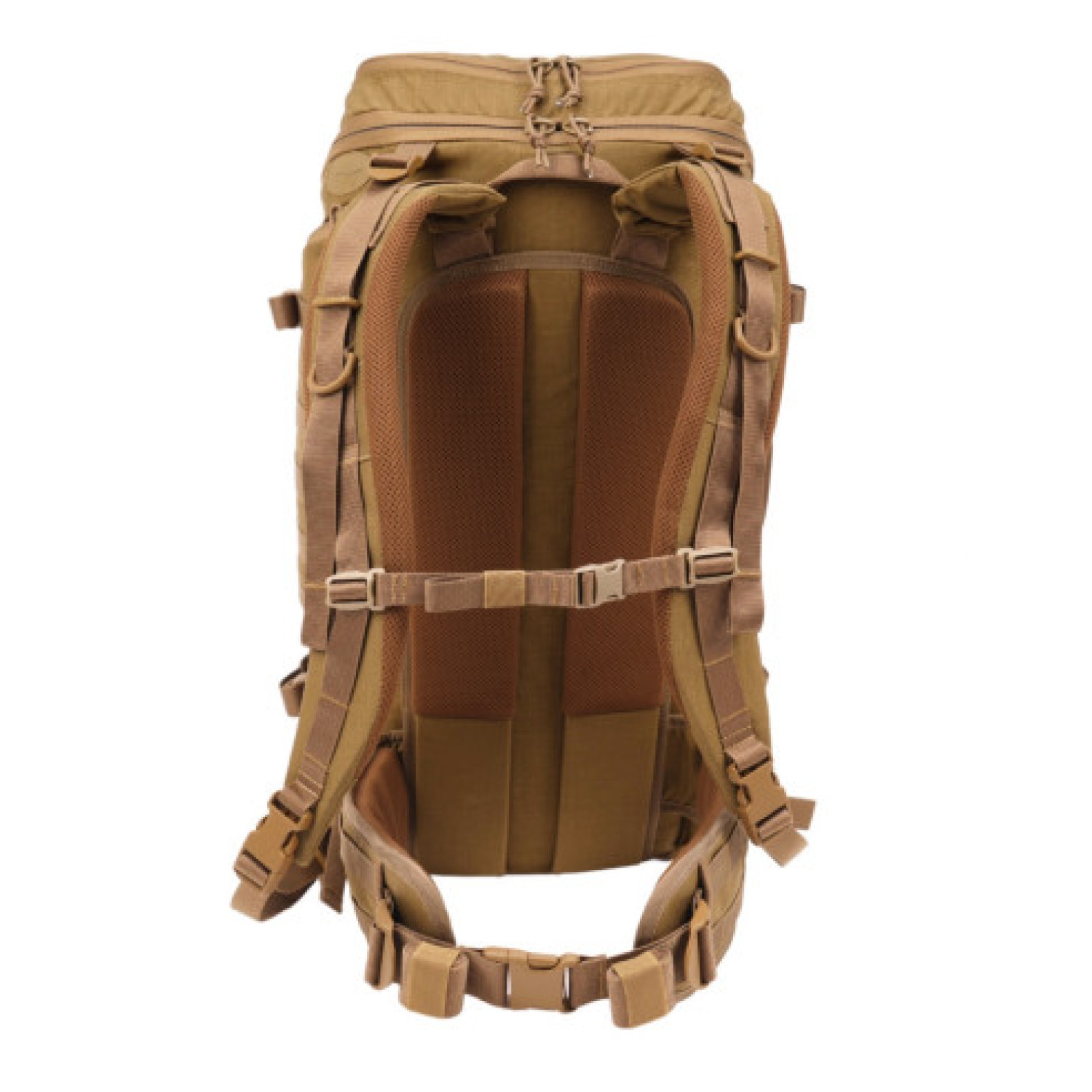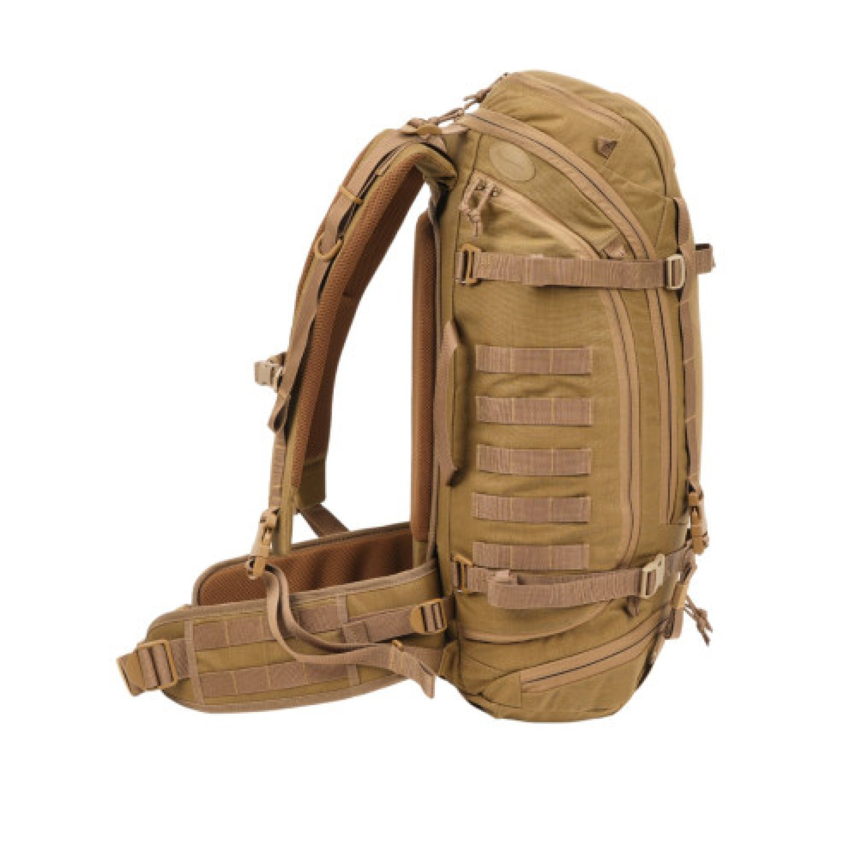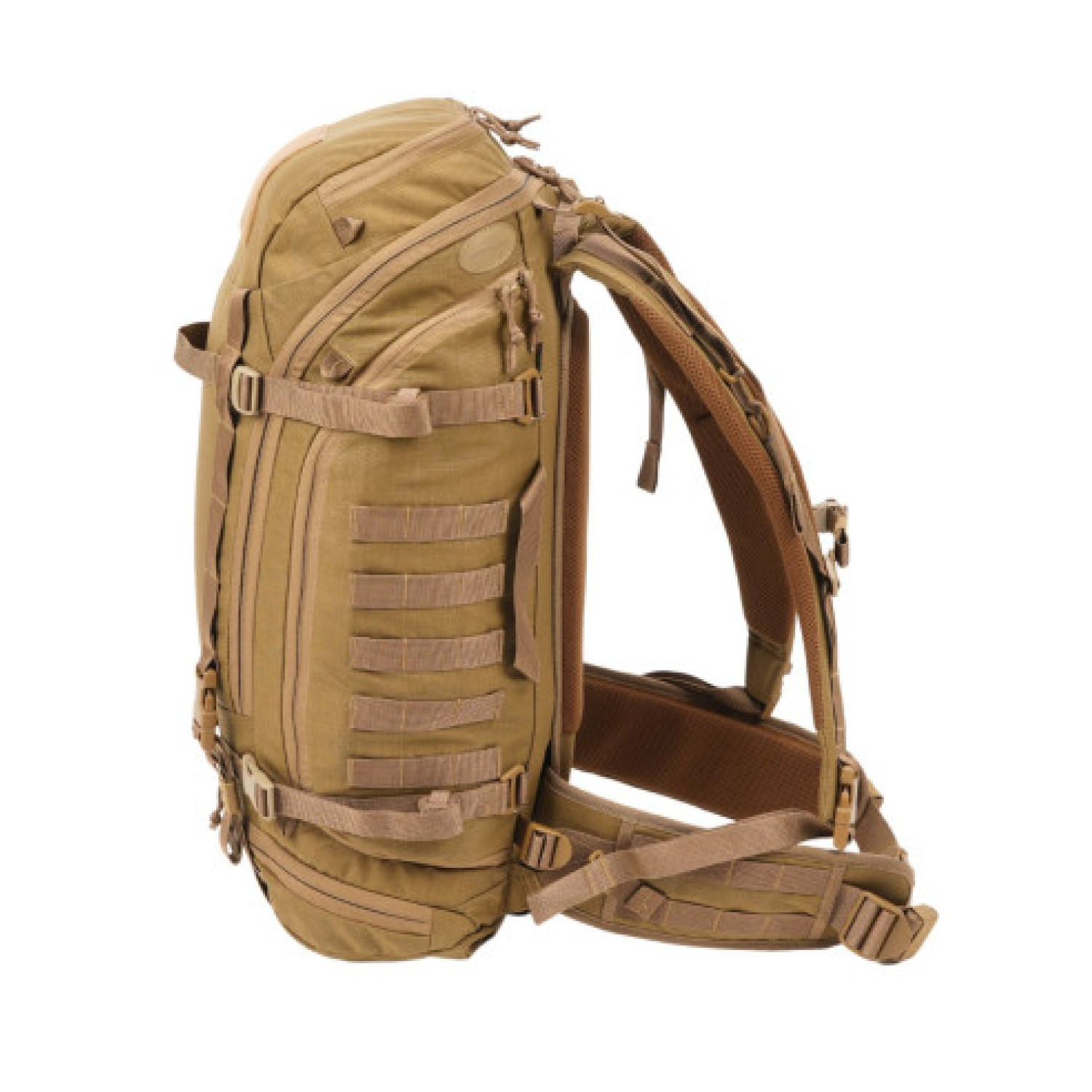 У рюкзака одно основное отделение и два больших боковых кармана, которые имеют выходы для шланга гидратора, систему Molle на внешней стороне и дополнительные сетчатые карманы внутри. Верхний карман с Velcro для крепления опознавательных знаков.