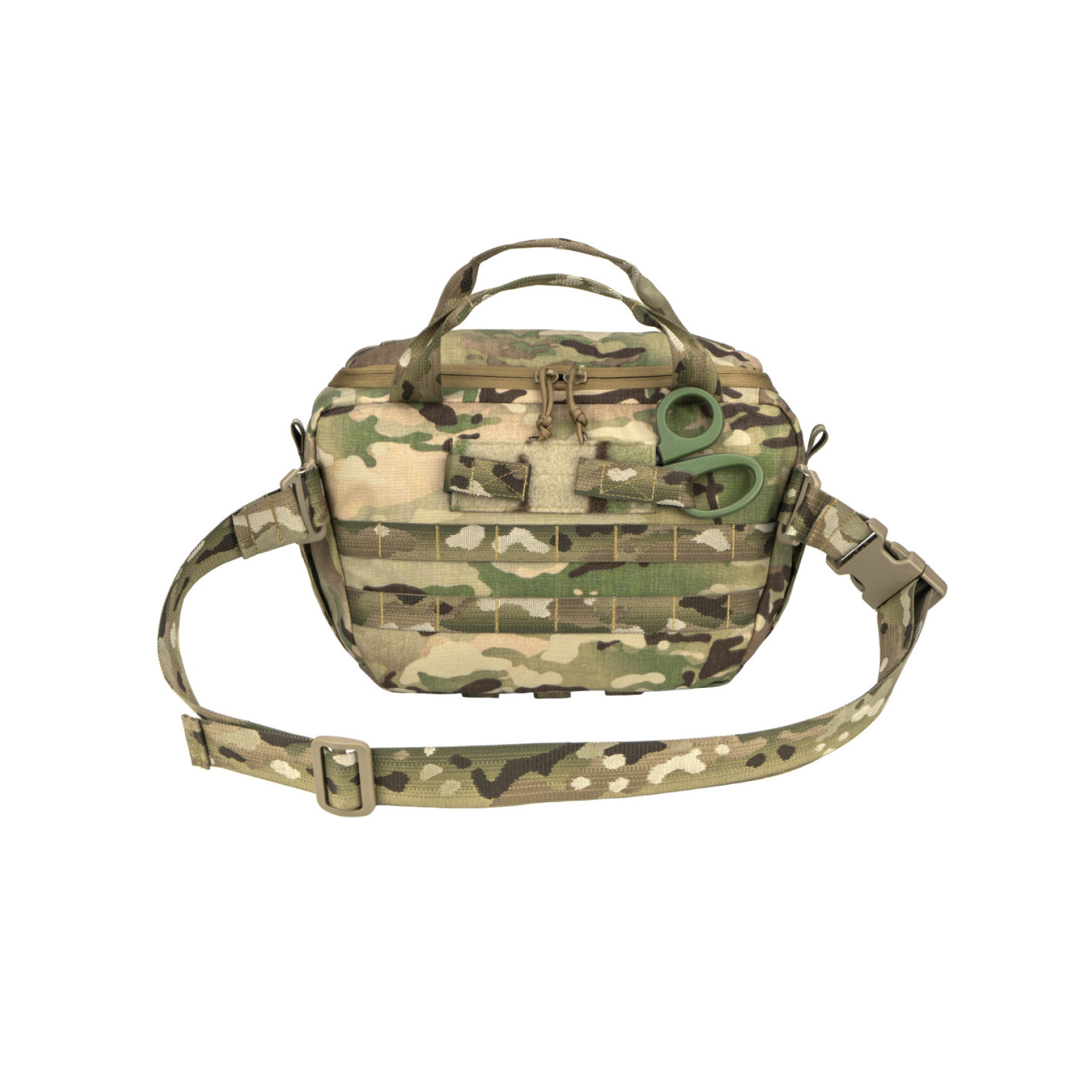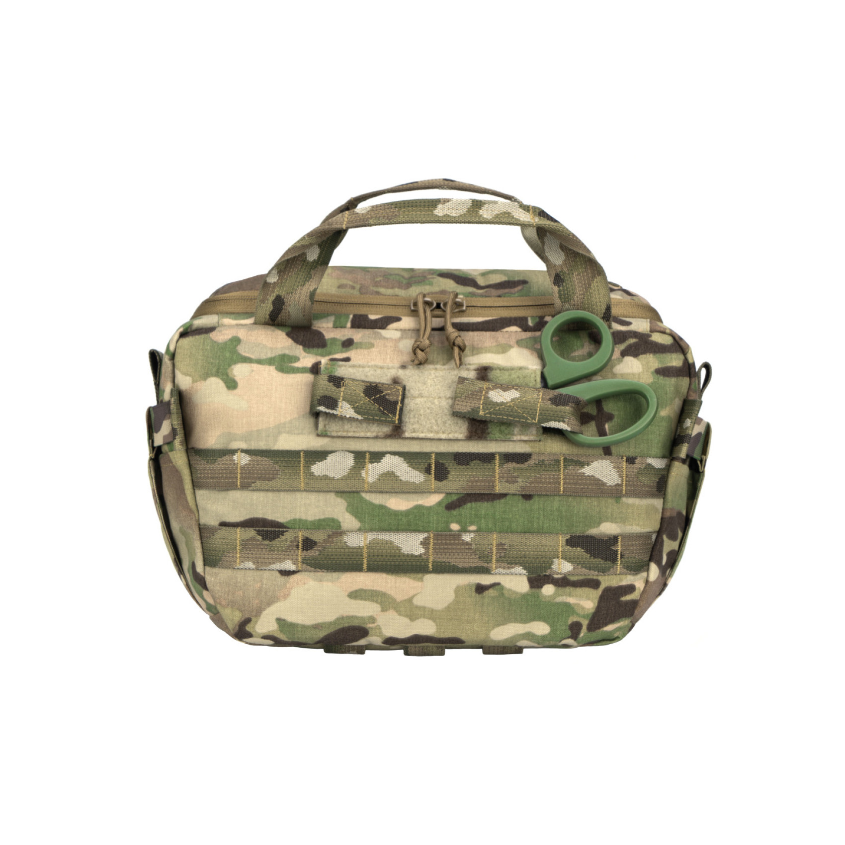 Оперативная медицинская сумка UTactic VOMB Мультикам совместная разработка компании UTactic и Genetics of survival project. Сумка разработана для оперативного реагирования на различные медицинские сценарии. Предусматривает легкий и быстрый доступ ко всем необходимым средствам, в соответствии с алгоритмом оказания помощи, где наружу вынесены крепления и карманы для средств остановки критического кровотечения, а также карманы для менеджмента дыхательных путей и дыхания.