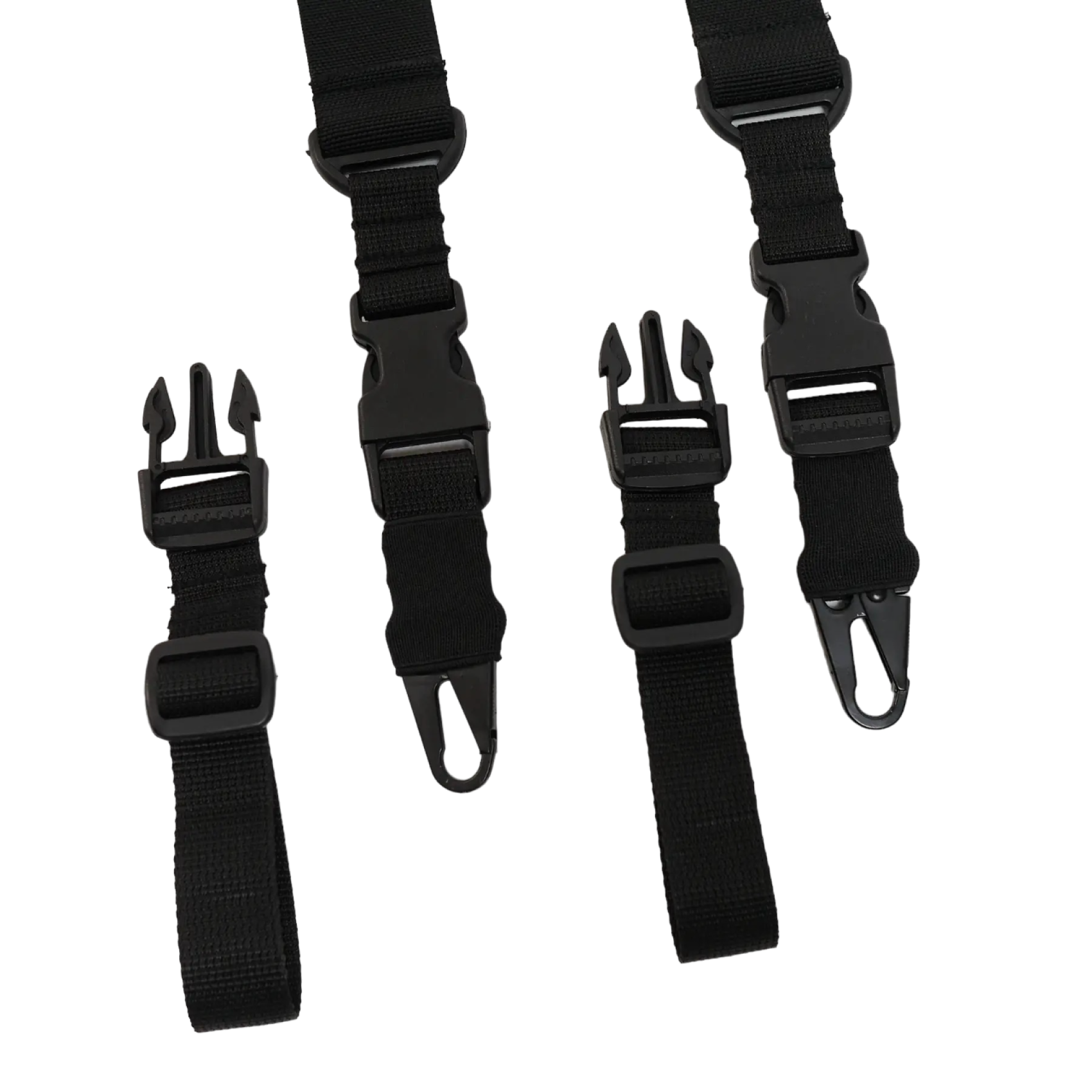 - Ремень фиксируется в двух точках с помощью металлических карабинов HK Snap Hook, которые имеют, съемные предохранители из резинки. Это снижает вероятность дребезга и добавляют удобства.