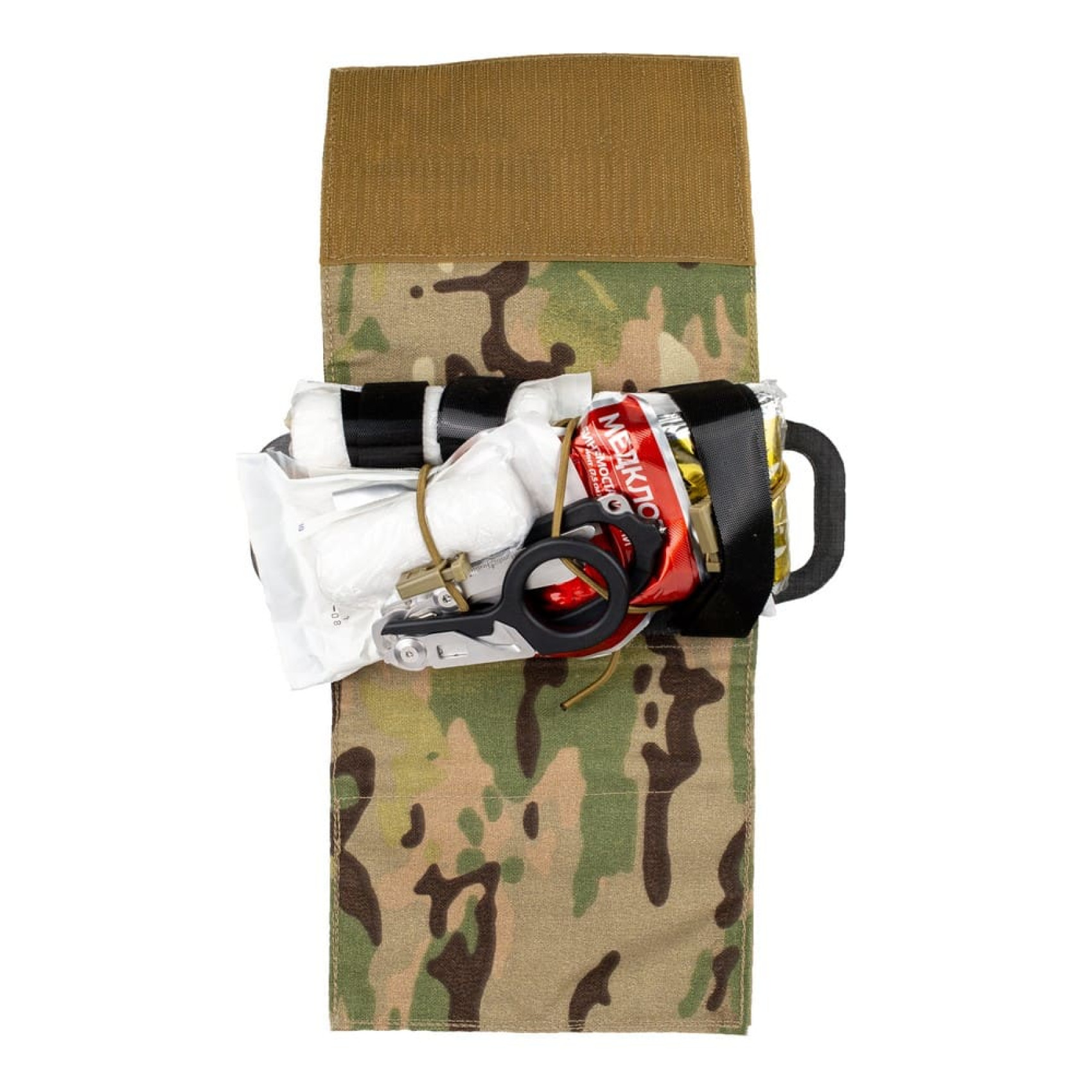Отрывная аптечка IFAK DEFua Aesculapius Мультикам - низкопрофильный медицинский подсумок полуоткрытого типа. Позволяет зафиксировать полноценный набор предметов IFAK под рукой в быстром доступе.