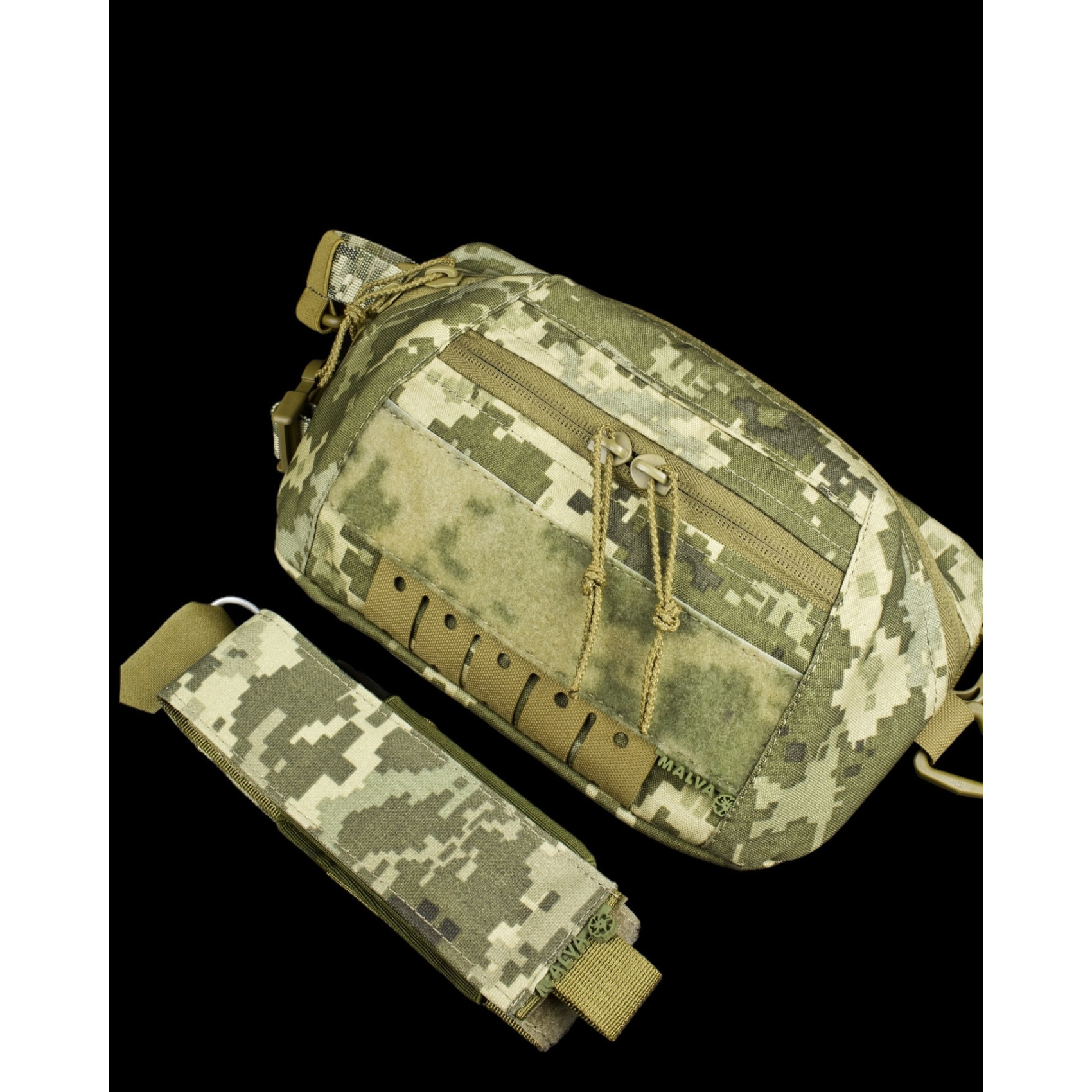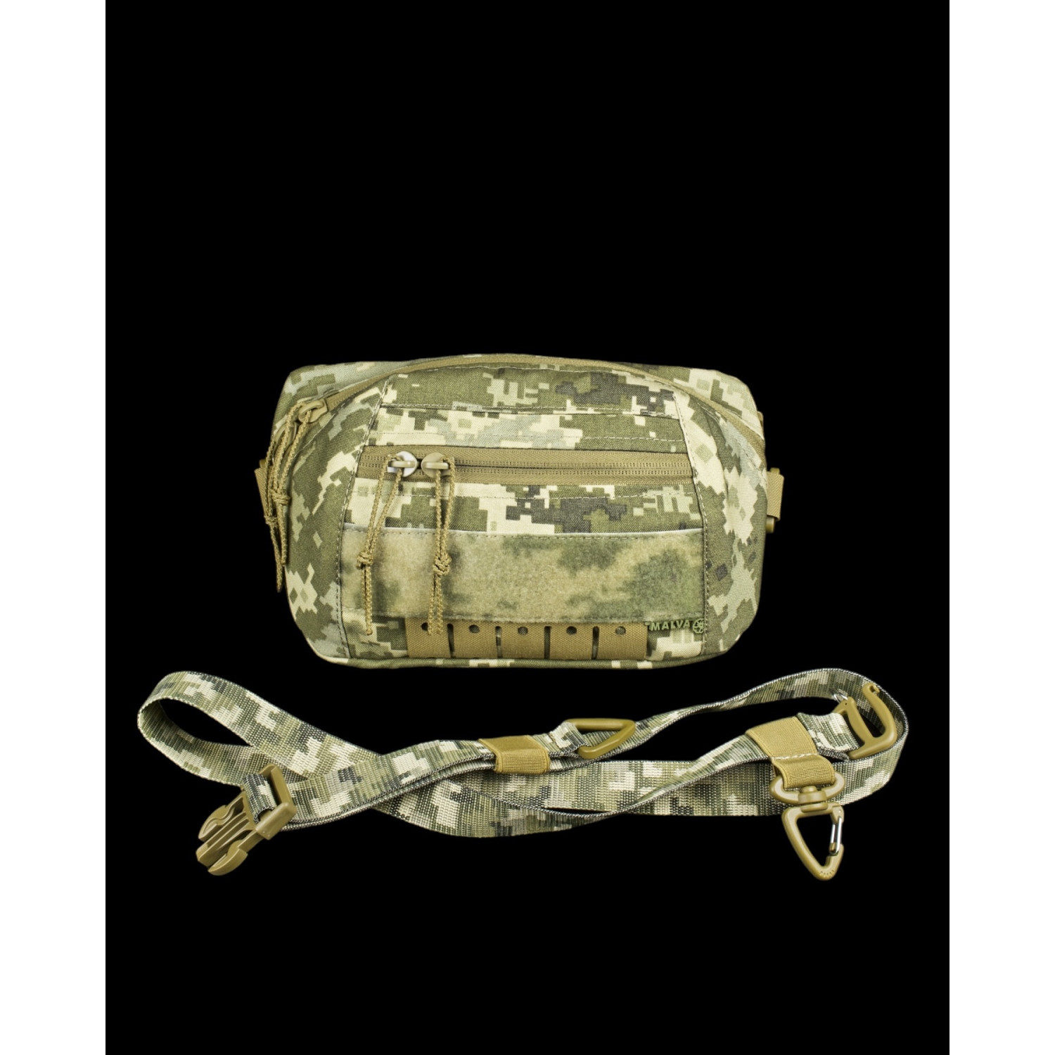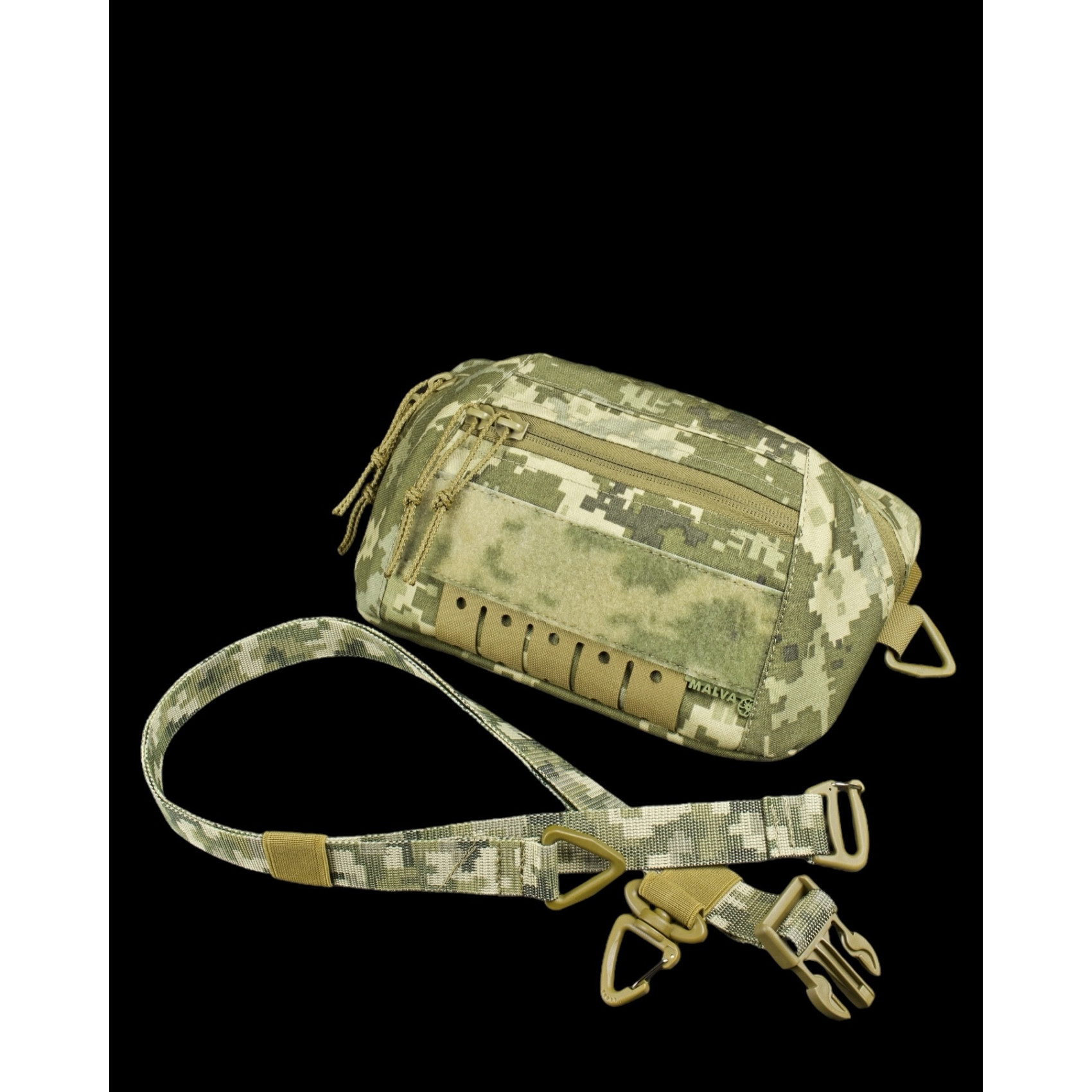 Ремень сумки «Бананка/напашник Malva Recon ММ-14 Пиксель» легко регулируется по размеру, быстро крепится и отсоединяется, а также оснащен дополнительным карабином и кольцом.