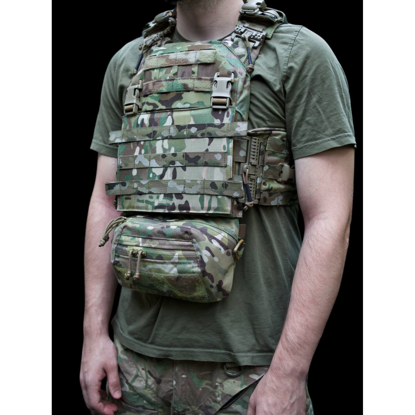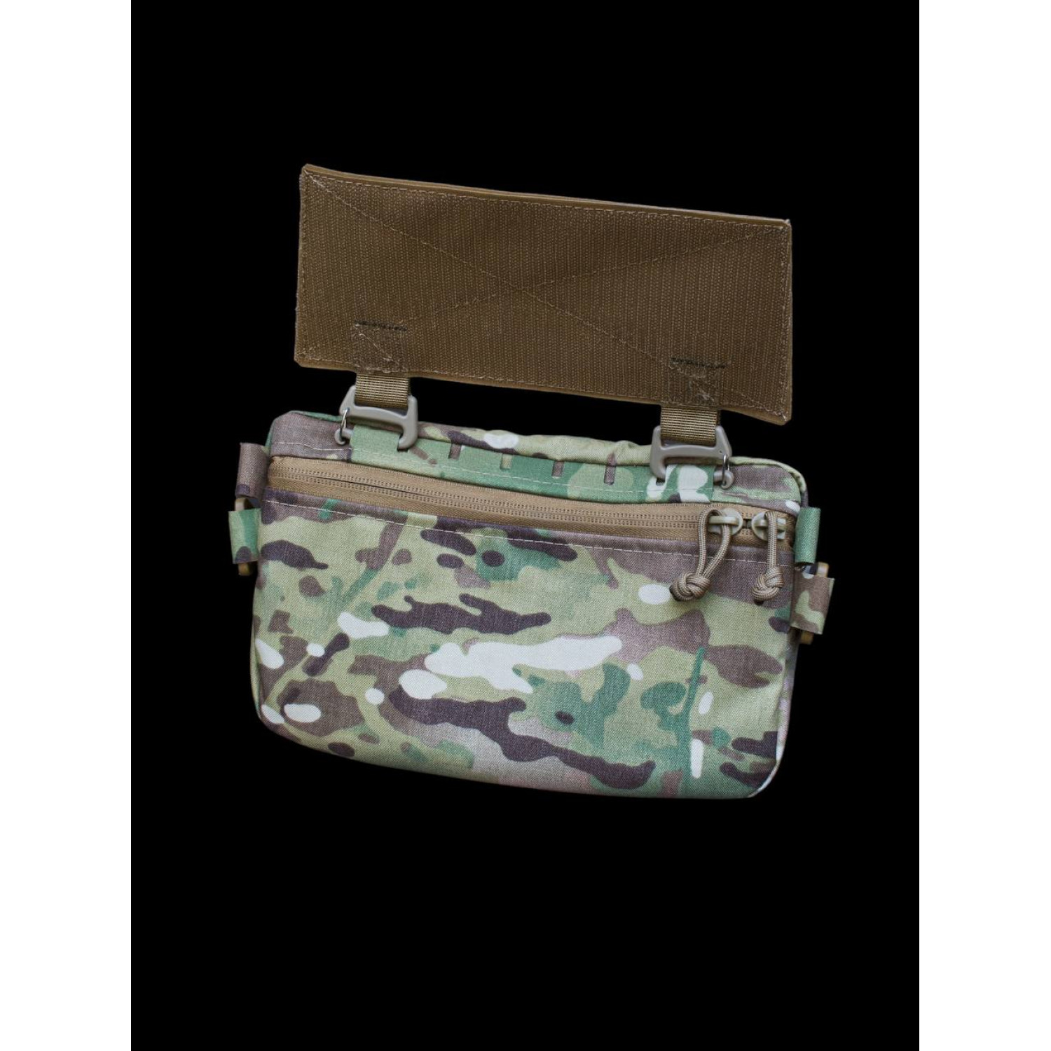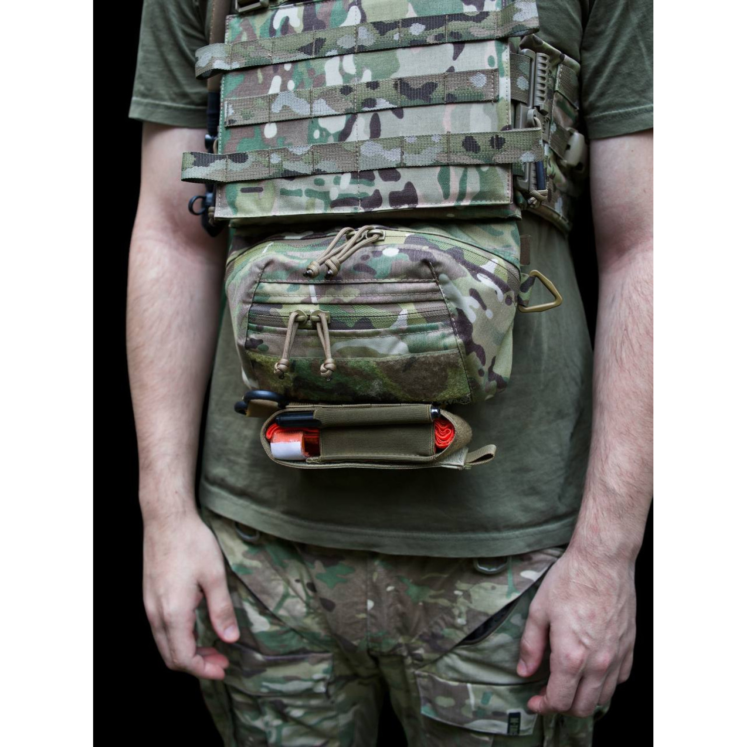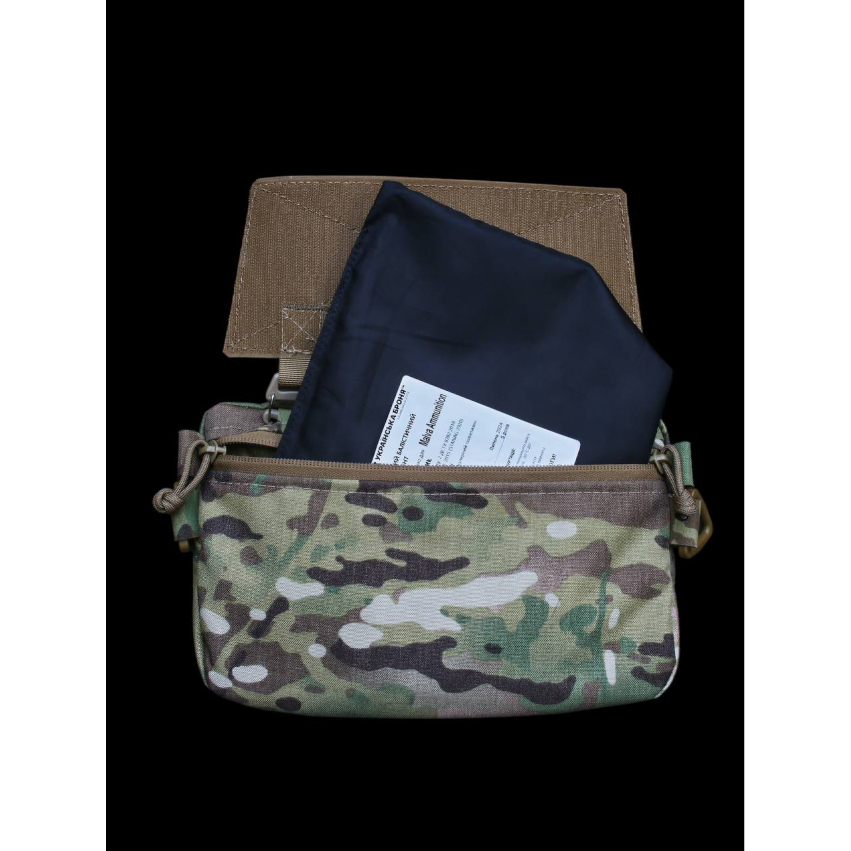 Основное отделение сумки оснащено внутренними карманами на одной из стенок и велкро панелью на другой, что позволяет закреплять дополнительные органайзеры или кобуру. Фасад сумки оснащен карманом, велкро панелью и лазерной молле панелью, позволяющей прикрепить подсумок для турникета. На обратной стороне имеется скрытый карман, который может использоваться для размещения баллистического пакета.