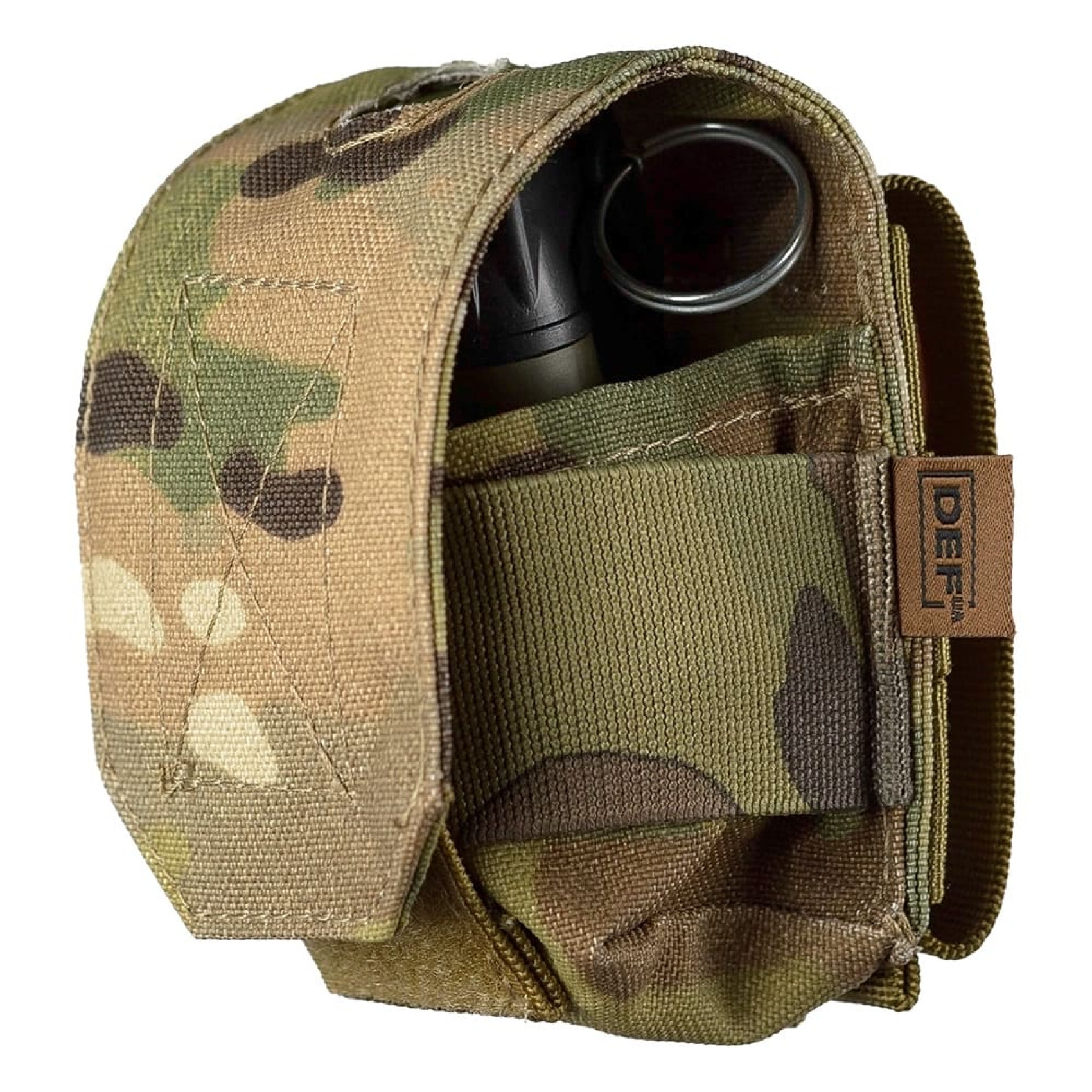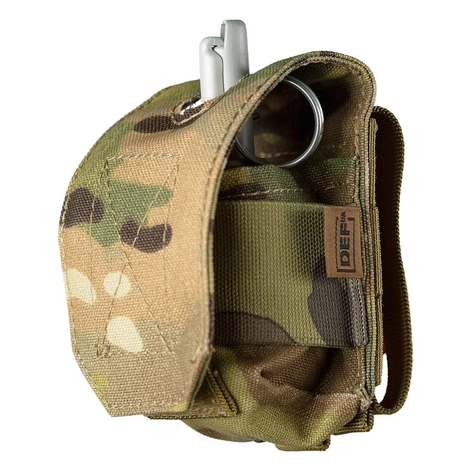 Подсумок для гранаты DEFua Mark 3 Мультикам подойдет для всех гранат, которые сейчас поставляются в ВСУ от Ф-1 и РГД-5 до м67, м50 и специализированных дымовых/светошумовых.
