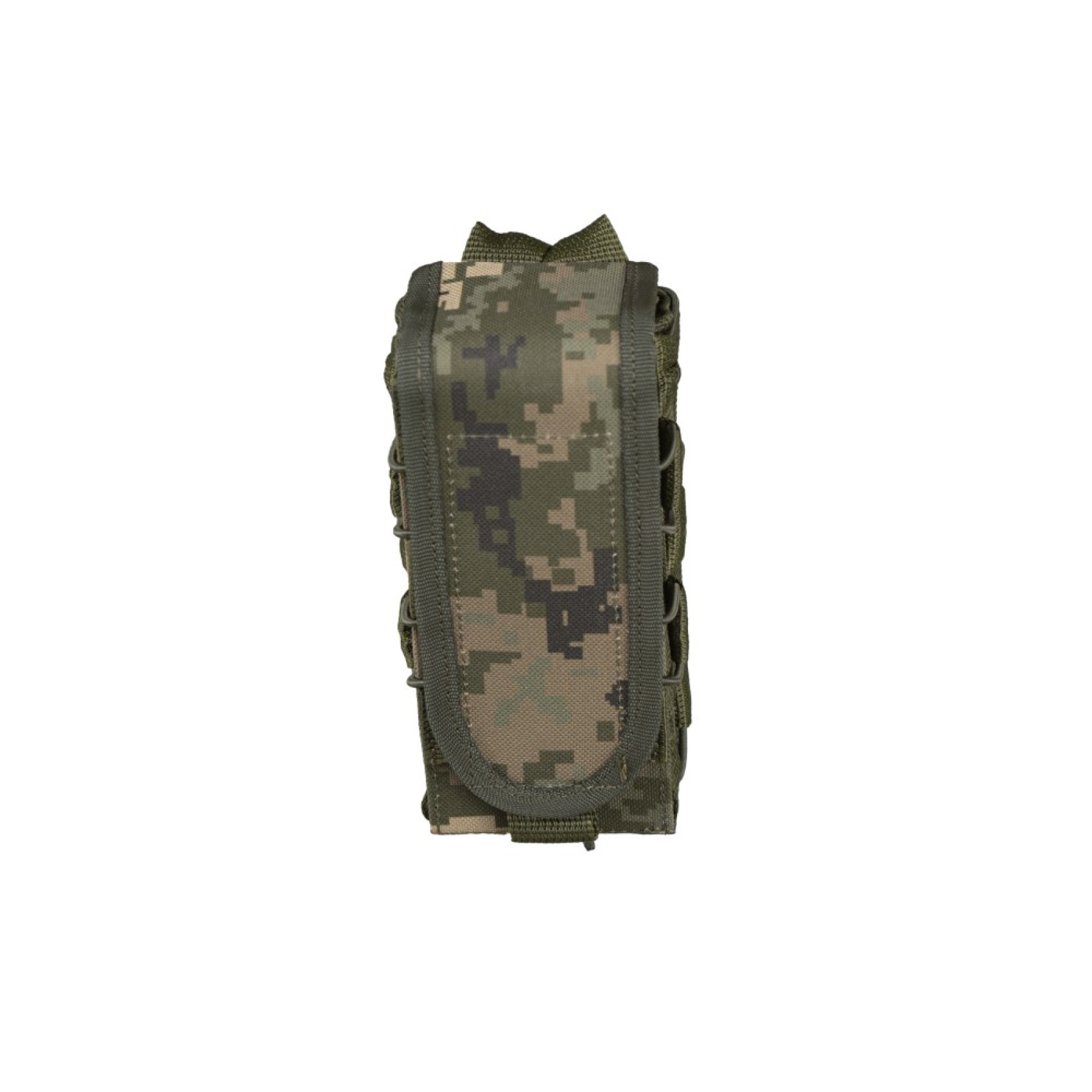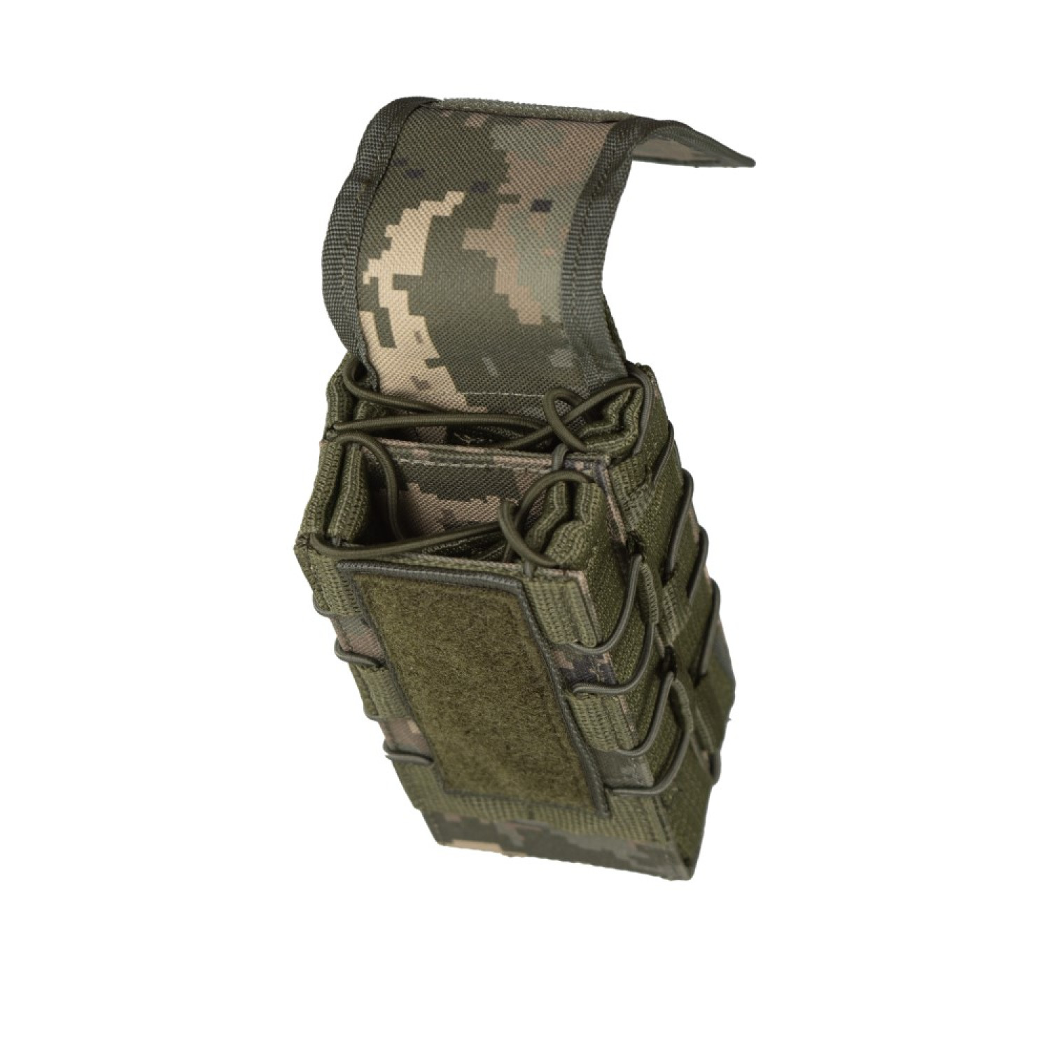Подсумок двойной для магазинов РПК / AK DEFua Трансформер ММ-14 Пиксель используется для двух магазинов РПК и РПК-74 (РПК-74М) и АК, калибров 5,45 или 7,62 мм. Размеры подсумка позволяют зафиксировать магазины, и удобно извлечь их для перезарядки, без необходимости дополнительных перехватов. Конструкция позволяет надежно зафиксировать 2 магазина, исключая случайное их выпадение при перемещении лежа, и тому подобное. Также возможно использование в открытом состоянии для увеличения скорости перезарядки.