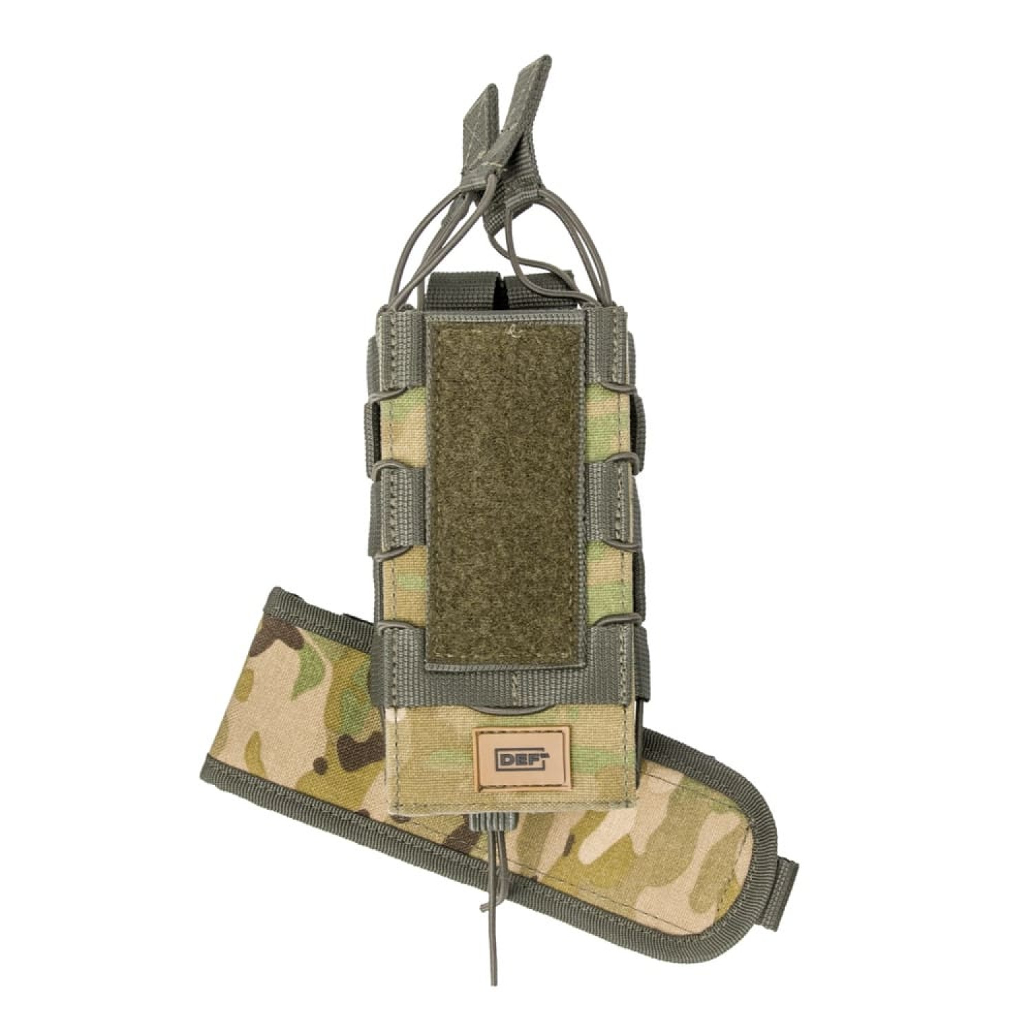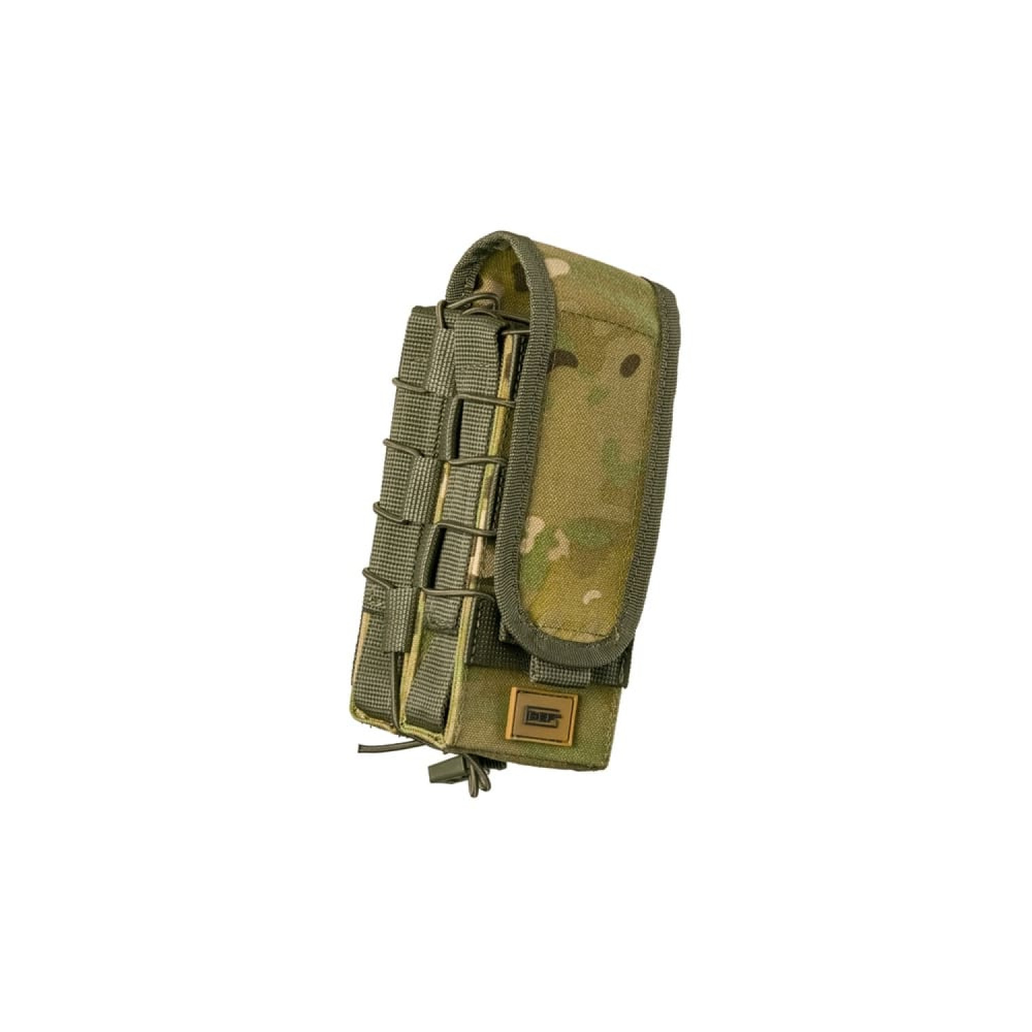 Подсумок двойной для магазинов РПК / AK DEFua Трансформер Мультикам используется для двух магазинов РПК и РПК-74 (РПК-74М) и АК, калибров 5,45 или 7,62 мм. Размеры подсумка позволяют зафиксировать магазины, и удобно извлечь их для перезарядки, без необходимости дополнительных перехватов. Конструкция позволяет надежно зафиксировать 2 магазина, исключая случайное их выпадение при перемещении лежа, и тому подобное. Также возможно использование в открытом состоянии для увеличения скорости перезарядки.