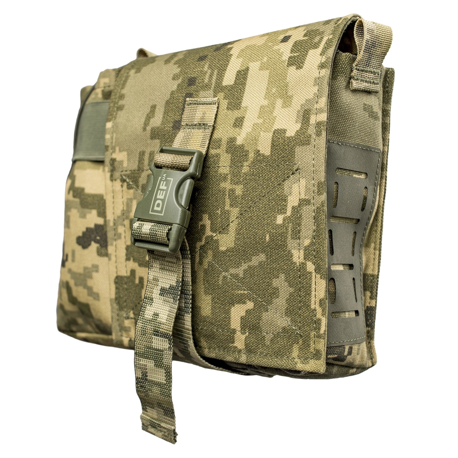 Подсумок сухарный для сухпайков/коробов DEFua Стандарт XL ММ-14 Пиксель (вмещает полноразмерный короб на 200 патронов для пулеметов M240/M249, или несколько магазинов), бутылки (фляжки для воды) или портативных бригадных радиостанций вместе с дополнительным питанием.