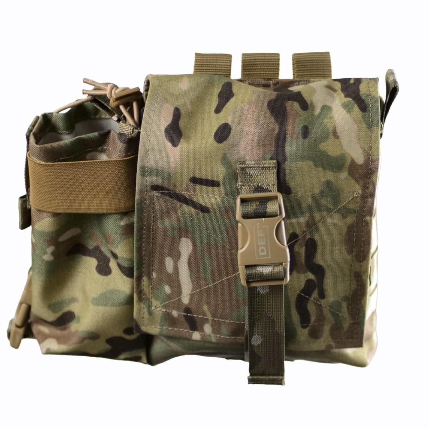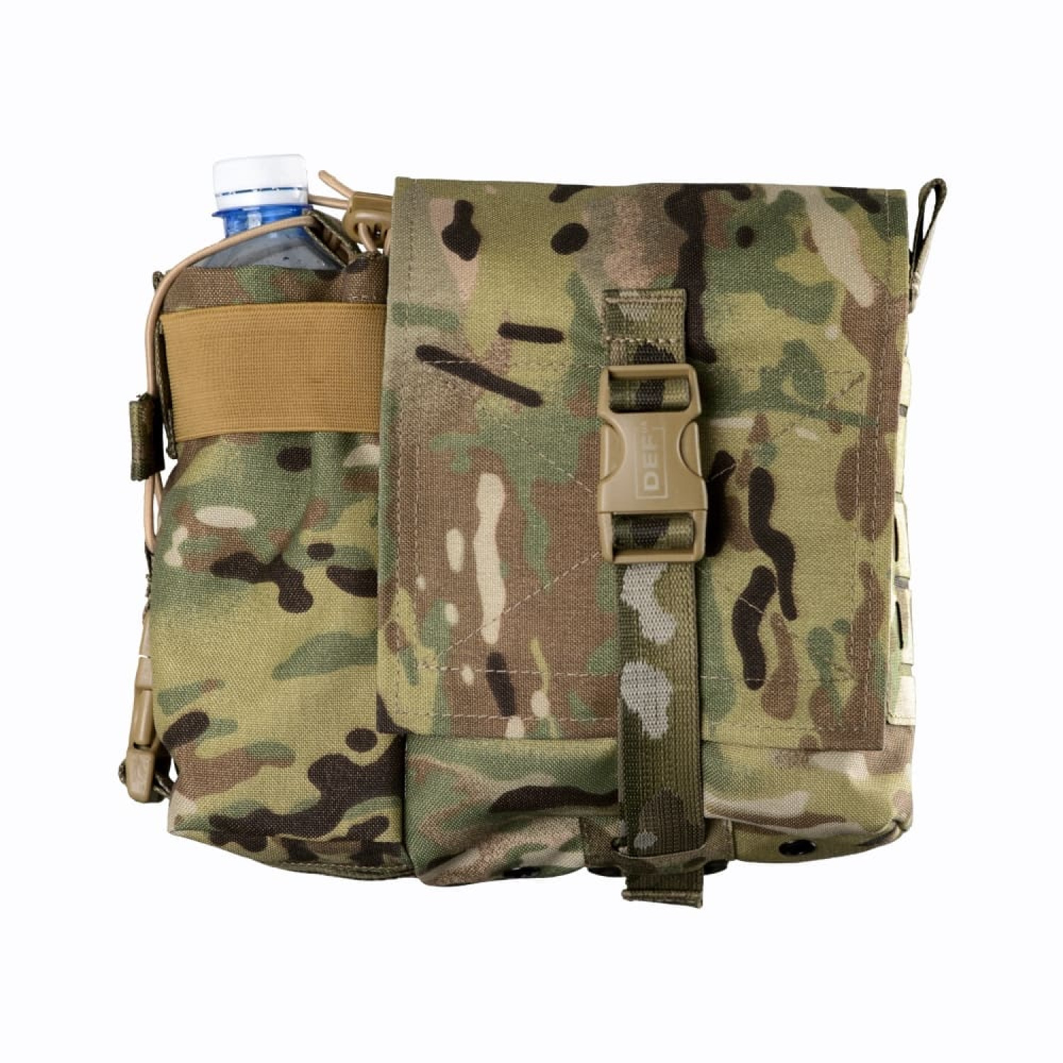 Подсумок сухарный для сухпайков/коробов DEFua Стандарт XL Мультикам (вмещает полноразмерный короб на 200 патронов для пулеметов M240/M249, или несколько магазинов), бутылки (фляжки для воды) или портативных бригадных радиостанций вместе с дополнительным питанием.