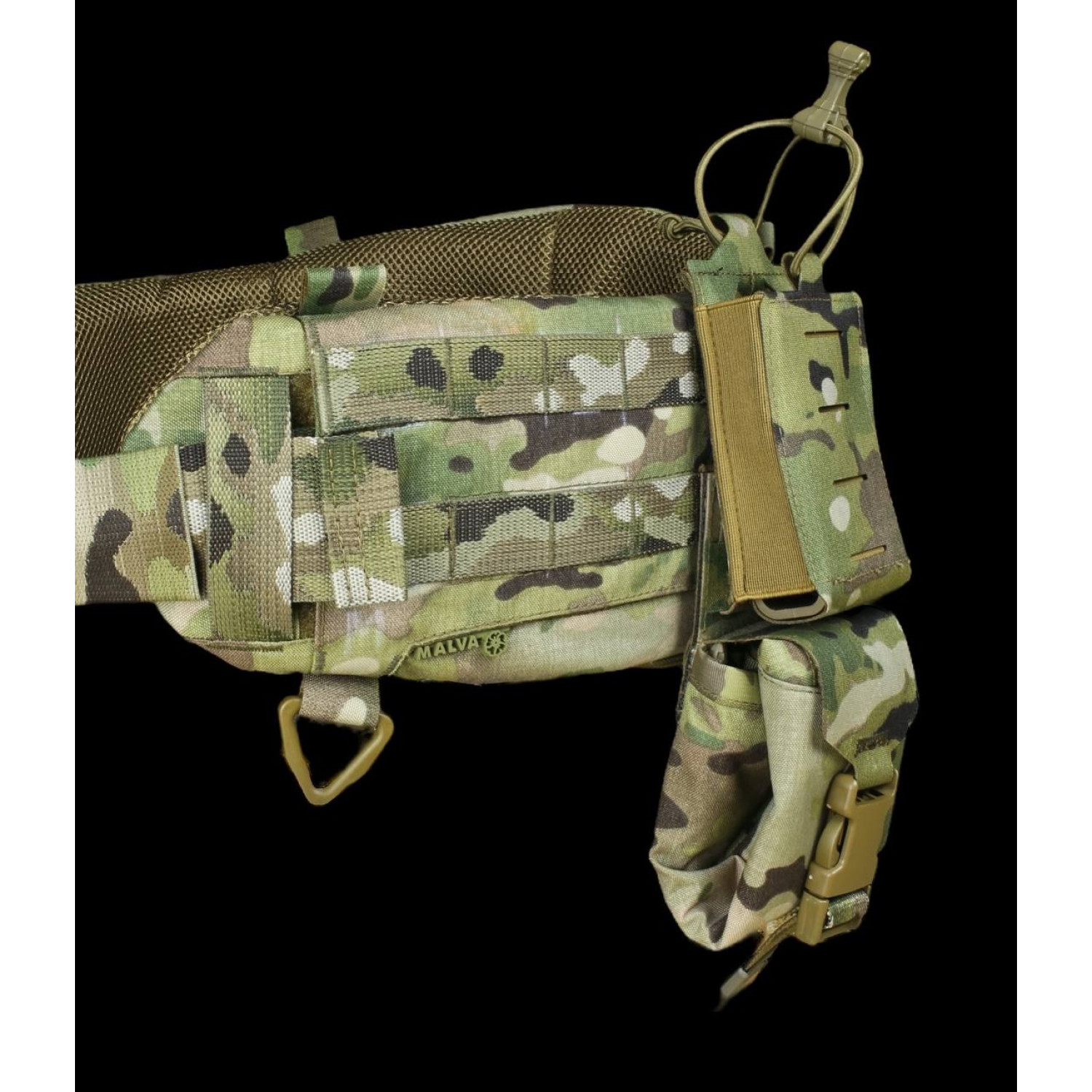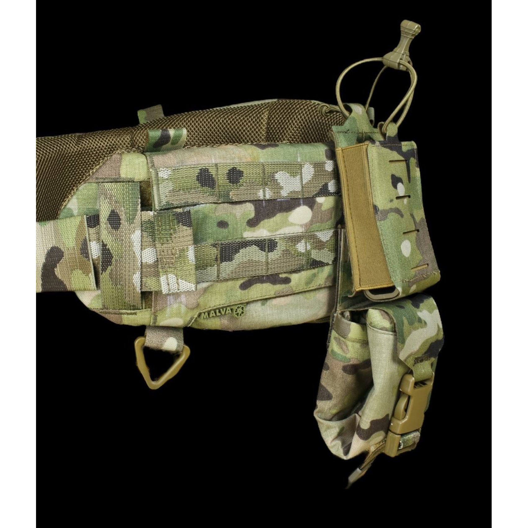 Сумка скид Malva COMPACT Мультикам позволяет крепить выше сумки дополнительный подсумок, как на рпс так и на варбелт. Когда становится на РПС то за счет молле сверху, позволяет крепить выше подсумок под магазин/гран. Также имеет затяжку, чтобы не погубить. Благодаря подошве из термопласта не раскачивается.
