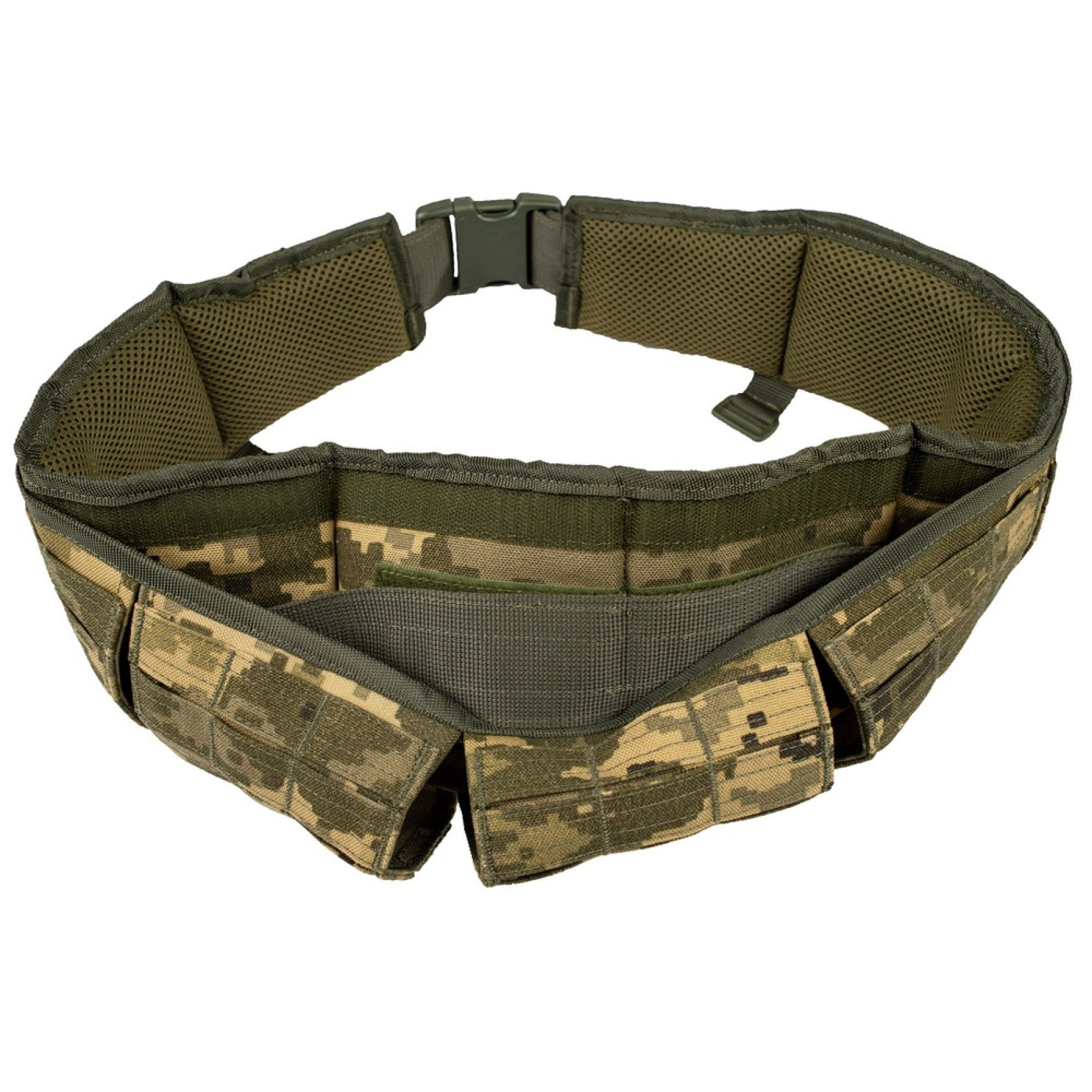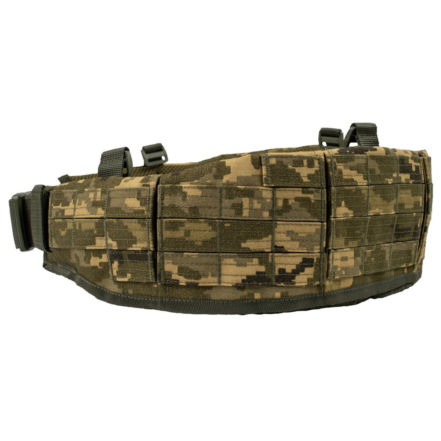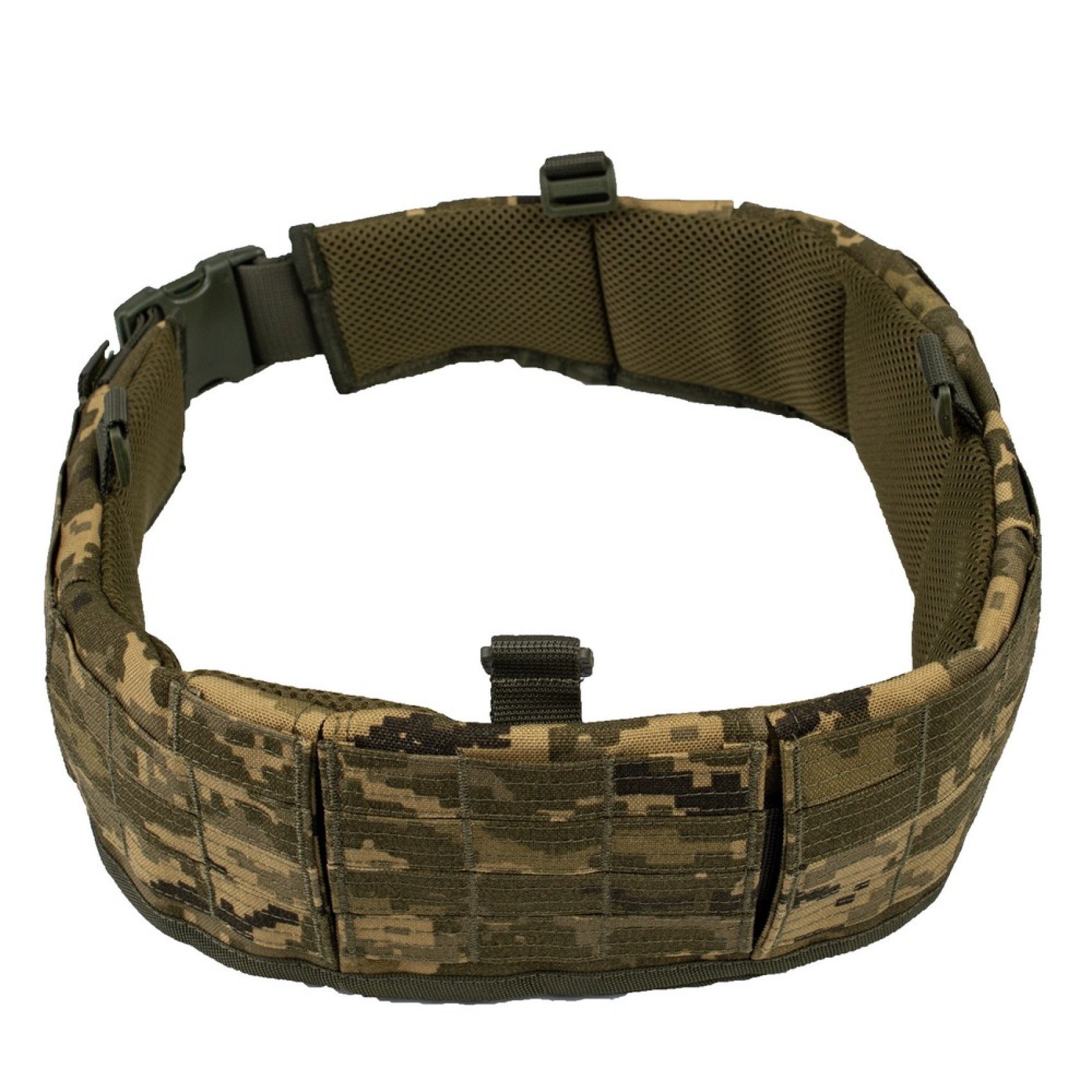 В середине варбелта протянут ремень из сплошной полиамидной стропы, который при необходимости, можно использовать в качестве стандартного общевойскового ремня. Регулировка размера происходит благодаря прочному фастексу из ацетала.