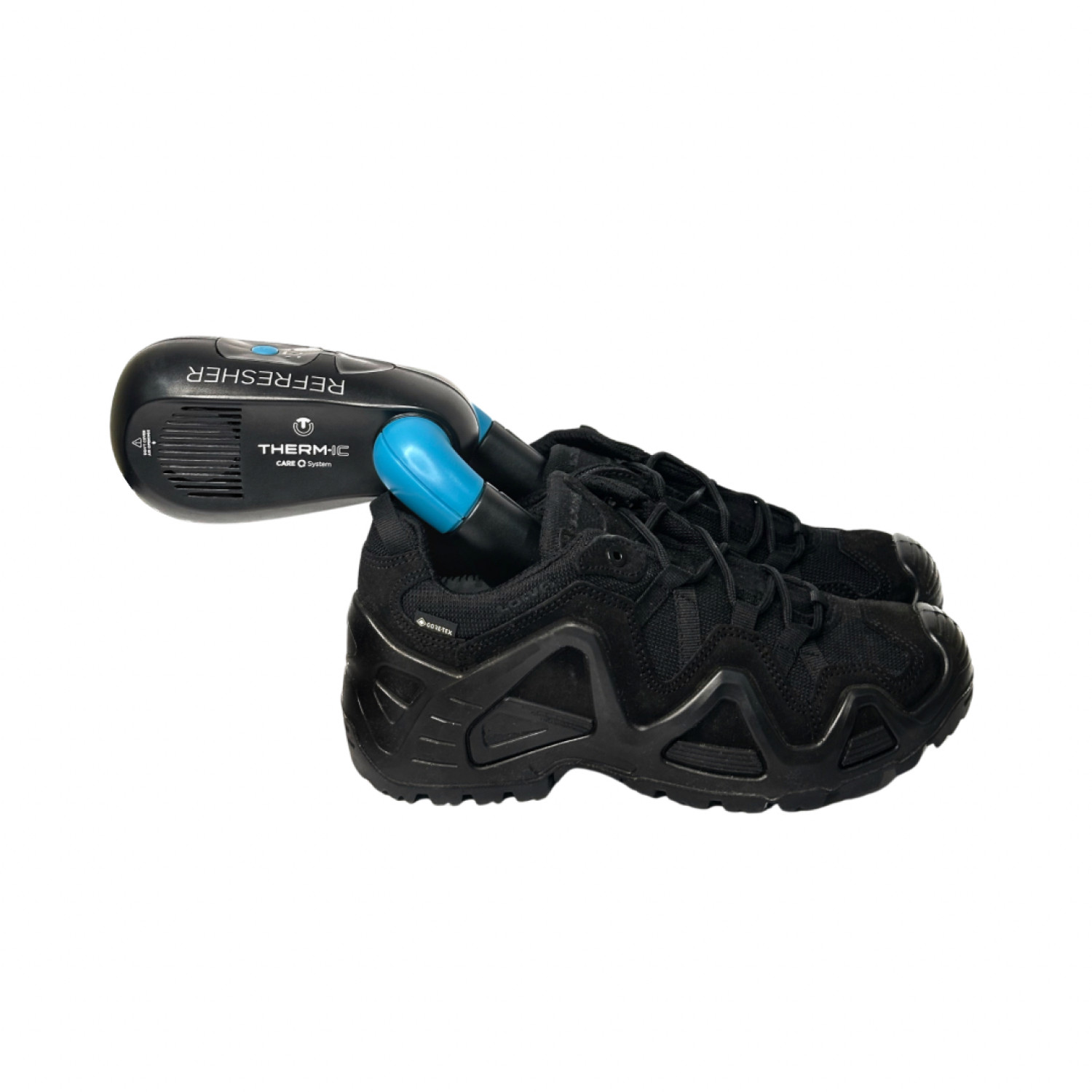 Сушилка для обуви Therm-ic Refresher — это устройство, которое отличается высокой эффективностью. Всего за несколько часов она высушит ваши тактические, лыжные или спортивные ботинки, сделав их тёплыми и готовыми к дальнейшему использованию! Данная сушилка работает от сети и подаёт тёплый воздух в оптимальном режиме. У неё есть две телескопические ручки, которые легко устанавливаются внутрь обуви. Устройство лёгкое, удобное в эксплуатации и компактное. Особое преимущество этой модели заключается в наличии таймера, который автоматически отключает прибор по истечении установленного времени работы (от 1 до 3 часов).