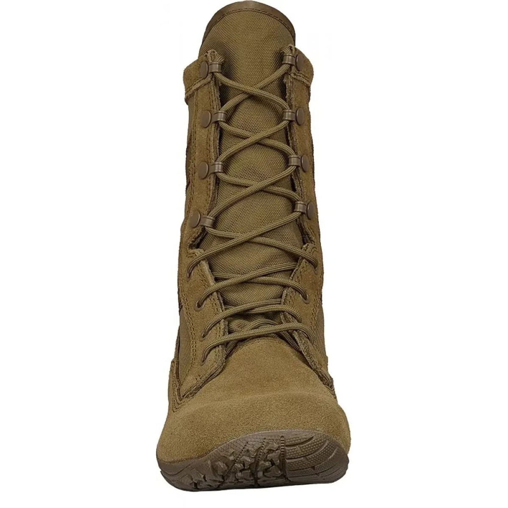 Берцы Belleville Minimalist Training Койот отличаются своей функциональностью и минимализмом. Модель выполнена из натуральной кожи со вставками из износостойкого материала Cordura 1000 Den, что обеспечивает эффективный отвод лишней влаги в теплое время года. Ботинки обладают высокой воздухопроницаемостью, а также быстро сохнут. Эксклюзивная подошва VIBRAM® Tarsus изготовлена из прочного полиуретана с выразительным протектором для надежного сцепления даже с мокрой поверхностью. VIBRAM® Tarsus имеет хорошие амортизационные свойства и способствует равномерному распределению нагрузки на стопу. Плавный переход от пятки к носку в 2 мм обеспечит комфорт во время ходьбы и длительных тренировок. Литая съемная стелька из полиуретана также обеспечивает дополнительную амортизацию. Для большего удобства и защиты пальцев, предусмотрен мягкий носок. Высота модели Minimalist Trainning TR105 составляет 20,3 см. Все швы выполнены двойными, а в местах наибольшего износа - тройными.