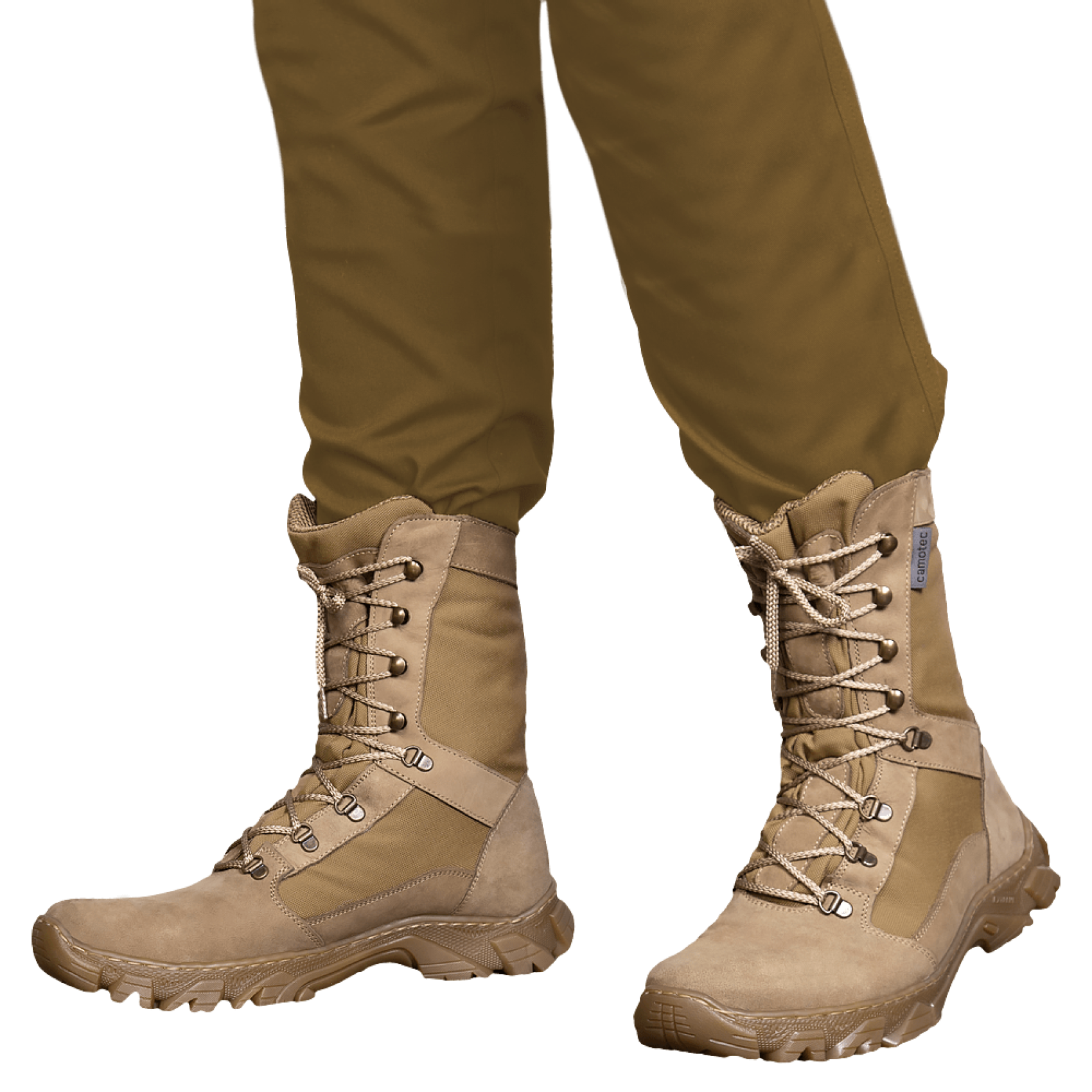 Берцы Camotec Desert 2.0 Койот изготовлены из высококачественного нубука со вставками из кордуры. Берцы специально разработаны для охранных и военных целей и идеально подходят для использования в теплое время года.